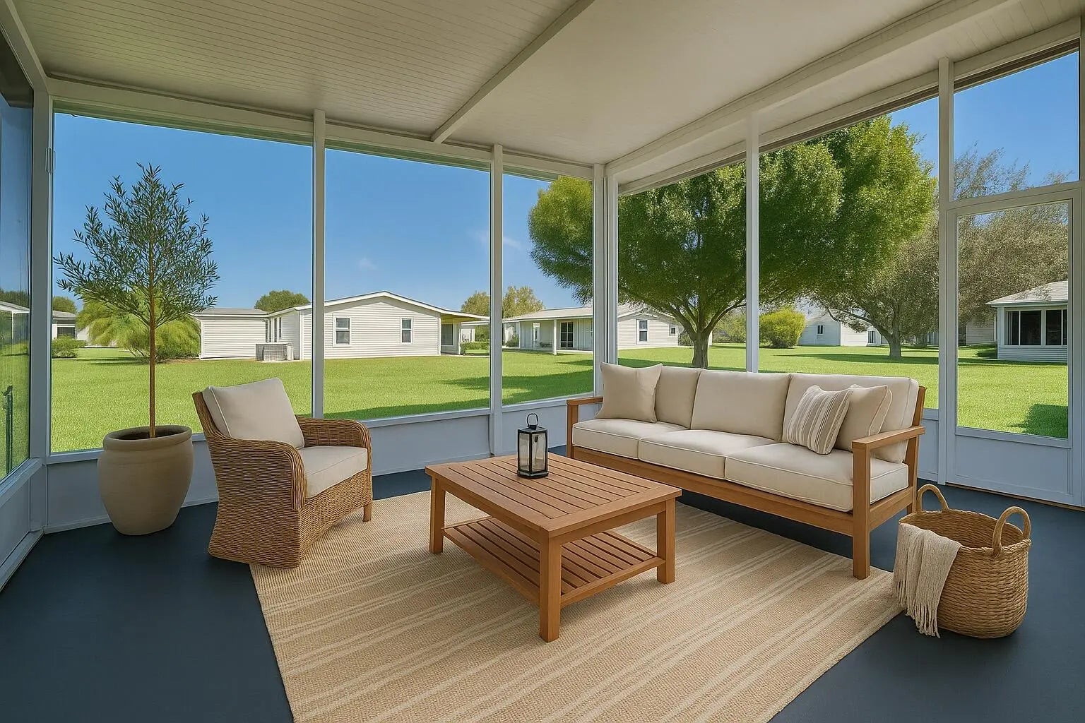 Welcome to this spacious 3-bed, 2-bath modular home nestled on a quiet cul-de-sac in the sought-after 55+ Savanna Club community. This open-concept layout features two separate living areas and wood-look tile flooring throughout the main living spaces. Recent upgrades include new A/C unit, water heater, and a reverse-osmosis system offering peace of mind and year-round comfort. The home also includes a long carport, a large attached storage room, a covered screened patio, and an additional cement slab that's perfect for outdoor entertaining. Savanna Club offers a true resort-style lifestyle with access to an 18-hole golf course, a 10,000 sq. ft. performing arts center, four fully staffed clubhouses, a tennis and fitness center, and a full calendar of social events and activities. Ideally located just 20 minutes from the beach and centrally positioned between Fort Lauderdale and Orlando, this community offers both relaxation and convenience. Don't miss your opportunity to enjoy everything Savanna Club has to offer! (Note: Some photos have been virtually staged to showcase design inspiration and spatial possibilities - helping you imagine how this beautiful home can be styled to suit your taste.)