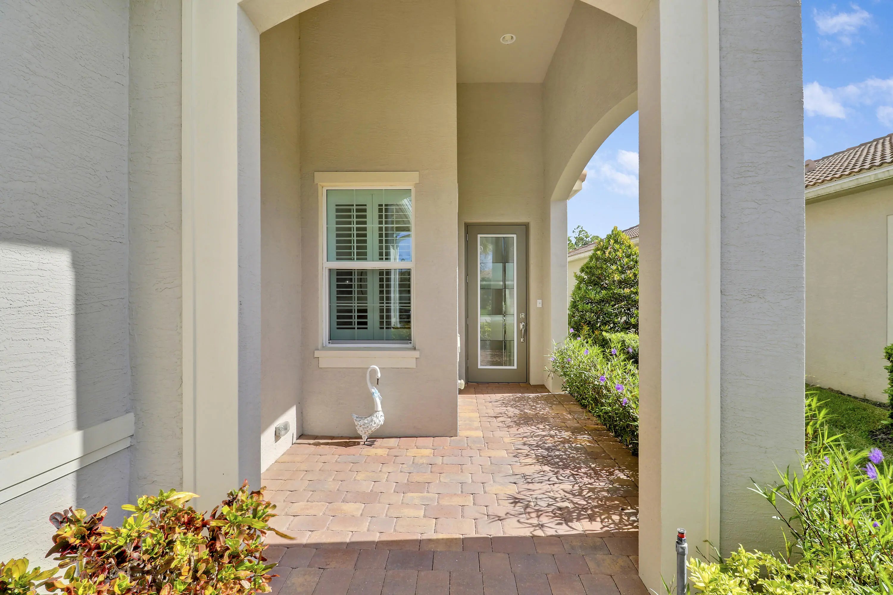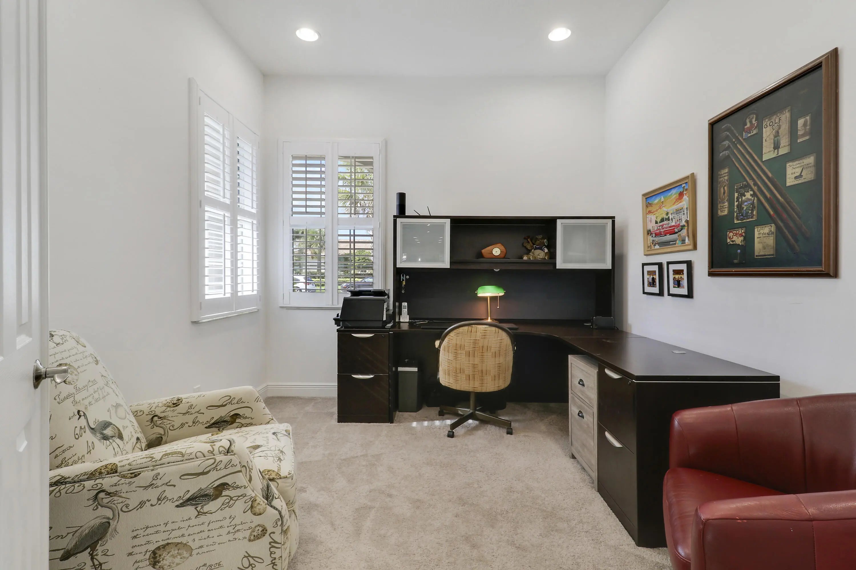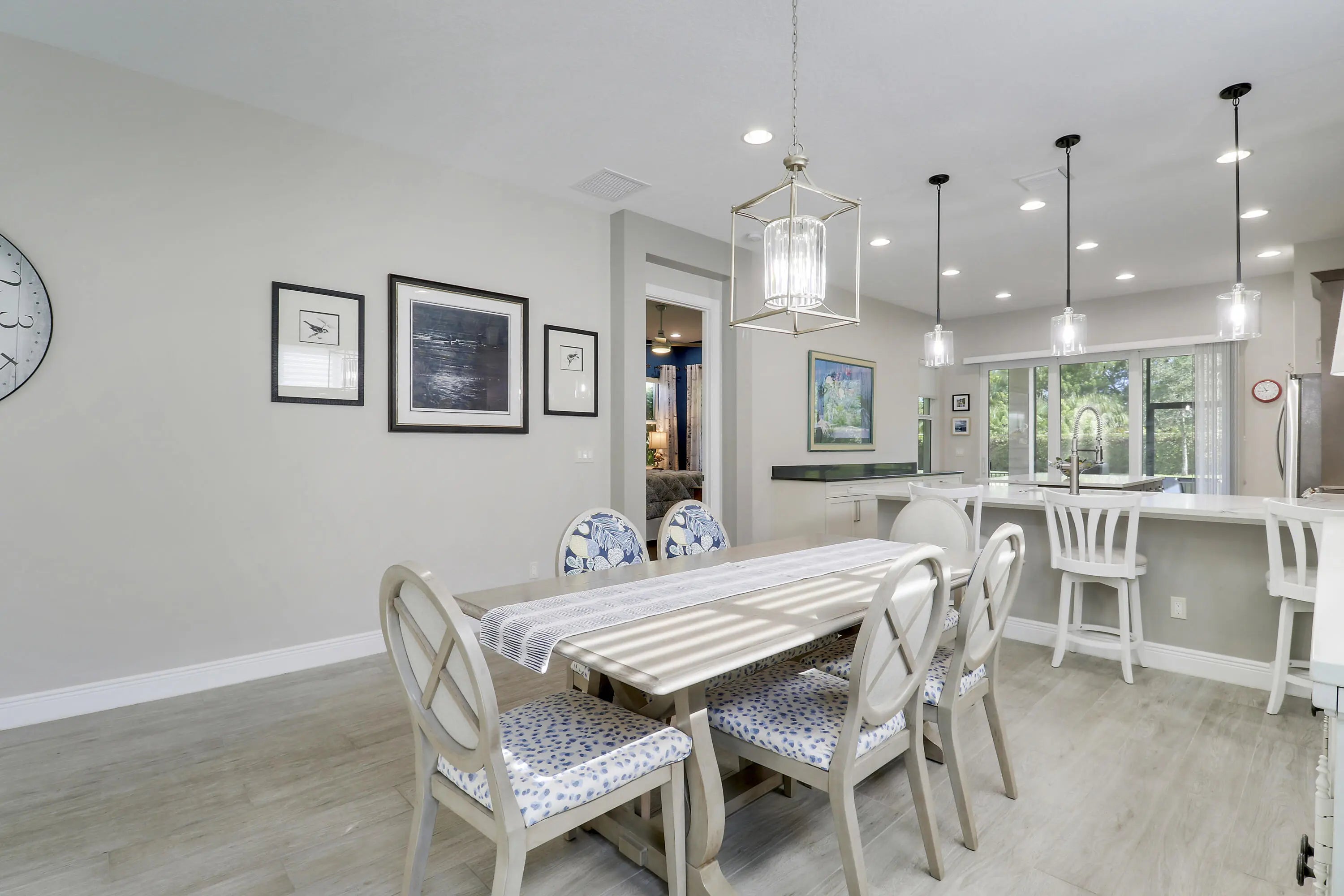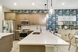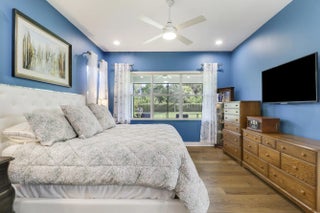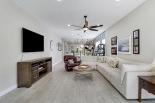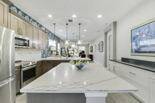 THIS HOME IS BRIMMING WITH CHARM & CHARACTER! Spacious 2BR+Den/2BA/2CG 'Casita' plan with private, fenced back yard. Some of the many special features include decorative glass entry front door, elegant lighting & fans throughout, upgraded window treatments, wallpaper accent, wood flooring in the master bedroom, murphy bed in the guest bedroom, front load washer & dryer, spacious fenced yard, quartz counters throughout, custom organizers in the master closet and more! Wood look tile runs through the main living areas. The spacious kitchen is fit for cooking enthusiasts and features 42'' wood cabinetry, quartz counters, center island, upgraded stainless steel appliances, breakfast bar seating, custom built storage center with drawers, pendant lighting, tiled backsplash and pantry closet. Retreat to the master suite, which overlooks the peaceful back yard and has wood flooring, spacious ensuite with dual vanities, tiled shower and a walk-in closet with fantastic custom organizers. The second bedroom is fit with a versatile murphy bed and has direct access to the second bathroom, which is also accessible through the hallway. The office/den is perfect as a flex room or home office. Laundry room with upgraded front load washer & dryer, cabinetry for storage and utility sink. Enjoy bird watching in the serene back yard from your spacious screened & covered patio. The fully fenced yard is ready for your furry family members! Storm preparation is a breeze with IMPACT GLASS WINDOWS & DOORS throughout, also providing energy efficiency. Verano is an amenity rich community with a 27 court pickleball facility, walking paths, indoor and outdoor pools, multiple fitness centers, sauna, dog park, tennis courts, social clubhouse and so much more! HOA dues include basic cable, internet, lawn care, alarm monitoring, common area maintenance and access to the amenity centers. For avid golfers, there is a cart path leading to the PGA Golf Club (membership is optional and availability varies). This community truly has something for everyone! Come experience resort style living - call today to view!