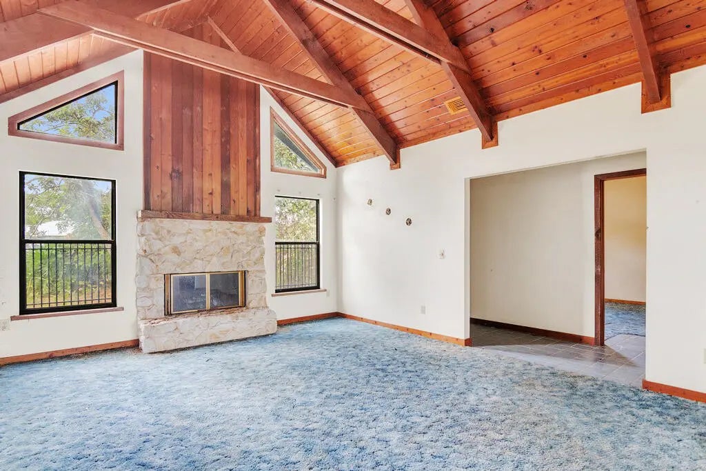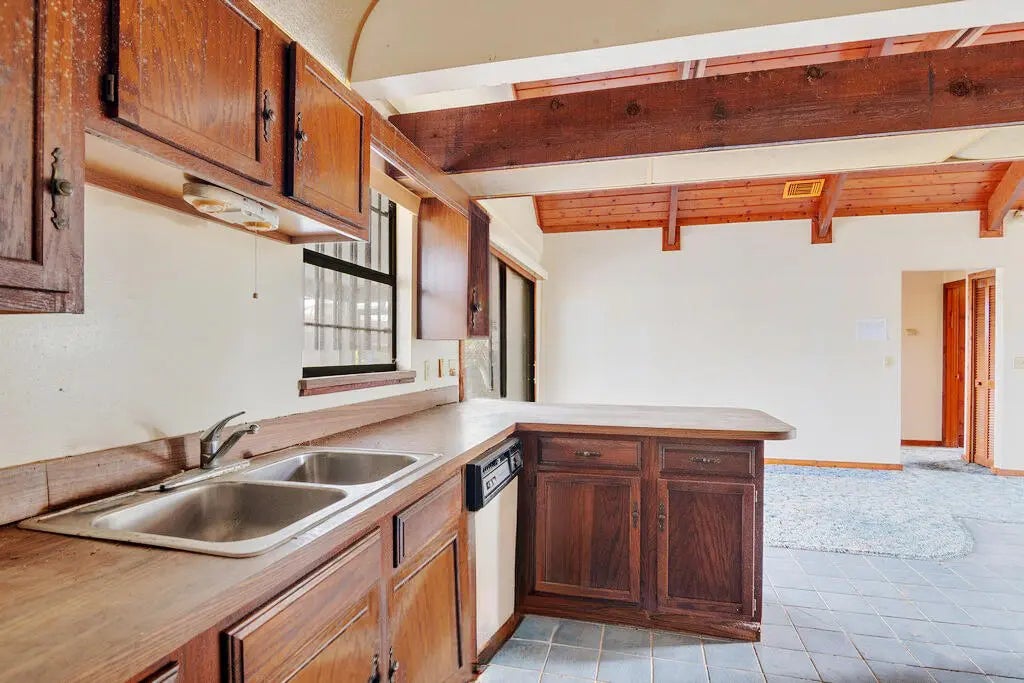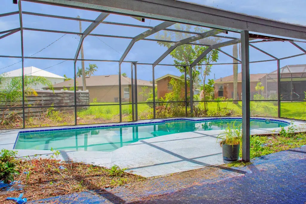 Located on a corner lot in the heart of Port St. Lucie, this frame construction pool home offers unique architectural details and incredible potential. The interior features cathedral-style cedar tongue-and-groove ceilings, two fireplaces (one in the living room and one in the converted bar/entertainment area), and a spacious kitchen perfect for future renovations and entertaining. The garage has been converted into a game room with a bar , adding flexible living space. Buyer to verify exposure all measurements are approximate NO SITE UNSEEN OFFERS