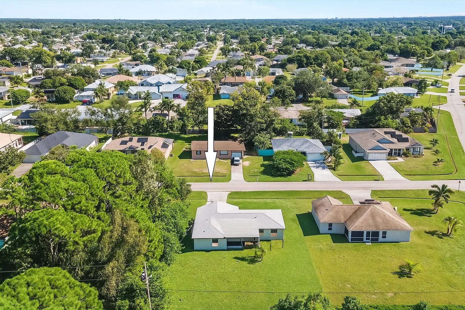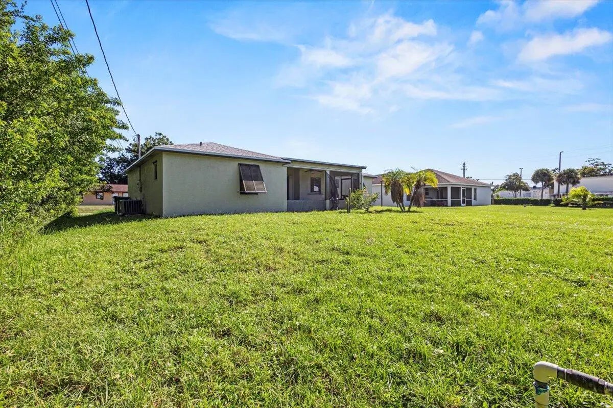 Cute, cozy, and full of potential! This CBS 3-bedroom, 2-bath, 2-car garage home features a 2022 roof, porcelain tile floors throughout, and a split-bedroom layout ready for your finishing touches. The open kitchen flows into the living and dining areas with easy access to a screened patio and spacious backyard. Enjoy peace of mind with solid construction, no HOA, and a convenient location near Crosstown Parkway, shopping, and beaches. A smart buy at $315,000 — move right in and make it your own!