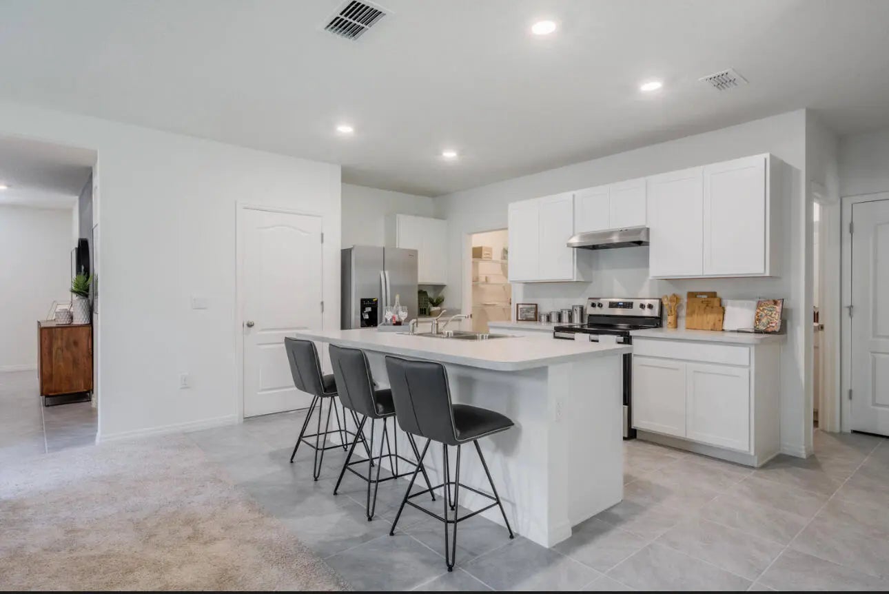 Seller offering credit based on offer price. Why wait to build when this move-in ready, like-new construction home is available now. This beautifully designed, all-concrete block, two-story home features 5 spacious bedrooms, 3 full bathrooms, and a versatile upstairs loft—perfect for a home office, media room, or play area. The open-concept main level includes one full bedroom and bathroom, ideal for guests or multigenerational living. Enjoy a modern kitchen with a large island, ample natural light, and seamless flow into the living and dining areas. Step outside to your covered patio—perfect for grilling and entertaining year-round. Upstairs, the owner's suite and secondary bathroom both include double sinks, offering added convenience for busy mornings.