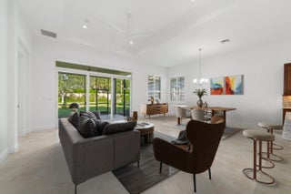 Located in the peaceful, guard-gated community of Verano, this beautifully maintained Lago model home offers an ideal blend of comfort, functionality, and resort-style living. The open floor plan creates a spacious and airy great room that seamlessly connects to the kitchen and dining areas. The kitchen features a large island with a breakfast bar and sink, granite countertops, stainless steel appliances, a walk-in pantry, and ample cabinetry. The primary suite, positioned at the rear of the home for added privacy, includes a luxurious ensuite bath with dual vanities, a glass-enclosed shower, a private water closet, and a large walk-in closet for two. The front bedroom features a water view and walk-in closet. A flex room, laundry room, and two-car garage complete the thoughtfully designed layout. Additional highlights include whole home water softener, tile flooring throughout, complete impact windows and doors, an updated HVAC system and air handler, and a paver driveway with easy garage access. The backyard offers a serene, landscaped setting with lush greenery and privacy, while the front windows provide charming lake views. Residents of Verano enjoy an unmatched lifestyle with resort-style amenities including a clubhouse with pools, two fitness centers, a resistance pool, tennis and basketball courts, a 27-court pickleball center, and miles of sidewalks and biking trails. HOA services cover full landscaping, 24-hour security, and two manned guard gates, ensuring both convenience and peace of mind.