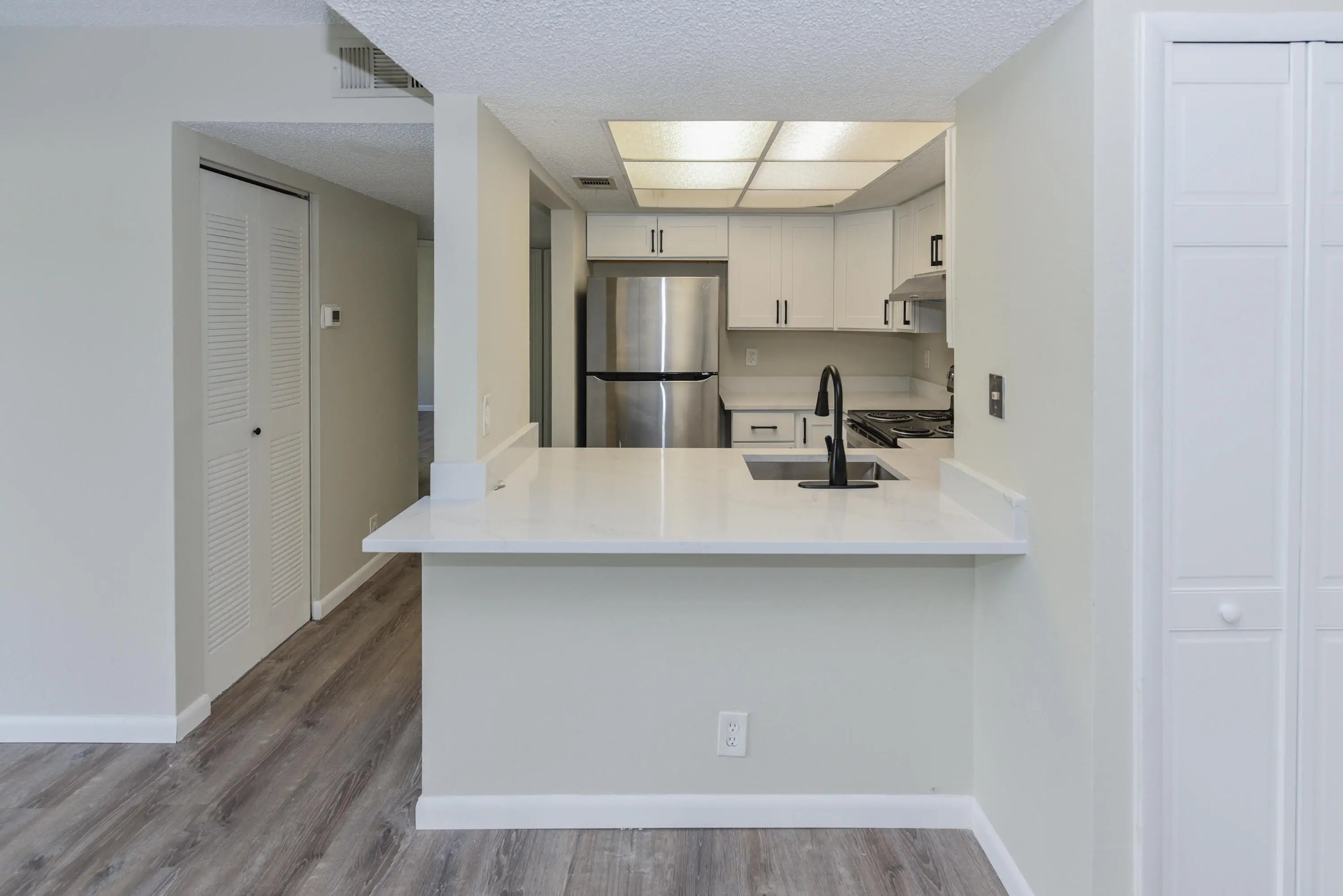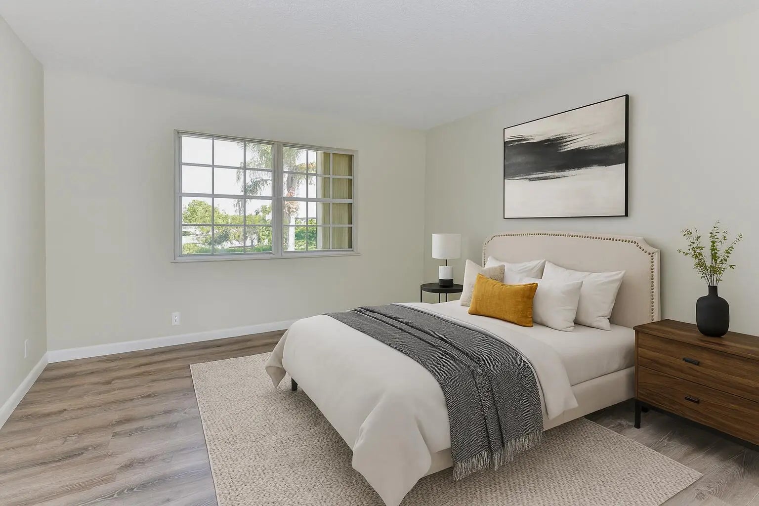 Welcome to this beautifully remodeled 2-bedroom, 2-bathroom condo with peaceful lake views! This bright and inviting second-floor residence features an open-concept layout and a fully renovated kitchen complete with quartz countertops, shaker soft-close cabinetry, and modern finishes. Luxury vinyl flooring runs throughout the home, paired with fresh interior paint and updated fixtures. Both bathrooms have been tastefully upgraded with new vanities and stylish finishes. The enclosed balcony provides additional living space—perfect for morning coffee or relaxing while overlooking the tranquil lake. Additional updates include a brand-new A/C, new washer and dryer, and upgraded lighting throughout. The community offers a sparkling pool, and the HOA covers water, exterior maintenance, roof, lawn care, and common areas for added convenience. Located just minutes from downtown Stuart, Jensen Beach, Fort Pierce, shopping, dining, hospitals, and beautiful beachesthis condo offers comfort, style, and exceptional convenience. Move-in ready and easy to showdon't miss this one!