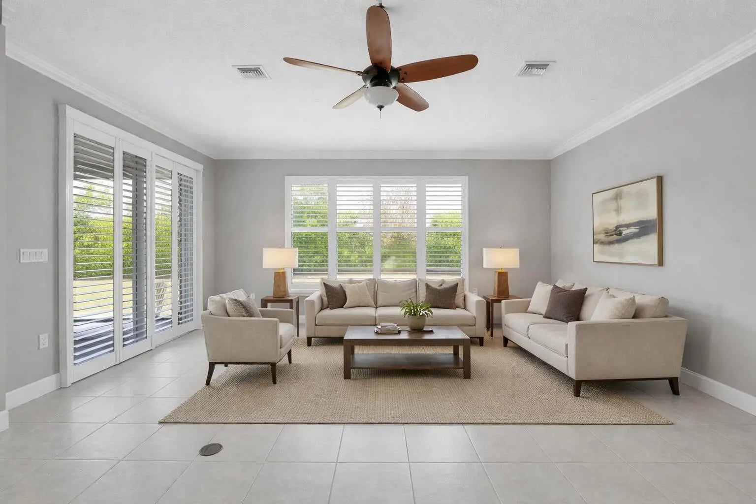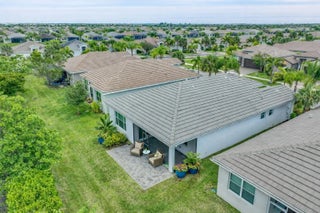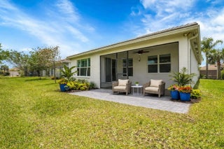 Move-In Ready Heron Model in Valencia Cay! Live the resort lifestyle in this beautifully maintained 2-bedroom + den, 2-bath Heron model located in the sought-after 55+ community of Valencia Cay. Designed for comfort and style, this home blends luxury finishes with low maintenance living, featuring new bedroom carpet, tile flooring in main areas, and crown molding throughout. The gourmet kitchen shines with upgraded stainless steel appliances and a natural gas stove, opening to a bright living area with plantation shutters, tray ceiling, and elegant details that make every day feel special. The primary suite includes pocket doors for privacy and a serene layout for ultimate relaxation. Unlike many homes in Valencia Cay, this one does not back up to a lake, offering rare privacy and peace ful surroundings. Enjoy quiet mornings or breezy evenings on the extended screened patio and lanai, no noise echoing from the lake, just tranquility. The phantom screen front door invites in the fresh air for perfect cross ventilation. Additional perks include: Impact windows, Tankless water heater, Sealed garage floor, Ceiling fans and window treatments included.Perfectly located near I-95, shopping, dining, medical centers, and Tradition, with the Valencia Cay clubhouse just minutes awayoffering resort-style pools, pickleball, fitness center, and endless activities. Turnkey and move-in ready everything's done for you. Act now, and you can still close before the end of the year to secure your Florida Homestead Exemption! Come see it today and experience the quiet comfort, privacy, and effortless living that make this Heron model a standout!