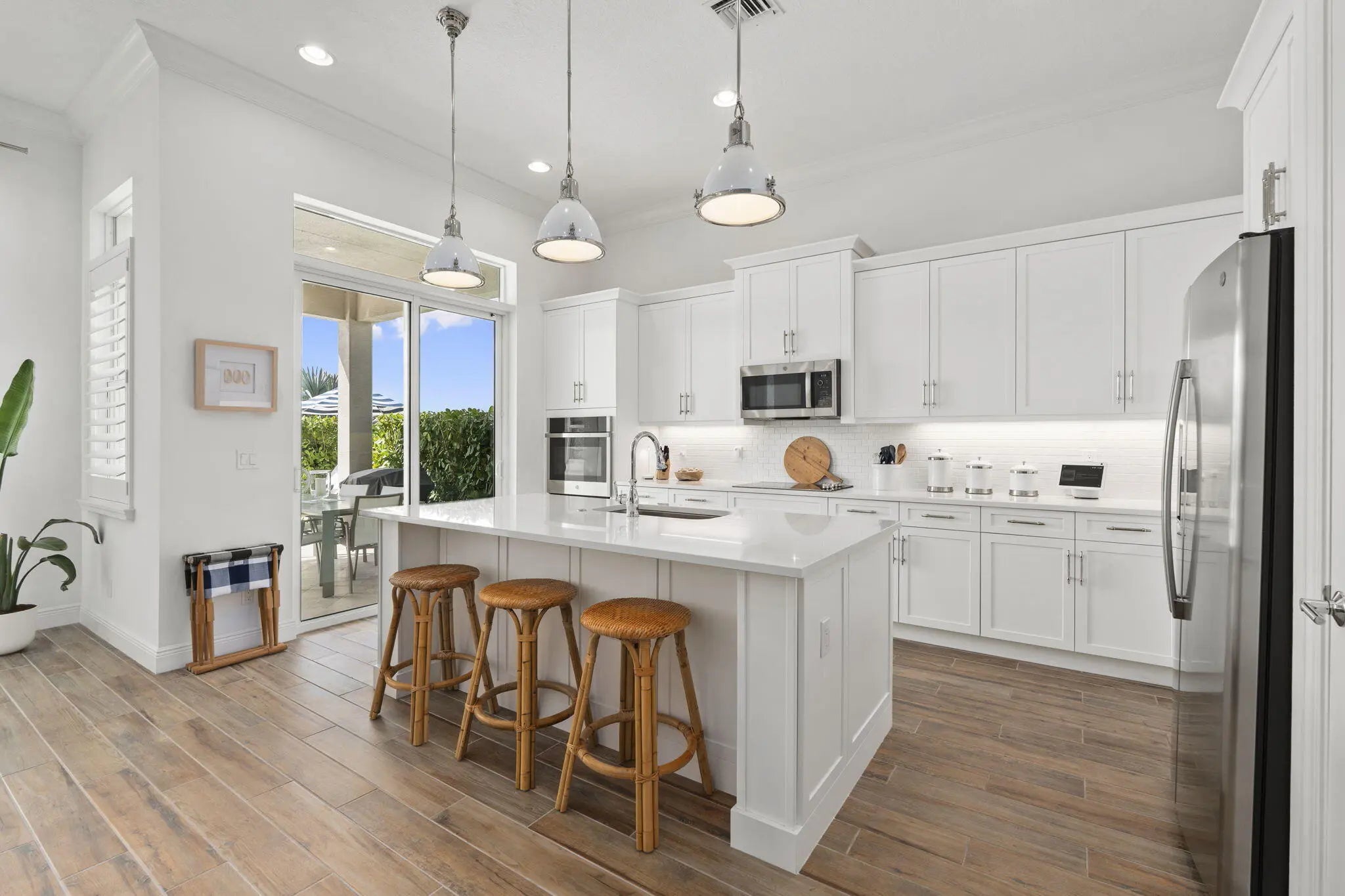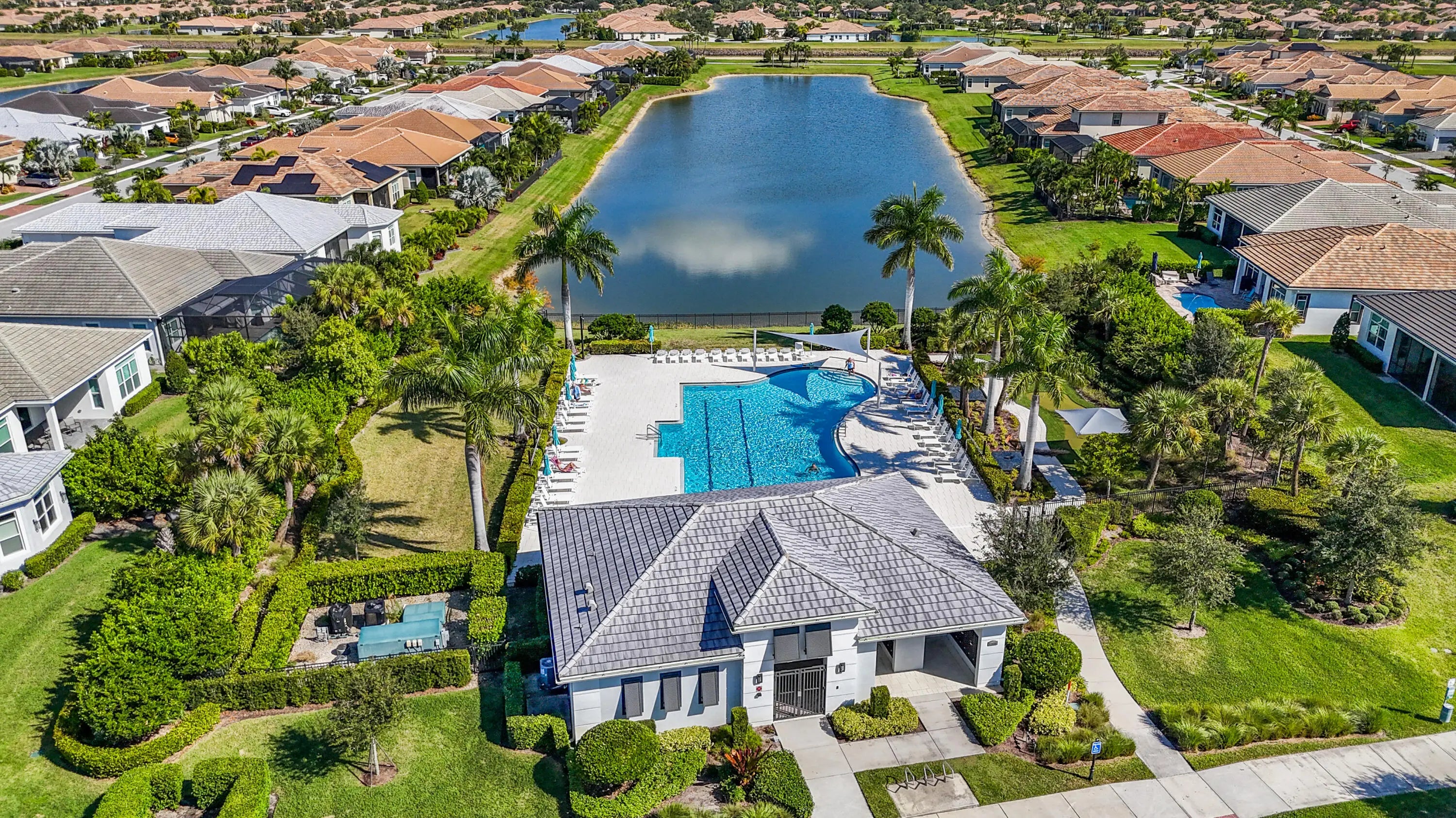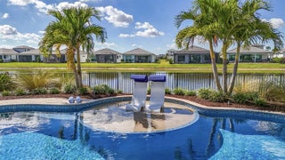 Lakefront pool home with impact windows, extensive designer upgrades throughout, 3BR/3BA + den/dining in Cresswind at PGA Verano.This CBS-built residence offers over 2,120 sq ft of open-concept living with volume ceilings, detailed millwork, and flexible space ideal for an office or formal dining. The upgraded chef's kitchen features premium cabinetry, high-end appliances, Ralph Lauren light fixtures, and a seamless flow into bright living and entertaining areas filled with natural light. Spacious bedrooms and beautifully upgraded bathrooms complete the interior. Step outside to your custom A&G heated saltwater pool with sundeck surrounded by lush landscaping and tranquil lake views—perfect for sunset relaxation and outdoor entertaining. Enjoy the award-winning lifestyle at Club Talavera with resort pools, fitness and wellness centers, 27 pickleball courts, and an active social calendar. Convenient access to championship golf at PGA Golf Club and Aster Creek Club (limited memberships available).