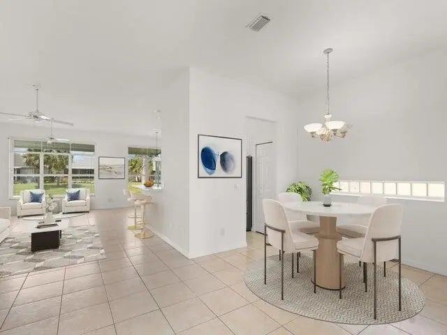 BRAND-NEW ROOF, NEW INTERIOR AND EXTERIOR PAINT, NEW STAINLESS-STEEL TOP OF THE LINE LG APPLIANCES, AND NEW CARPET IN BEDROOMS. Magnificent Lake View home in the desirable 55+ community of Kings Isle in St Lucie West! Features CBS Construction, 2 bedrooms, 2 baths, Den and a 2 Car Garage. Open Kitchen offers white cabinetry, and plenty of storage. Tile flooring throughout main living areas. Enjoy peace of mind with Hurricane Shutters, Re-Pipped plumbing, Newer Water Heater and an A/C with UV light and smart thermometer. Relax and unwind in the spacious screened-in patio overlooking a serene lake view perfect for morning coffee and evening sunsets. Kings Isle offers Resort-Style amenities, a vibrant calendar of social activities, and conveniently located near shopping and medical center.
