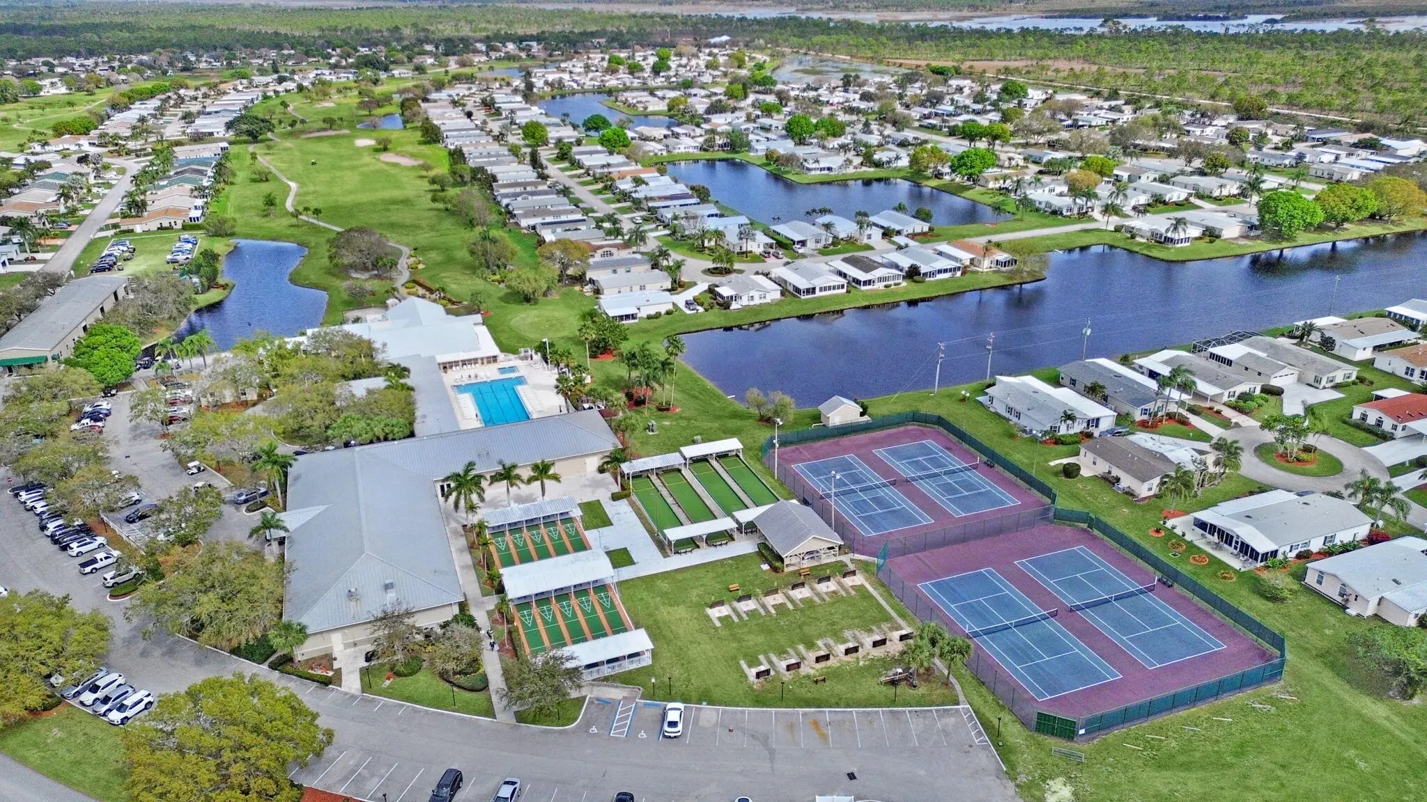 Welcome Home to this charming LAND OWNED 2/2 with a 2020 roof, large carport, large workshop, and 20 extra tie downs for peace of mind. Corner waterfront lot with an enclosed patio. Large master bedroom, open floor plan, and a giant bonus room with a view of the lake. This home does not disappoint. Enjoy an active resort lifestyle in Savanna Club which offers 18-hole golf course, theater w/live entertainment, tennis, volleyball, pickleball, shuffleboard, bocce, horseshoes, indoor basketball, 3 pools, classes, and clubs.