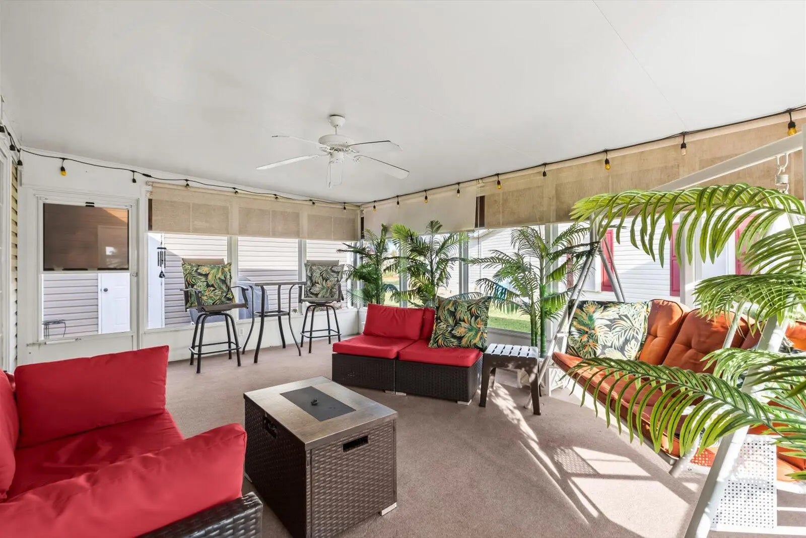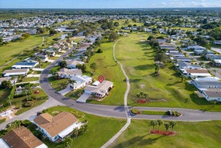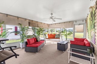 Beautiful 3-bedroom, 2 bath home on the golf course. New A/C 2021. New roof, well pump, microwave, and new vapor barrier in 2023. New water heater 2024. Interior painted 2023. Large, country-style front porch, 2-car garage, and laundry room. Plantation shutters in the living room, with french doors leading to the 3rd br/den. The spacious primary suite boasts a walk-in closet and suite bath with step in shower. Laminate flooring thoughout. Dining room sliders leads to a roomy screened lanai and two additional patios, adding flexible outdoor living space. Sale may include 2018 EZ-Go golf cart (new batteries 2023)- negotiable. This home may also be furnished or unfurnished. located in the desirable Savanna Club 55+ community, where you'll enjoy resort-style living additional amenities. 18 hole golf course, on site restaurant, live entertainment, tennis, volleyball, pickelball,, shuffleboard, bocce ball, horseshoes. Three separate clubhouses, each with a pool, two of which are heated. Don't miss your chance to own in the vibrant active community- schedule your showing today! RV & Boat Storage on site. This property is leased land