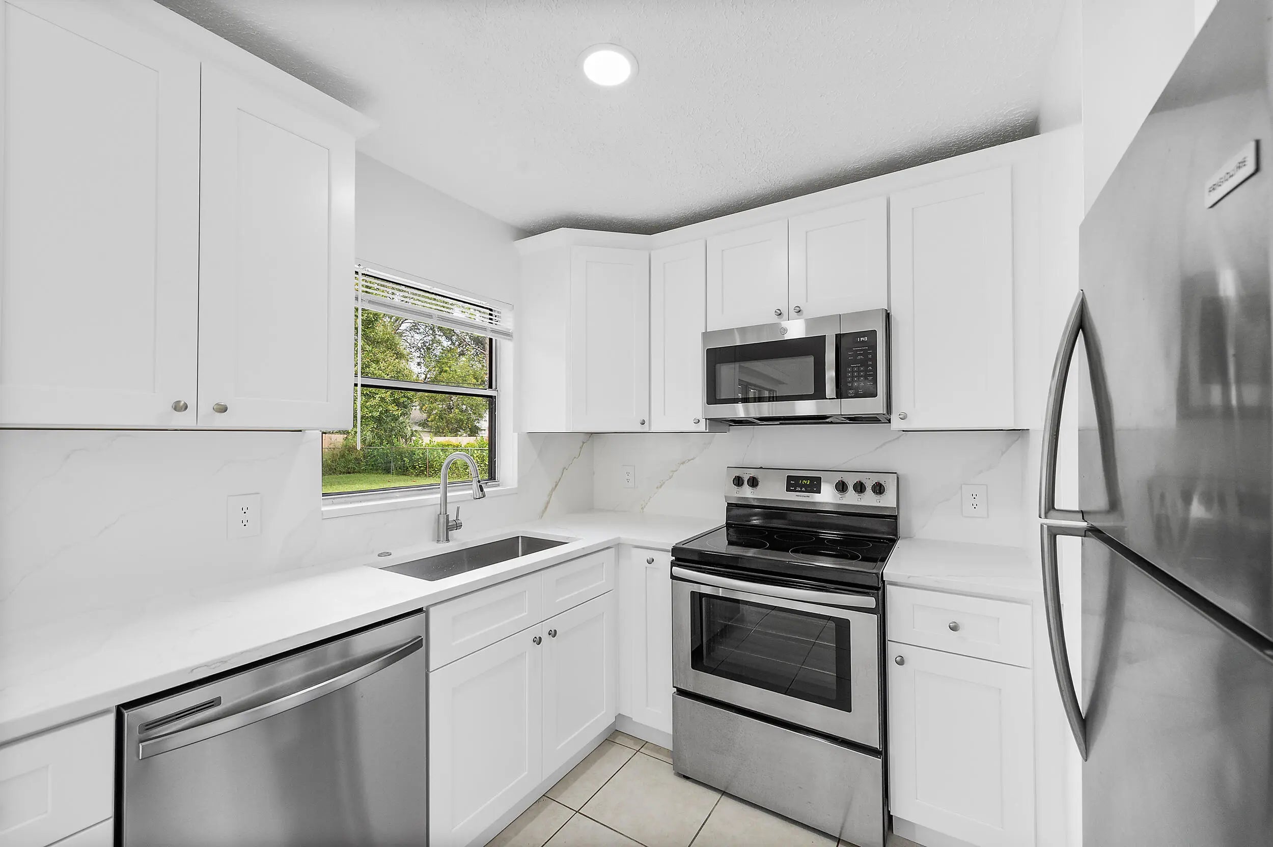 Buyer incentives available when using the seller's preferred lender. Beautifully updated 2-bedroom, 2-bath home with a new 2024 roof and 2025 AC. This property features a renovated kitchen and bathrooms, stainless steel appliances, quartz countertops, a new garbage disposal, and extra soft-close cabinetry for added storage. Tile flooring throughout, new light fixtures, and accordion shutters for full hurricane protection. The spacious, fully fenced backyard offers plenty of room for a pool, perfect for entertaining or relaxing outdoors. Conveniently located near I-95 and close to shops, supermarkets, and schools, this home offers both comfort and accessibility. Move-in ready and beautifully maintained, this one's a must-see!