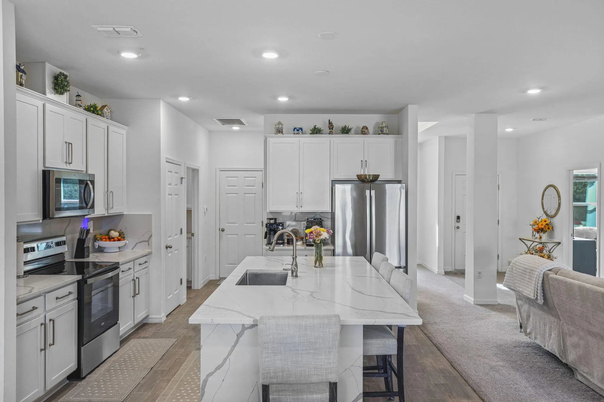 Welcome to your new home in Port St Lucie! This lovely house has 4 Bedrooms + DEN and 3 Bathrooms providing plenty of space for everyone.All the bathrooms have Quartz countertops. The kitchen is bright and beautiful, featuring Quartz Waterfall Countertops and tall cabinets for extra storage.You'll have the charming porch, perfect for relaxing or entertaining guests.Located in a great neighborhood.This home is a fantastic find and won't last long.