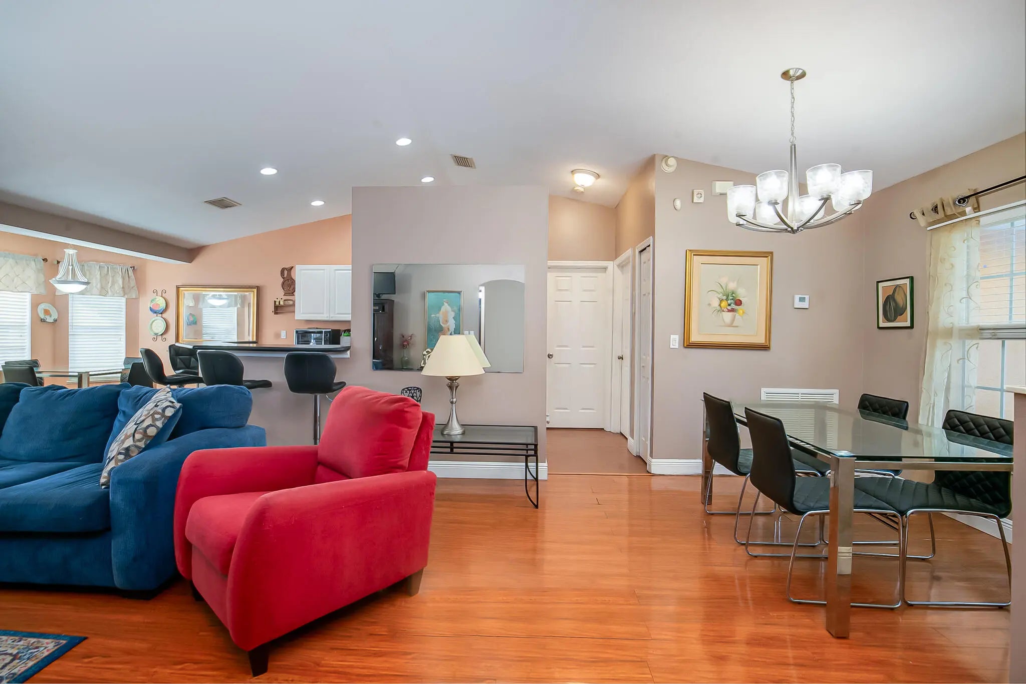 This inviting 3-bedroom, 2-bath, 2-car garage CBS home offers a spacious split floor plan designed for comfortable living. The open-concept kitchen overlooks the living room, creating an easy flow for entertaining. Enjoy morning coffee in the cozy breakfast nook with a view of the fenced backyard; perfect for pets, play, or gardening. Step outside to your screened-in lanai, ideal for relaxing outdoors year-round. The primary suite is privately situated away from the other bedrooms, providing a quiet retreat at the end of the day. Conveniently located near Crosstown Parkway, I-95, and the Turnpike, as well as shopping, dining, and schools, this home combines comfort and practicality in one great package and is full of potential!