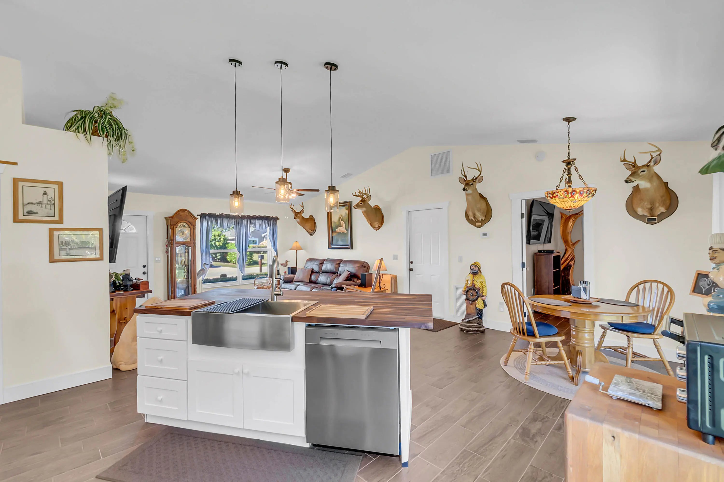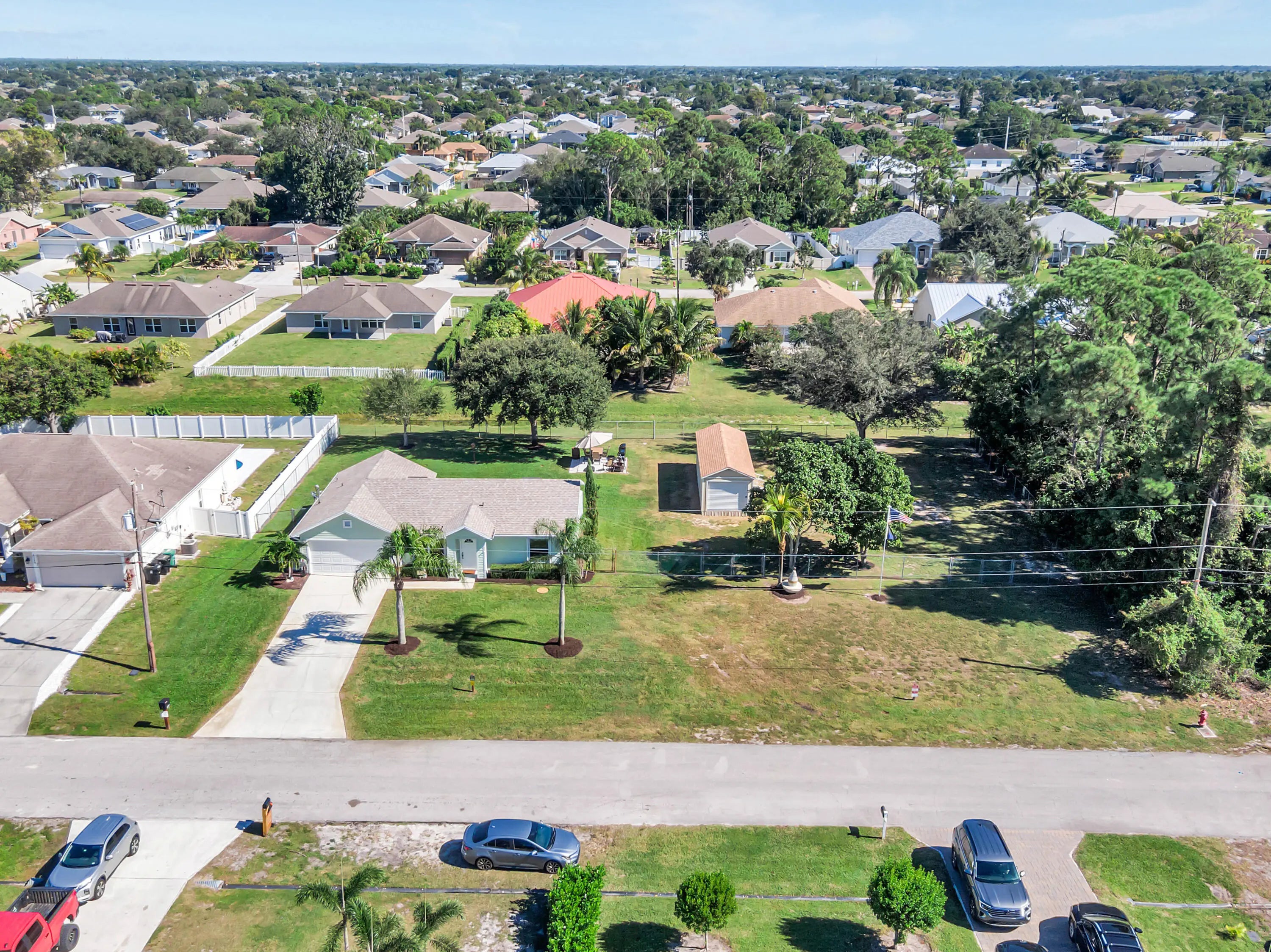 Welcome to this beautifully updated 3-bedroom, 2-bathroom home set on a rare double lot—each lot about a quarter acre. The additional lot is directly adjacent to the main home and is already prepped for building, potential for expansion, guest house, additional house or investment property. This home features brand-new roof installed in 11/2025 and ceramic tile flooring throughout, providing a clean, cohesive look and easy maintenance. The back windows are thermal, and hurricane shutters are installed on all windows, adding comfort, safety, and energy efficiency. Step into the upgraded kitchen, complete with soft-close cabinets, modern finishes, and beautiful lighting that continues throughout the entire home. All appliances recently purchased. This is truly a turnkey/move in ready home.