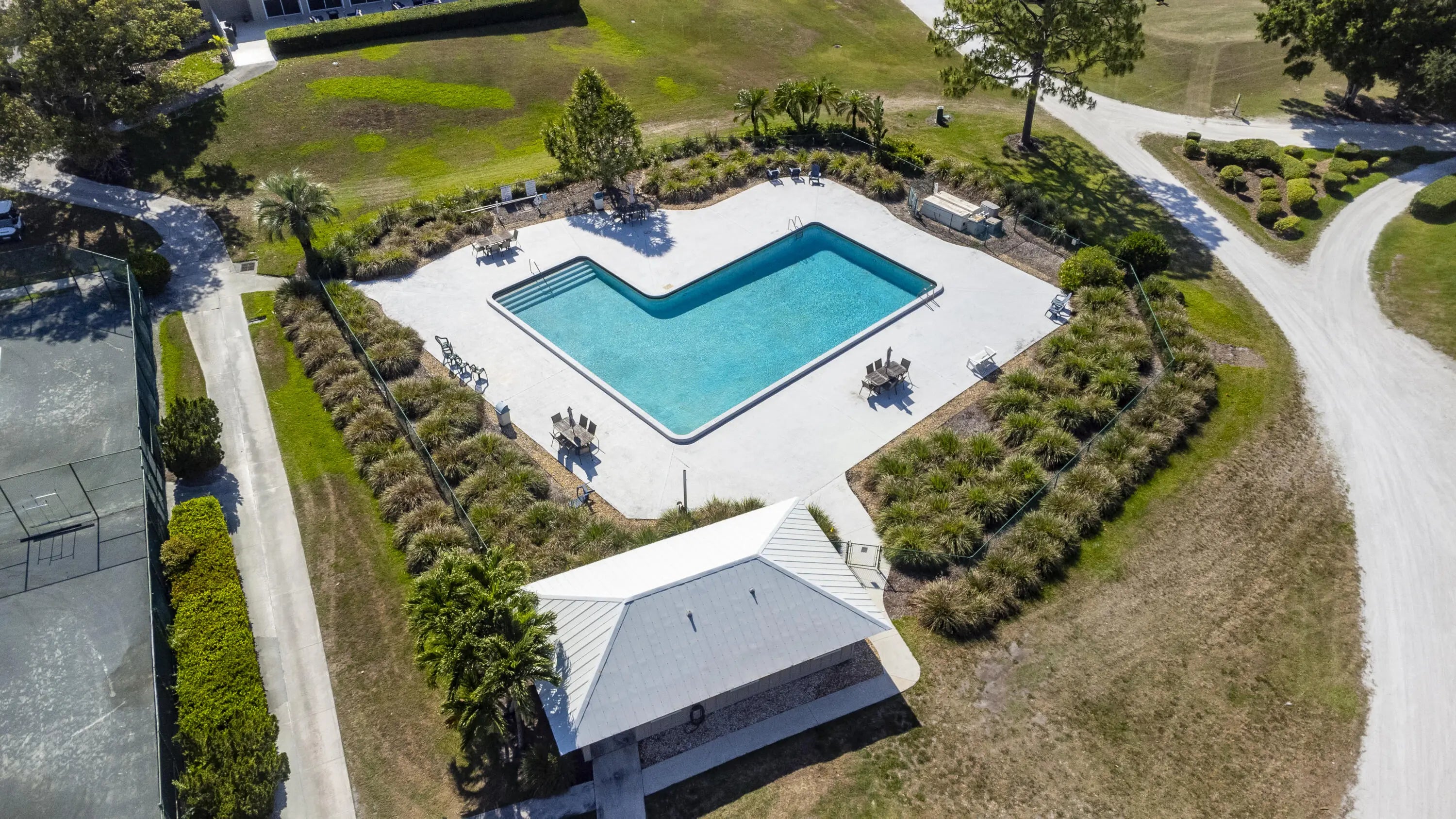 Billiard Room, Clubhouse, Fitness Center, Golf Course, Playground, Pool, Tennis Court(s), Bocce Ball, Community Room, Pickleball Court(s), Putting Green, Street Lights