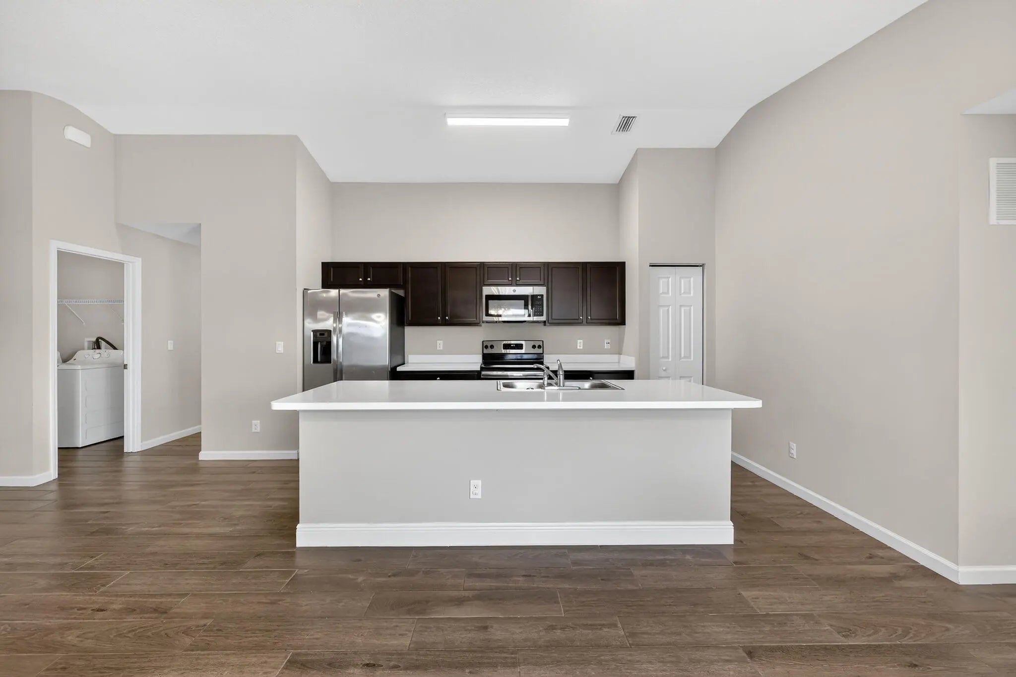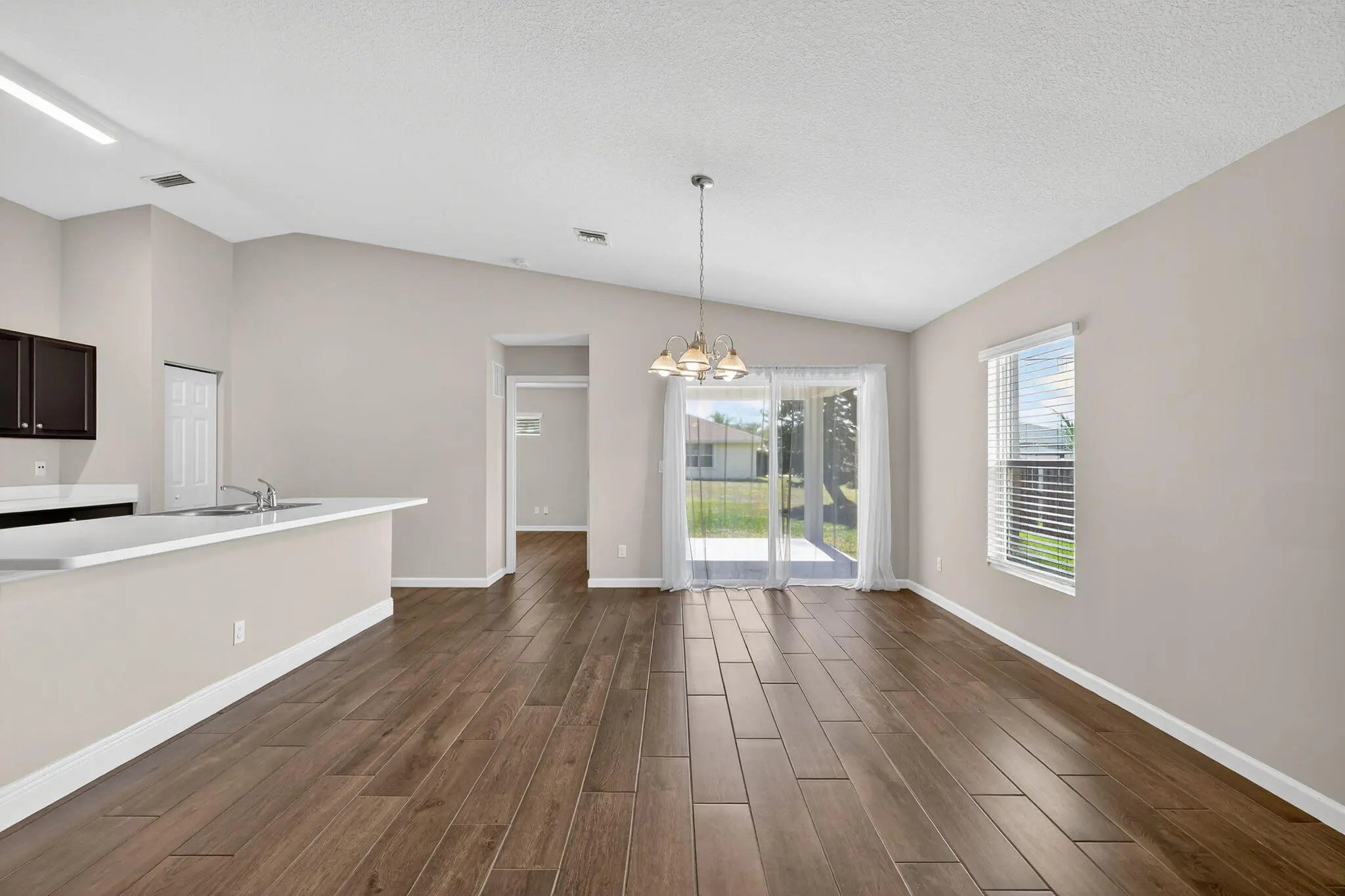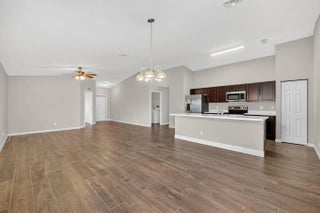 Own your slice of paradise with this popular Hudson 4 model by award-winning Synergy Homes—just five years new and truly move-in ready. This spacious 4-bedroom, 2-bath home offers 1,833 sq ft of thoughtfully designed living space with no wasted square footage. Upgraded tile plank flooring flows throughout the entire home—no carpet anywhere. The gourmet kitchen features solid surface countertops, stainless steel appliances, and plenty of space for cooking and entertaining. Enjoy added comforts including window blinds, ceiling fans, and a washer and dryer. Step outside to a large covered patio under roof trusses, perfect for relaxing or entertaining. Situated in an awesome location, this home is ready now—just bring your toothbrush and start living.