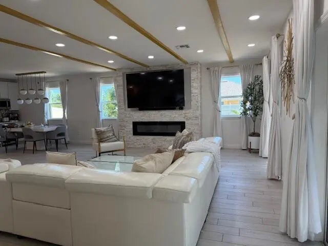 Every day have your own resort...pool with travertine deck, lighted cabana. Home has many upgrades such as quartz countertops in kitchen, baths, double ovens, kitchen island, beverage/coffee center, formal dining, fireplace, 1st floor den (could be 5th bedroom) & full 1st floor bath, tiled 1st floor, wood plank 2nd floor. Loft, 4 bedrooms second floor. Need huge walk-in closet? It's in primary bedroom. The primary bath has walk-in shower, soaking tub, multiple vanities. Looking for a place to store additional vehicles, boat all behind privacy fence? Look no more. Home suitable for multi-generations. One of a kind beauty minutes from Tradition & SLW. Living area based on SLCPA data. Buyers need to verify room dimensions, living area as some were estimated/rounded.