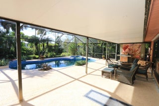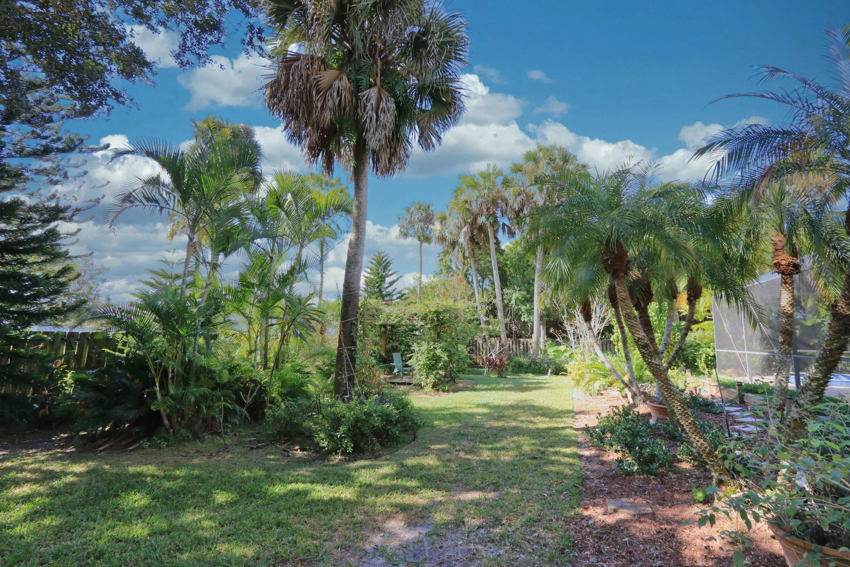 Tropical Paradise on Private ½-Acre Corner Lot Updates Include: New Roof (2021), New Water Heater (2025), New Garage Door (2019) Beautifully maintained 3BR/2BA split-plan home designed for entertaining and everyday comfort. The spacious primary suite features a huge walk-in closet and a well-appointed private bath. The chef's kitchen offers granite countertops, two sinks, solid wood cabinetry with pull-outs, and abundant specialized storage. Counter seating overlooks the pool and lanai, creating a seamless indoor/outdoor flow. Enjoy a large screened pool area surrounded by lush tropical landscaping. The oversized lanai and multiple seating areas provide inviting spaces for relaxing or hosting guests. A fully fenced backyard offers ample room for children and your furry friends.
