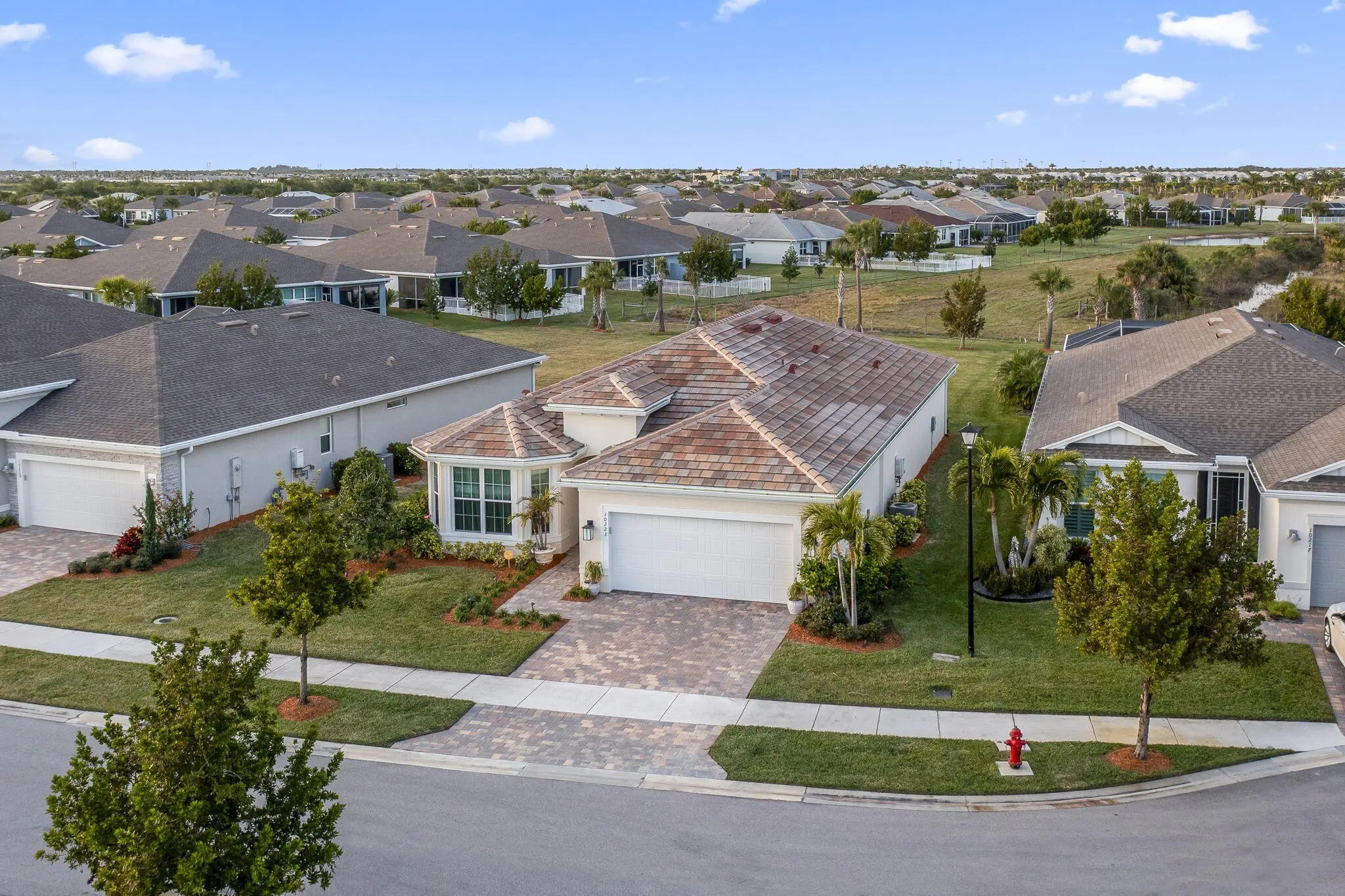WELCOME HOME ! 2021 Mystique build nestled on a cul de sac with plenty of room for a pool. with a 3 carport garage! 2 bed 2 bath with an OFFICE/DEN with potential for a 3 bedroom on a 11,761 LOT This beautiful home equipped with hurricane impact windows all around. Enjoy the privacy of remote controlled window blinds, which features elegant French doors. The home boasts upgraded granite finishes and a phantom screen for the front door. Additional highlights include a tank less gas hot water system, and a open layout kitchen with SS Whirlpool appliances, as well as a laundry room equipped with built-in cabinets and a utility sink. The property has a a large garage that can accommodate a third car, or a golf cart, or serve as extra storage. and Hurricane shutters for the back patio