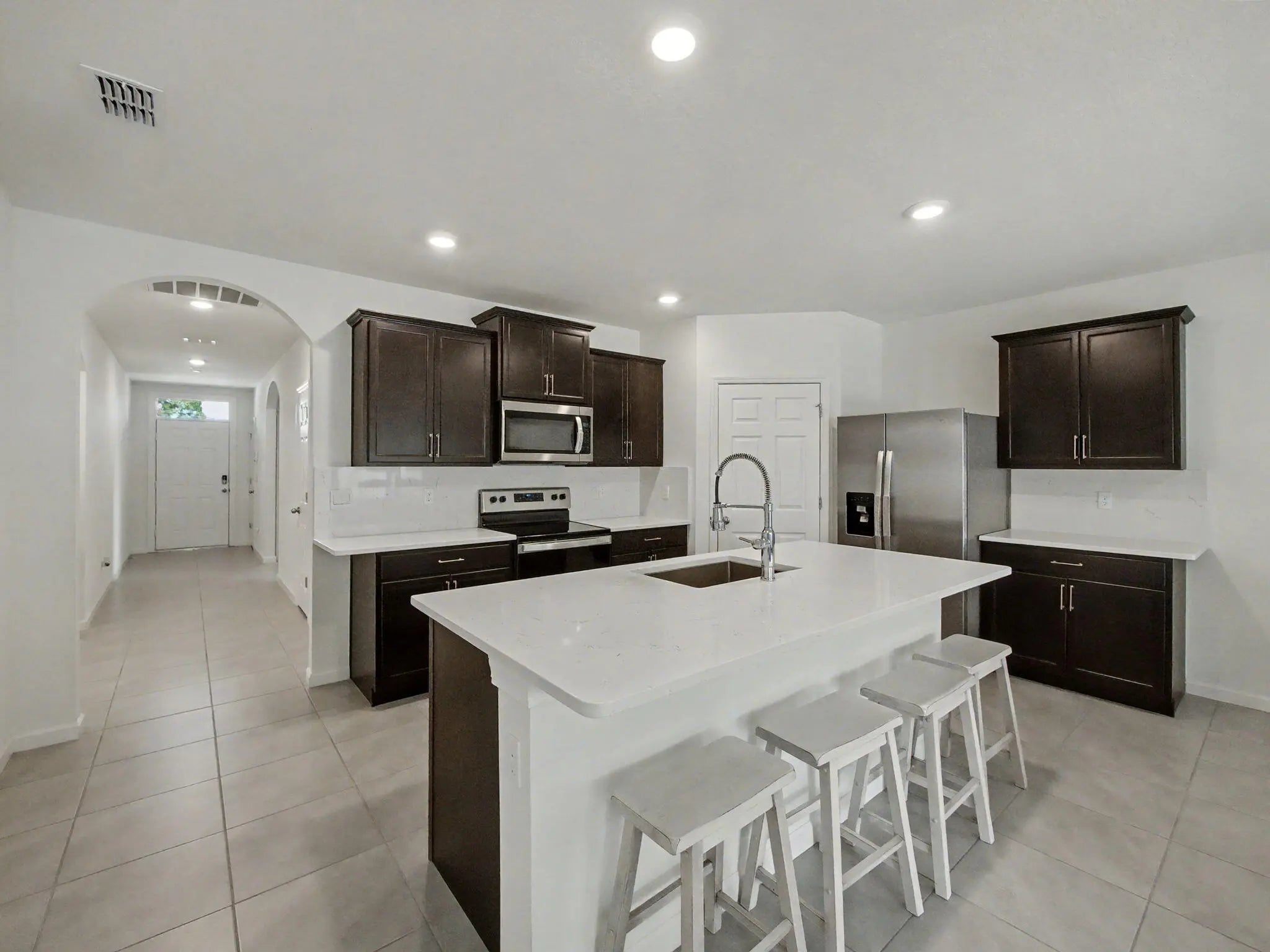 No HOA and No Restrictions, with easy access to major highways, restaurants, shopping centers and great schools! This 2022 newer-construction DR Horton Cali model offers 4 bedrooms, 2 bathrooms, and a 2-car garage on a spacious .24-acre corner lot. This home is LIKE NEW, exceptionally maintained with has upgrades not included in current builder base models. Step inside to an open, inviting layout featuring neutral tones, upgraded quartz window sills, and tile flooring throughout the main living areas. The kitchen is beautiful with quartz countertops, backsplash, and updated fixtures. Smart-home technology—including an alarm system and Ring cameras adds convenience and peace of mind. The spacious primary bedroom overlooks the backyard and features an ensuite with a double-sink vanity, upgraded quartz bathroom finishes, linen closet, privacy toilet, and a generous walk-in closet. Outdoors, enjoy the South Florida lifestyle in your new fully fenced yard, complete with a huge covered patio, beautiful pergola, and a shed for extra storage. The new fence has gates on both sides of the yard and can accomodate a boat or toys! There's plenty of room for entertaining, gardening, or customizing the space to your needs. A brand-new sprinkler system with well was just installed for premium and affordable lawn care. Don't miss the opportunity to make this beautiful property your own and schedule your visit today!