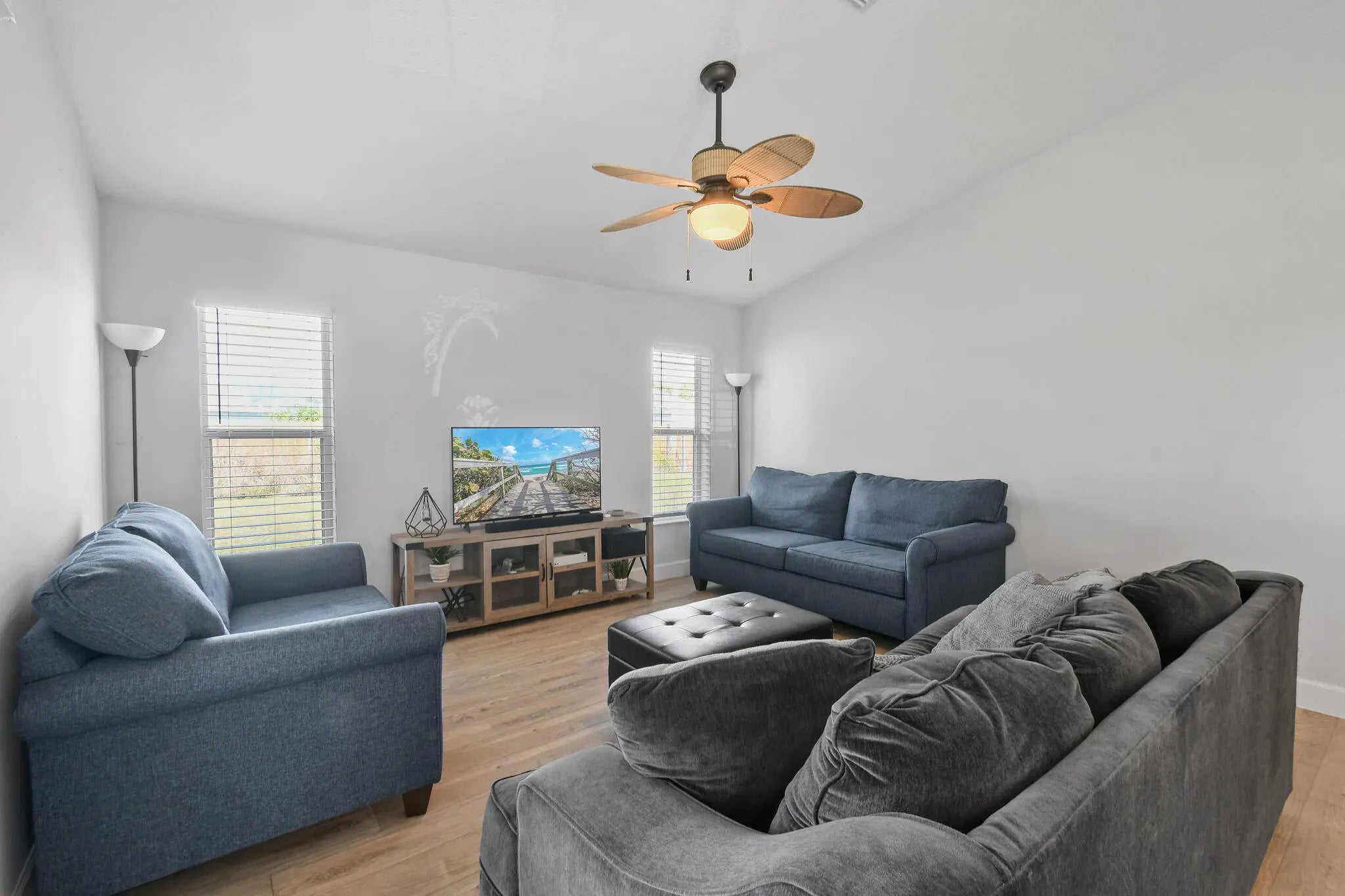 Move-in Ready Home in South Port St. Lucie Step into this beautiful 3-bedroom, 2-bath home with a spacious 2-car garage. The elegant glass double front doors open to an airy open floor plan featuring formal living and dining areas. Enjoy brand-new laminate flooring throughout and freshly painted interiors that create a modern, welcoming feel. The kitchen is equipped with stainless steel appliances and flows seamlessly to a large screened-in patio—perfect for entertaining. A fenced backyard offers privacy and space for outdoor living. Conveniently located near shopping, dining, and major highways, this home combines comfort with accessibility.