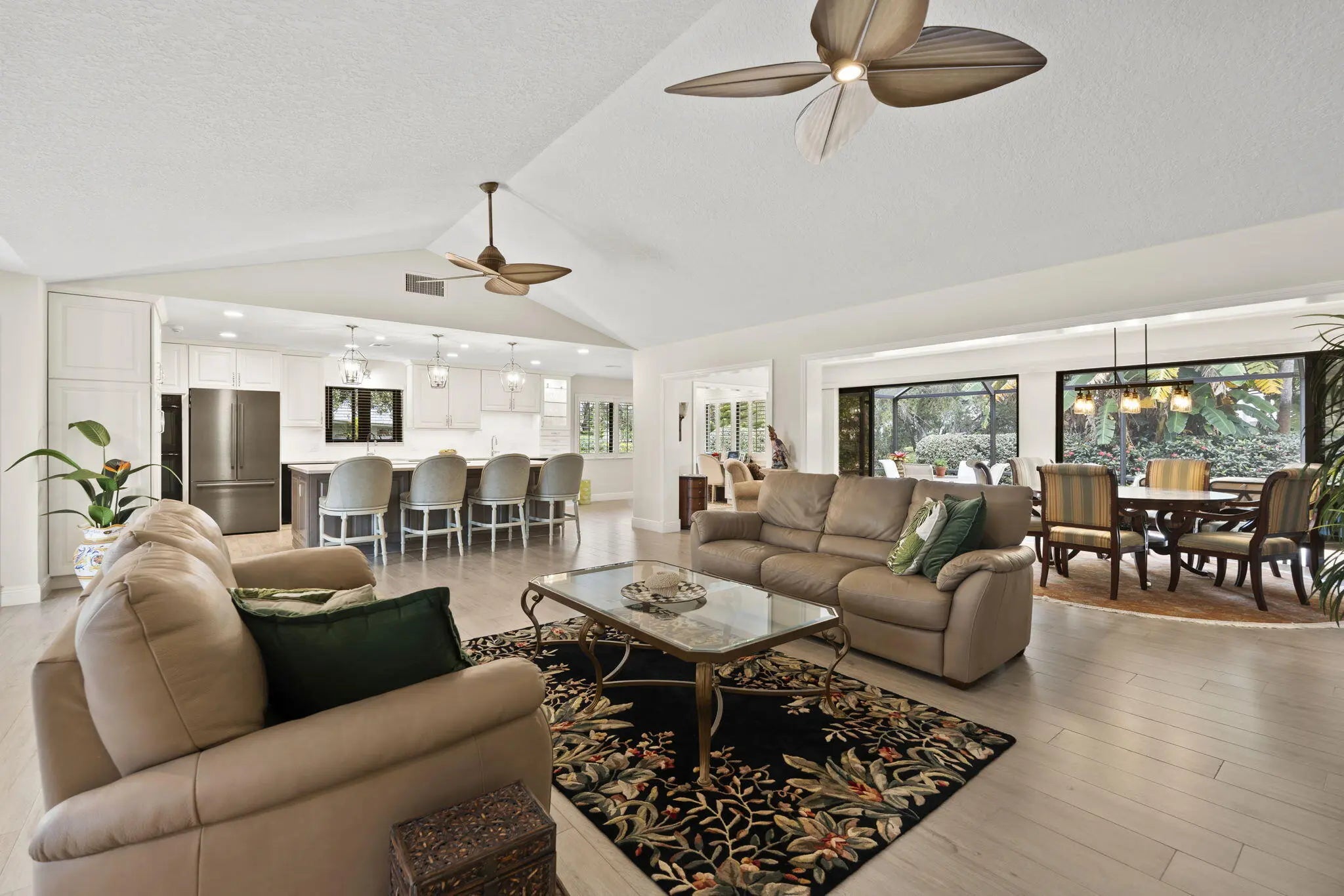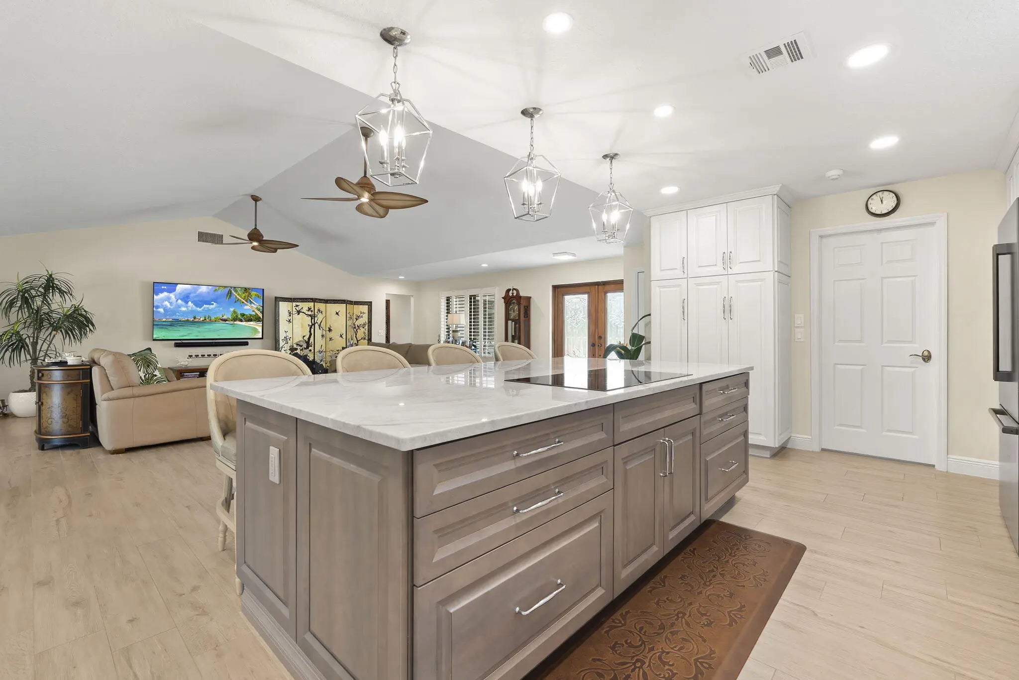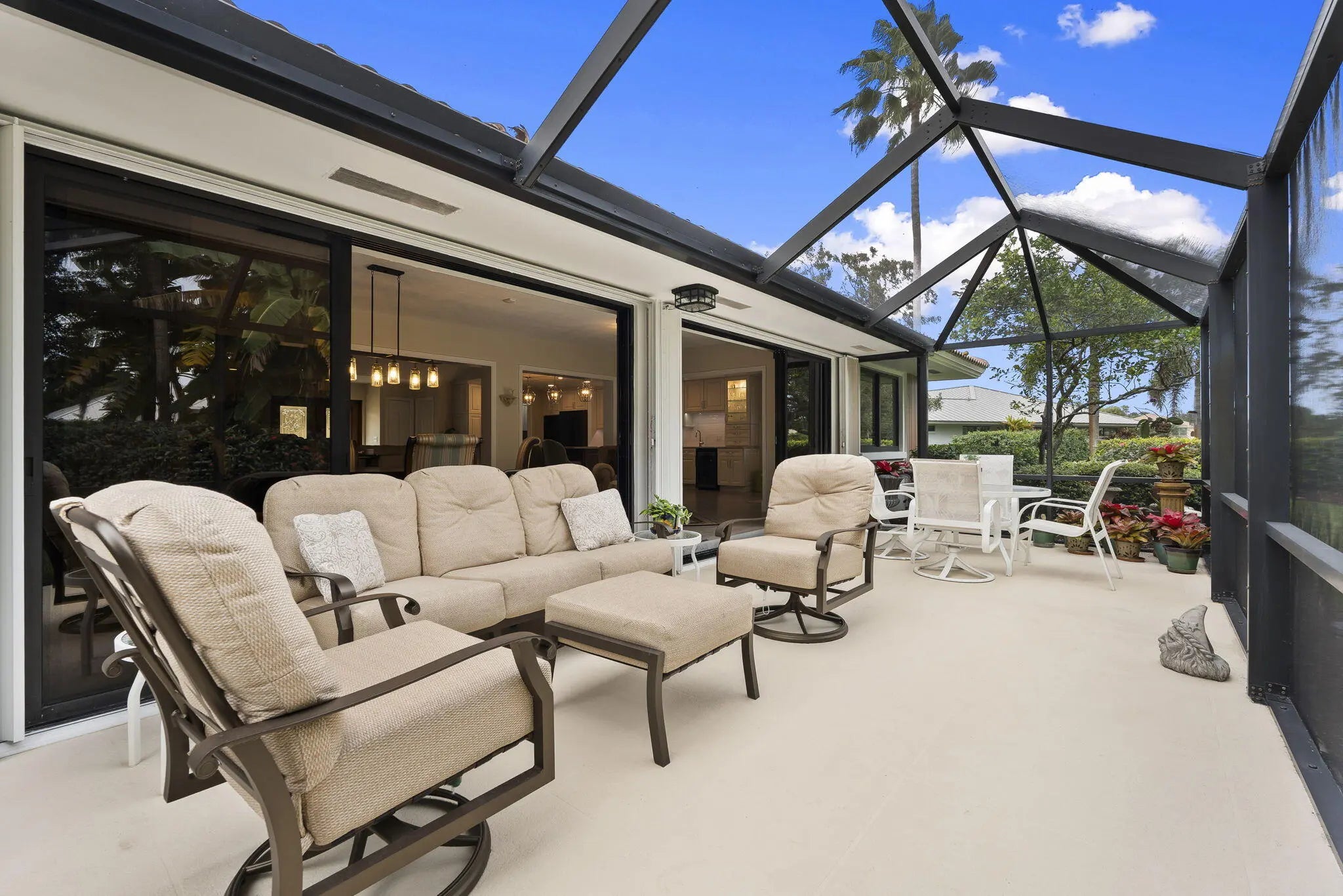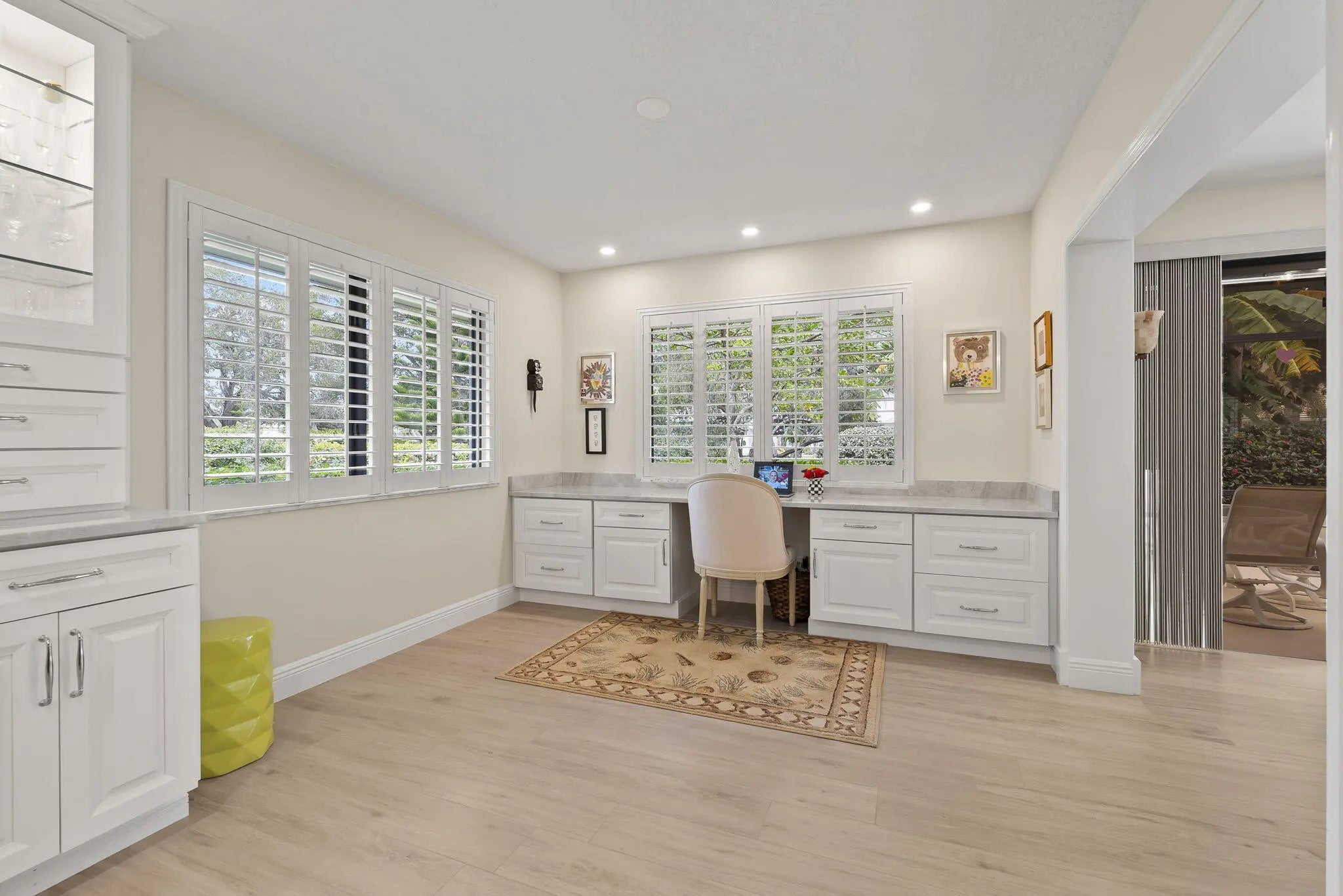 Located in the gated and exclusive community of Pipers Landing, perfect for golf & boating enthusiasts—this beautifully renovated home features a complete 2021 transformation. The stunning open kitchen flows into the living room and offers quartzite countertops, new cabinetry, double sinks, a wine cooler, built-in desk area, and all-new appliances. Enjoy plantation shutters, impact windows (with accordion shutters on the sliders), an impact-rated garage door, new tile flooring, epoxy garage flooring, updated electrical, a 2019 tankless water heater, 2011 barrel tile roof, and a 4-year-new AC. The primary suite includes a walk-in closet and double-sink vanity, while the guest bath offers a newly tiled shower & an updated vanity Steps away is your quiet community pool, virtually your own private retreat right next door. Come fall in love with this like new Florida retreat.