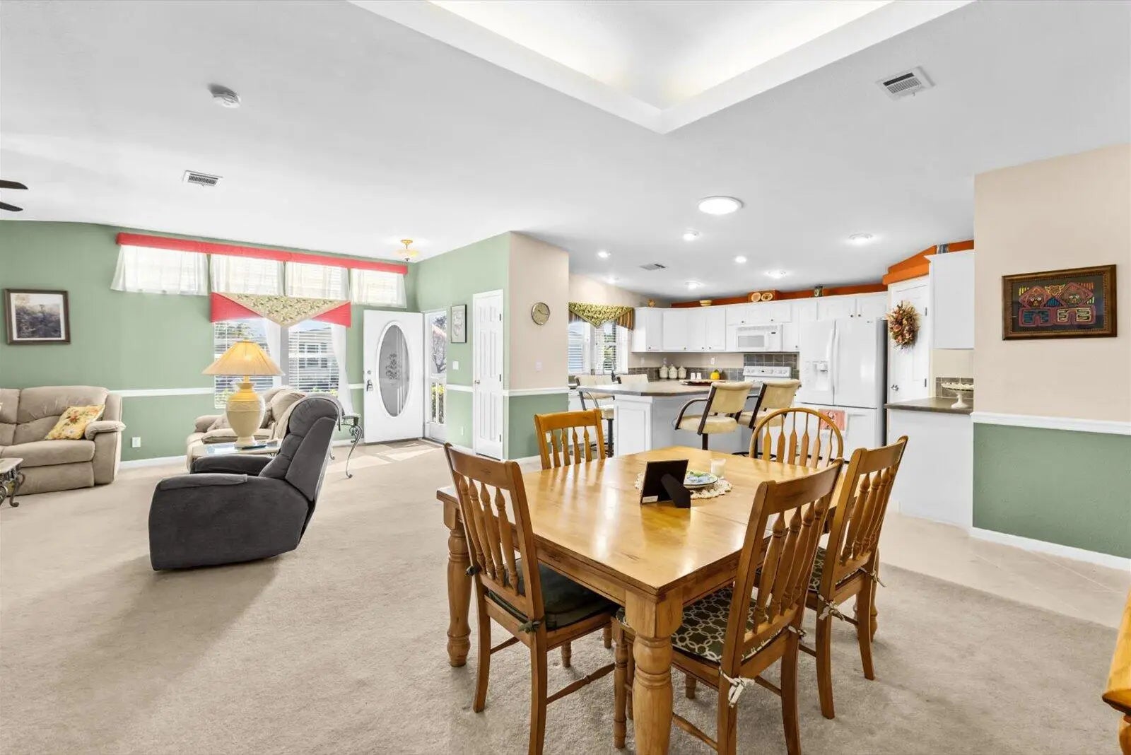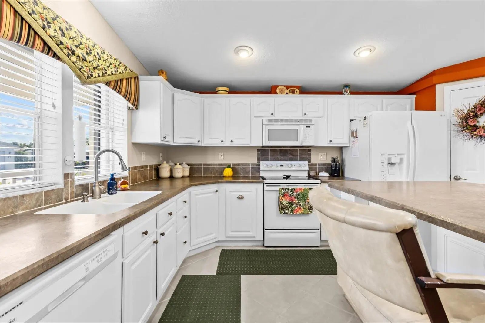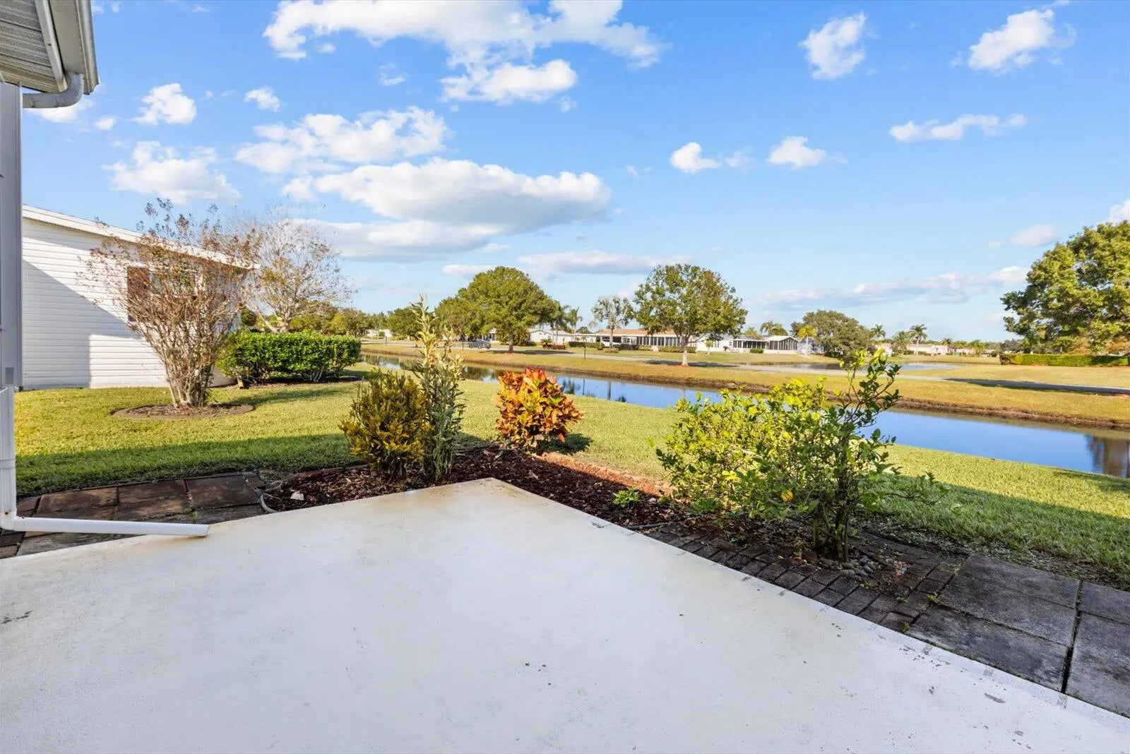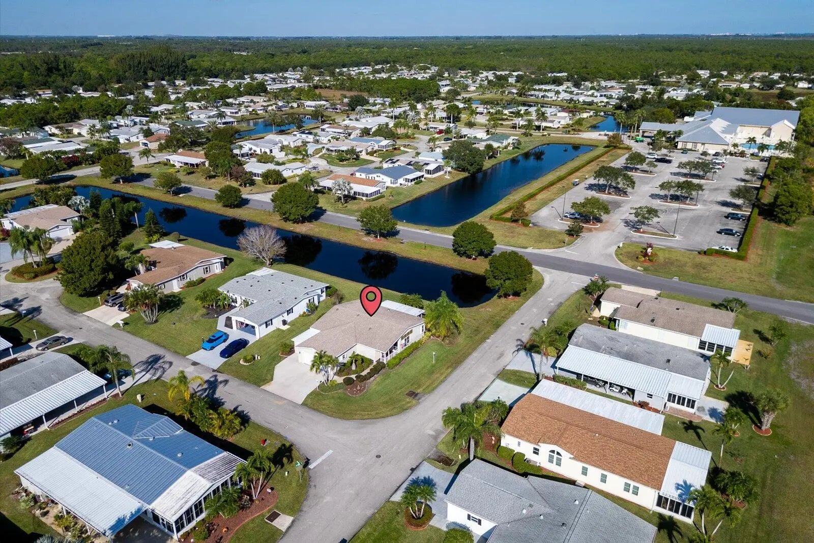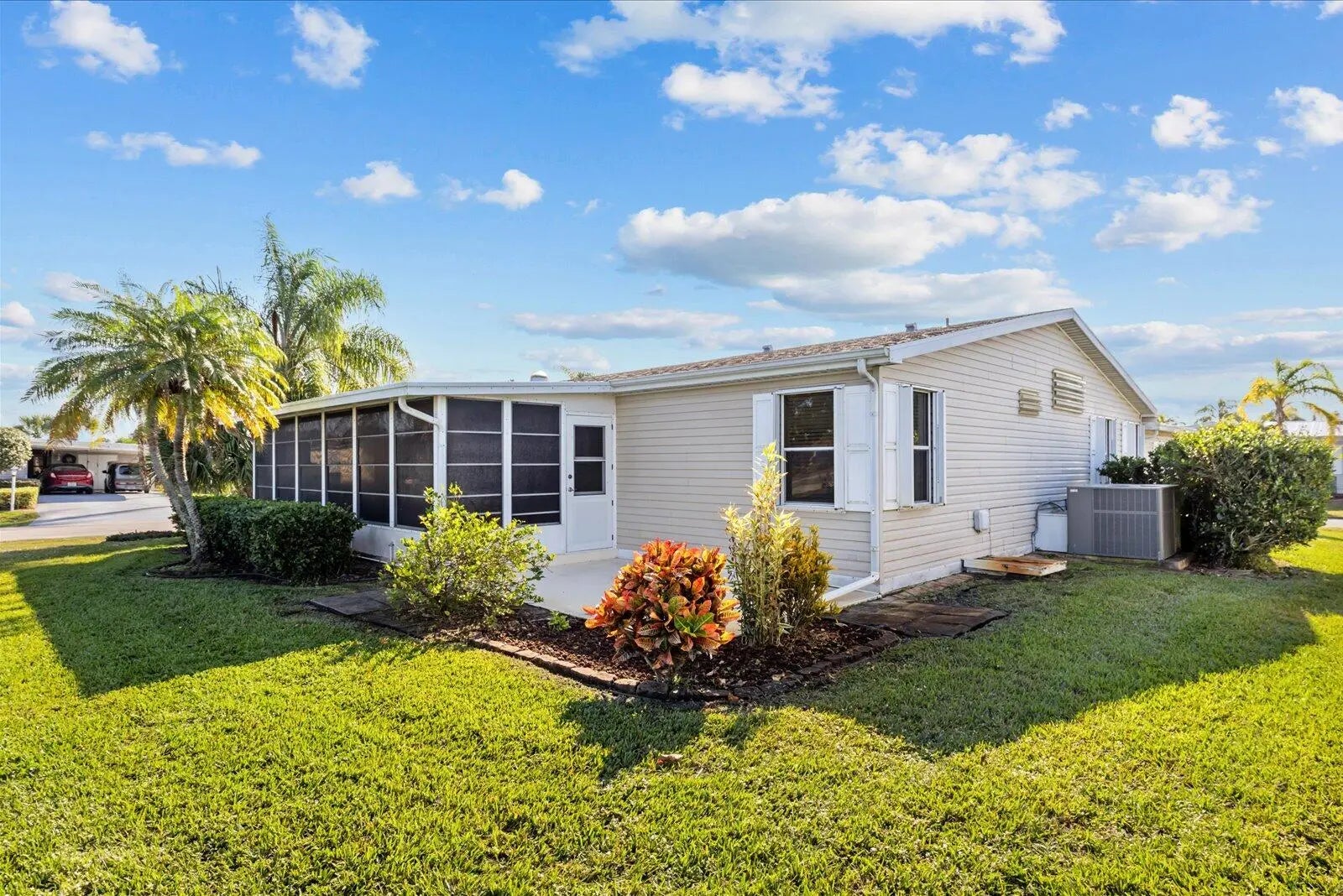 Bright and inviting, this 2-bed, 2-bath home with a den/office offers 1,880 SF of comfortable living in the amenity-packed Savanna Club 55+ community. The split-plan layout features a great room plan with island kitchen, spacious living areas, and an enclosed, tiled lanai overlooking a tranquil lake—perfect for relaxing and a short walk across the street to the Eagles Landing clubhouse, fitness center, 10,000sf theatre and pool. A 2-car garage, + a large storage shed, and irrigation well add everyday value and convenience. Enjoy peace of mind with a 2018 roof, 2021 A/C, and accordion shutters. Fully furnished and move-in ready for seasonal escapes or full-time living, this home blends value, comfort, and resort-style amenities in one exceptional package. Land Lease Property