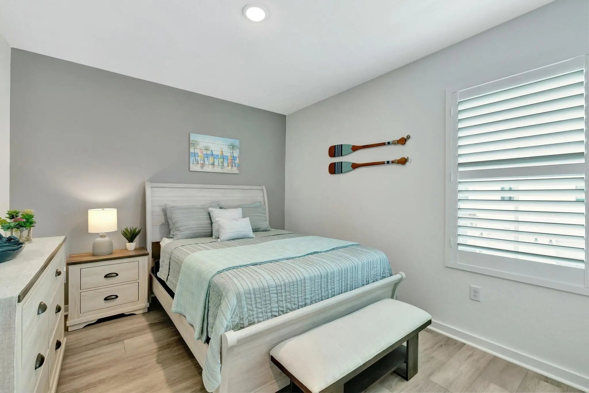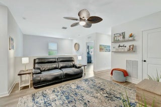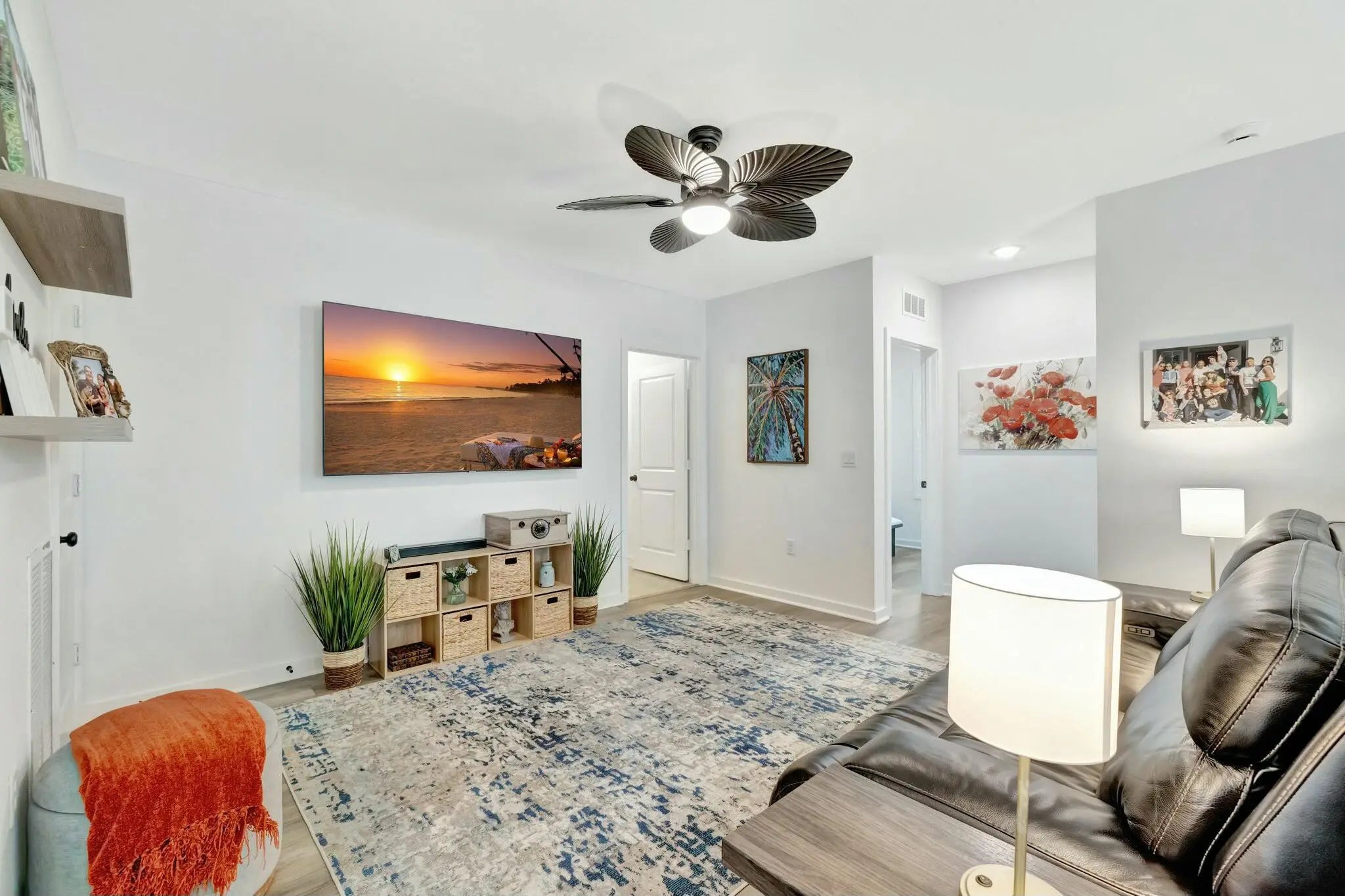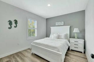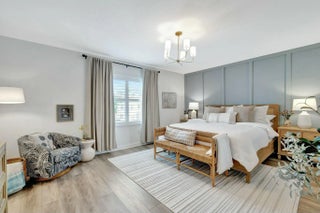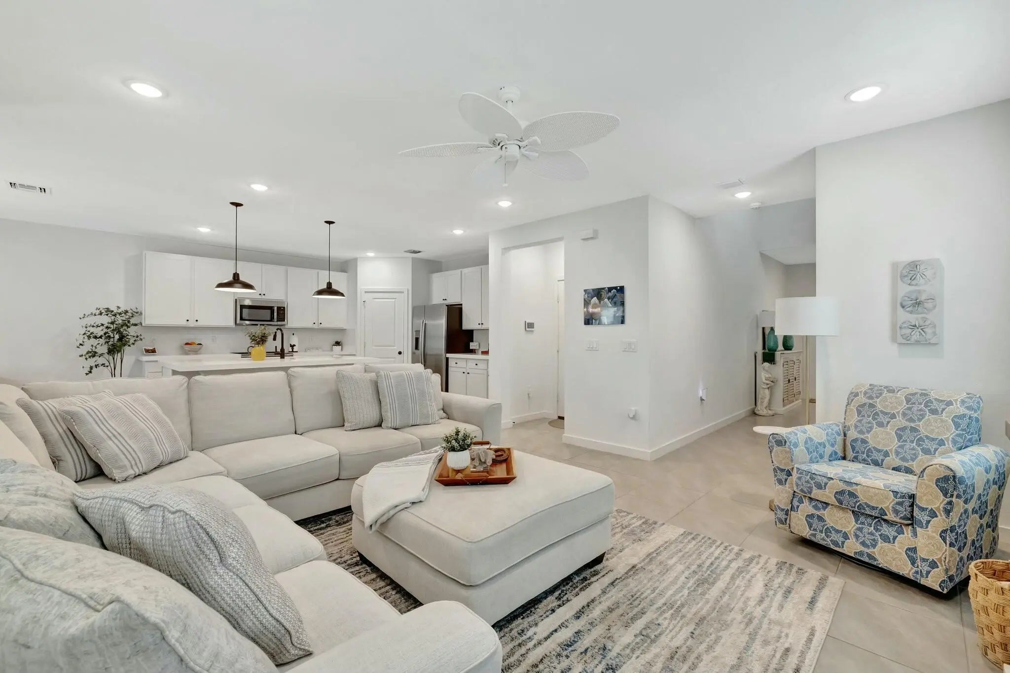 Beautiful 4-Bedroom, 2.5-Bath + Den Corner Unit with Farmhouse Charm! Welcome to this spacious and stylish corner unit, designed with a curated Farmhouse Design Palette and upgraded throughout for modern comfort. The home features plantation shutters on every window, engineered hardwood flooring throughout (no carpet!), and designer chandeliers, ceiling fans, and light fixtures that elevate every room. The open-concept layout is perfect for both everyday living and entertaining, with a beautifully screened-in lanai and a private patio framed by lush Clusia bushes, creating your own serene outdoor escape. Inside, enjoy 42'' shaker-style cabinets, a stylish tile backsplash, and a versatile den ideal for a home office or flex space. This rare 4 spacious bedrooms, 2.5 baths unit, and refined finishes throughout, this home offers the perfect blend of warmth, functionality, and farmhouse elegance. Don't miss your chance to own one of the most desirable layouts in the community!