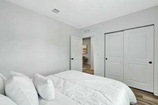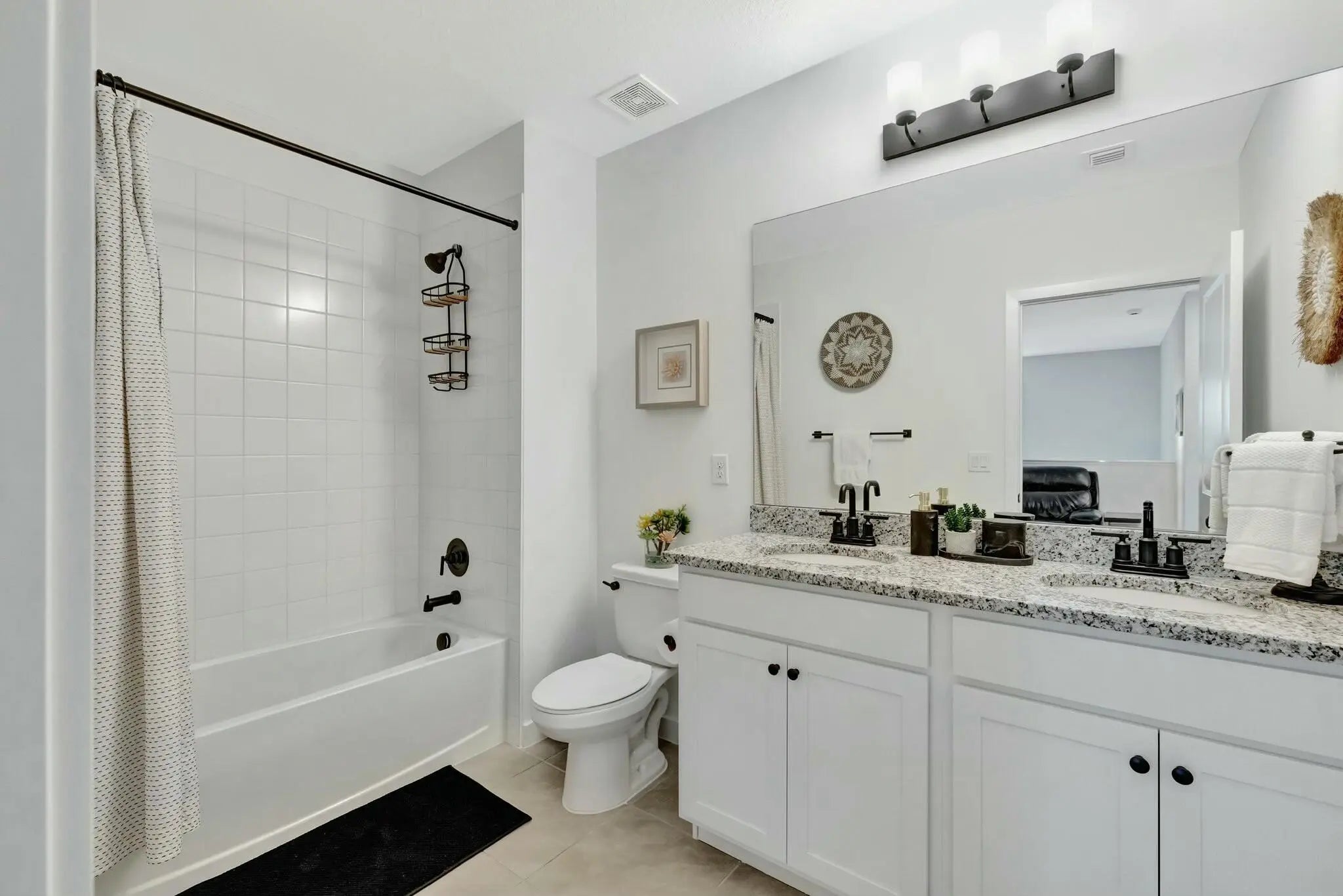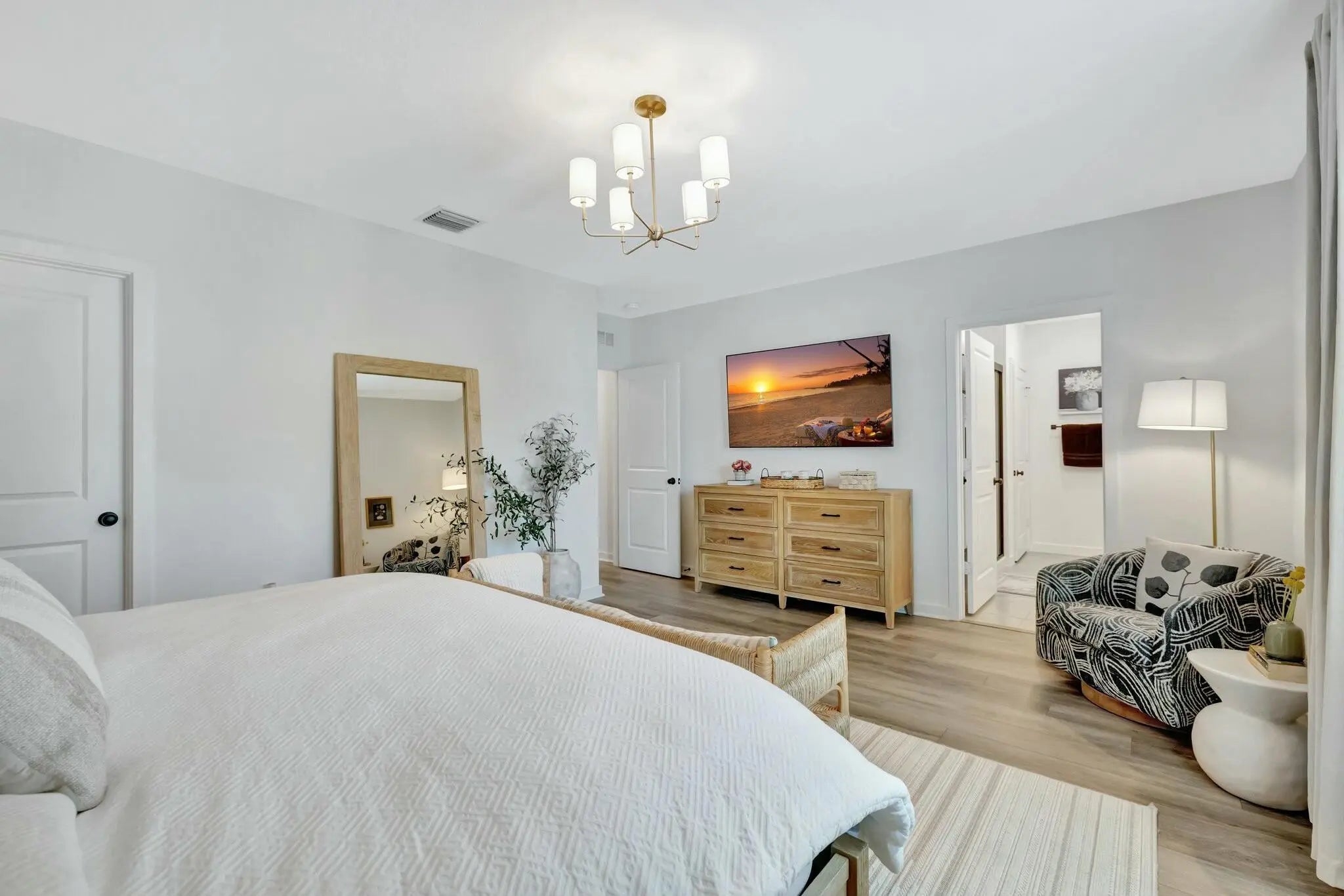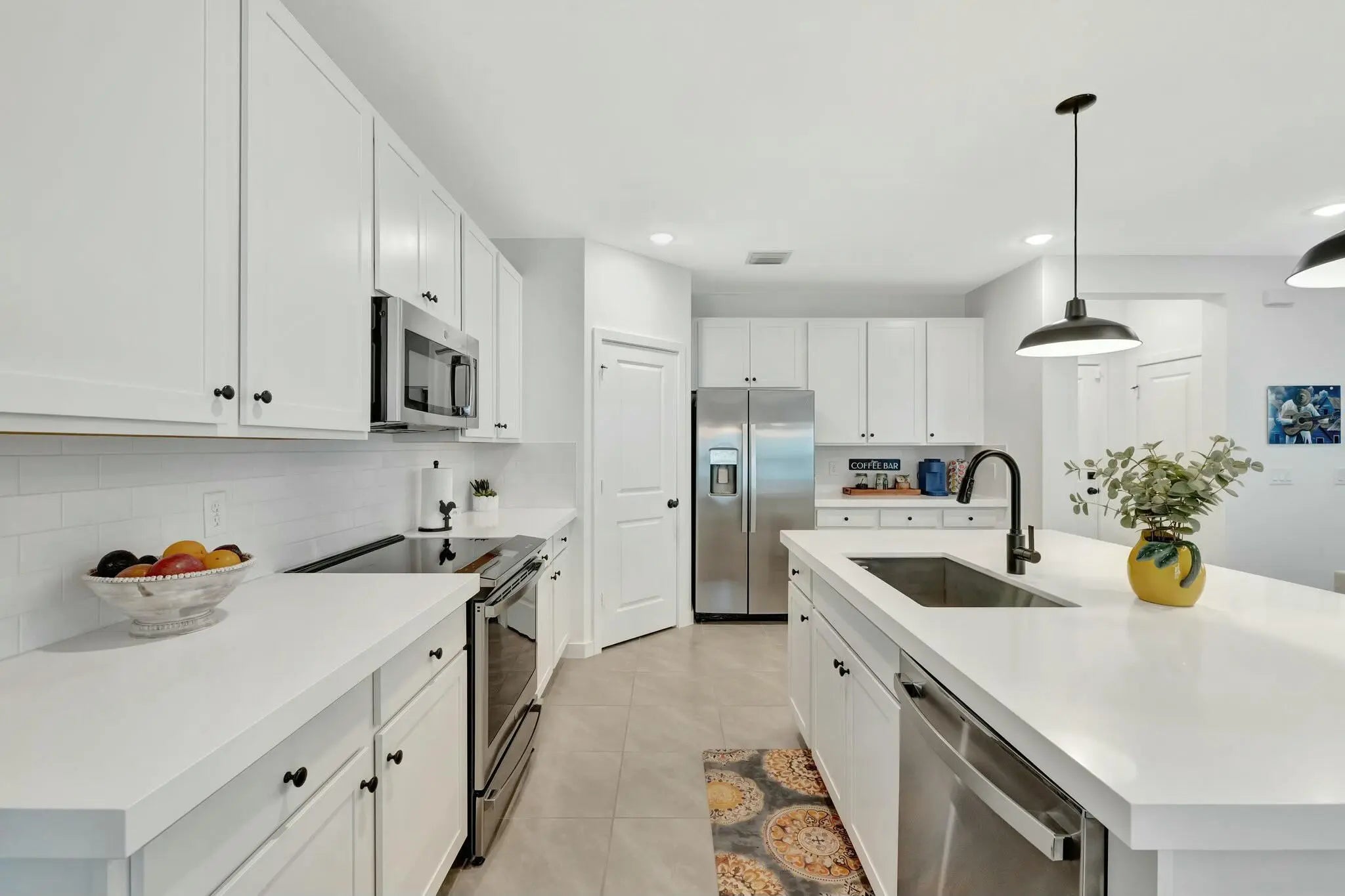 Beautiful 4-Bedroom, 2.5-Bath + Den Corner Unit with Farmhouse Charm! Welcome to this spacious and stylish corner unit, designed with a curated Farmhouse Design Palette and upgraded throughout for modern comfort. The home features plantation shutters on every window, engineered hardwood flooring throughout (no carpet!), and designer chandeliers, ceiling fans, and light fixtures that elevate every room. The open-concept layout is perfect for both everyday living and entertaining, with a beautifully screened-in lanai and a private patio framed by lush Clusia bushes, creating your own serene outdoor escape. Inside, enjoy 42'' shaker-style cabinets, a stylish tile backsplash, and a versatile den ideal for a home office or flex space. This rare 4 spacious bedrooms, 2.5 baths unit, and refined finishes throughout, this home offers the perfect blend of warmth, functionality, and farmhouse elegance. Don't miss your chance to own one of the most desirable layouts in the community!