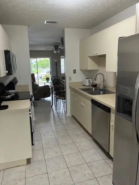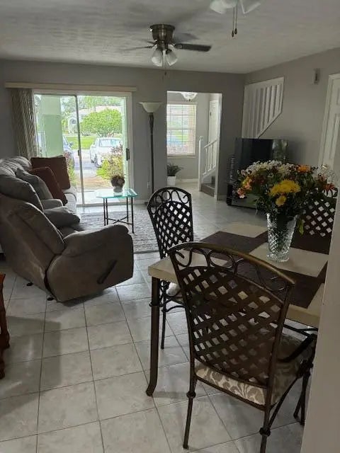 Spacious Townhome with 3 bedrooms and 3 full baths. Offered fully furnished/turnkey if desired. When you walk thru the front door, you will be pleased with the open feel. First floor has kitchen, Living area, 1 bedroom and full bath. Upstairs there are two more bedrooms each with their own bath plus washer/dryer. Great covered and screened rear patio. Full accordion shutters. A/C & water heater new in 2022, Roof new in 2025. Exterior painted in 2025. All new faucets and toilets. New electrical panel. New microwave. First floor is all tile. Stairs and second floor all vinyl. Community has HEATED pool, tennis, sauna, hot tub, fitness center. Conveniently located east of US1 and close to so much. Cannot rent the first year of ownership.