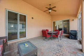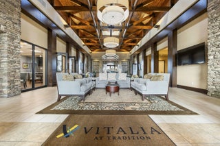 Vitalia at Tradition. Vitalia is an over 55 resort style community. 2 bedroom PLUS den and 2 car garage. Eat in kitchen offers granite counters, wood cabinetry , snack bar and gas range. AC 2025. Tankless water heater 2025. Large primary suite includes 2 walk in closets and access to screened in patio. Walk in shower and soaking tub. Impact hurricane windows. Custom garage flooring and custom storage cabinets. Covered and screened 25x13 patio. 24 hr manned gate. Community offers 24,000 ft clubhouse, tennis, pickle ball, pool, cabanas, fitness center, library, card rooms, computer room and many clubs and classes. HOA fee included cable, internet, security, lawn, sprinkler repair, mulching & tree trimming .