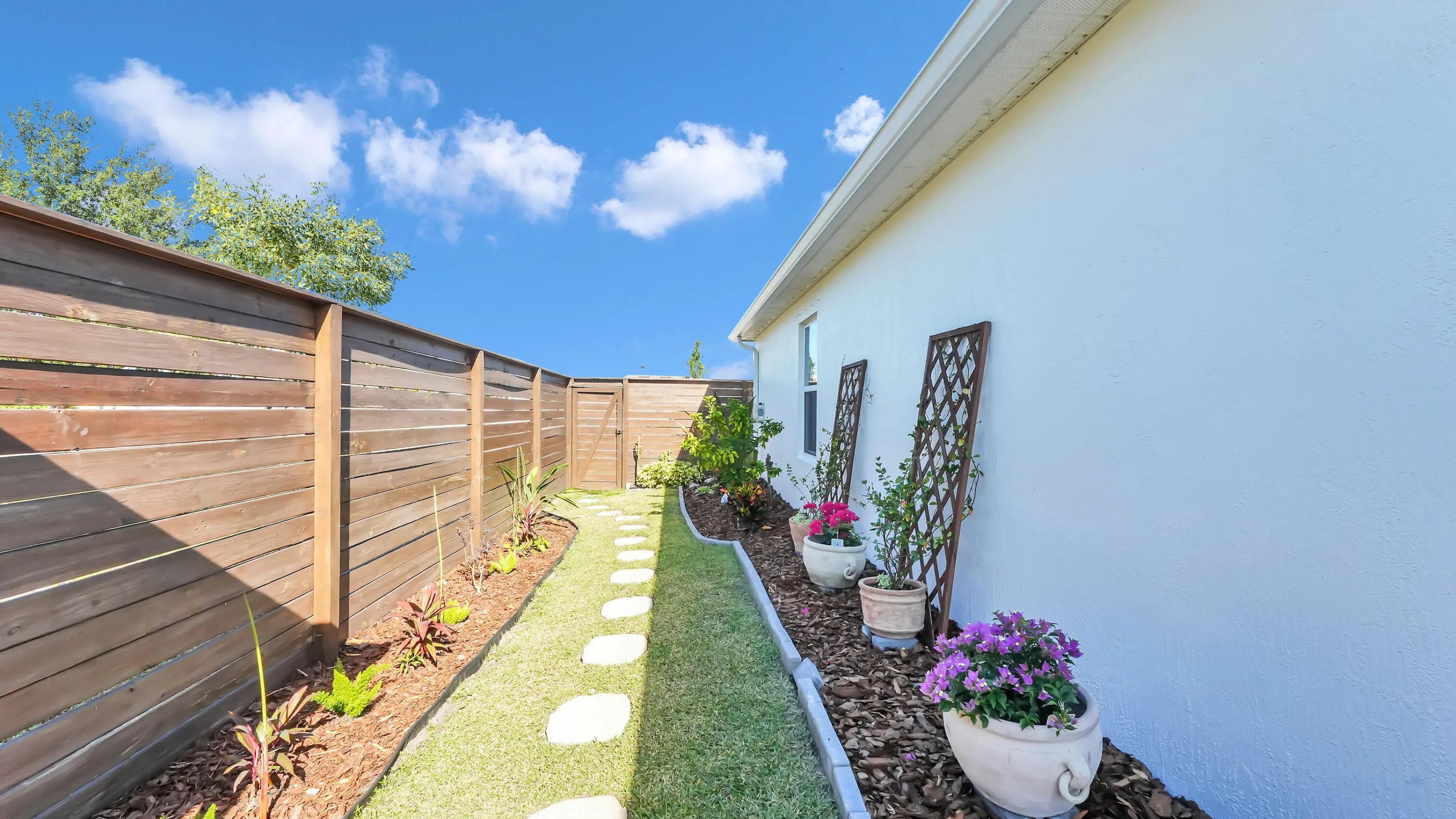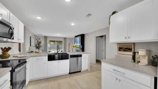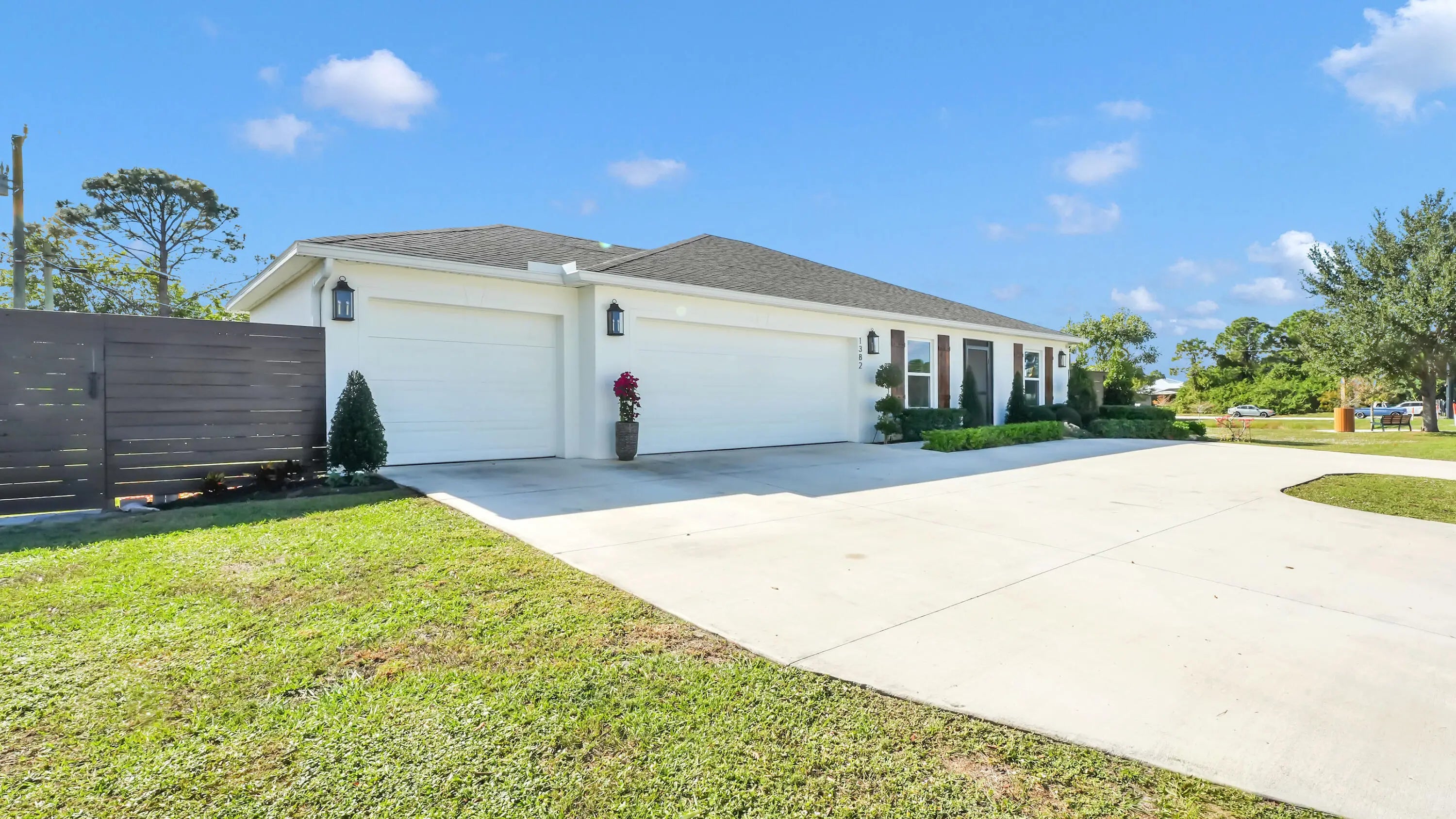 Welcome to this beautifully upgraded 2023 single family home on a corner lot with no rear neighbors! This 3 bed, 2 bath + den / office with a 3 car garage home is close to I-95, turnpike and minutes away from Tradition, shopping, dining and hospitals. Tile flooring throughout, the open living space includes a stylish fireplace, and the modern kitchen is enhanced by a Samsung smart refrigerator. The home is also equipped with a smart washer and dryer. The private backyard is an oasis, featuring a 7-ft real wood privacy fence, 400 sq. ft screened covered patio with roll-down shades, above ground pool, and a separate turfed area designed with pets in mind. Meticulously crafted landscaping and a freshly painted exterior. This home is truly better than new!