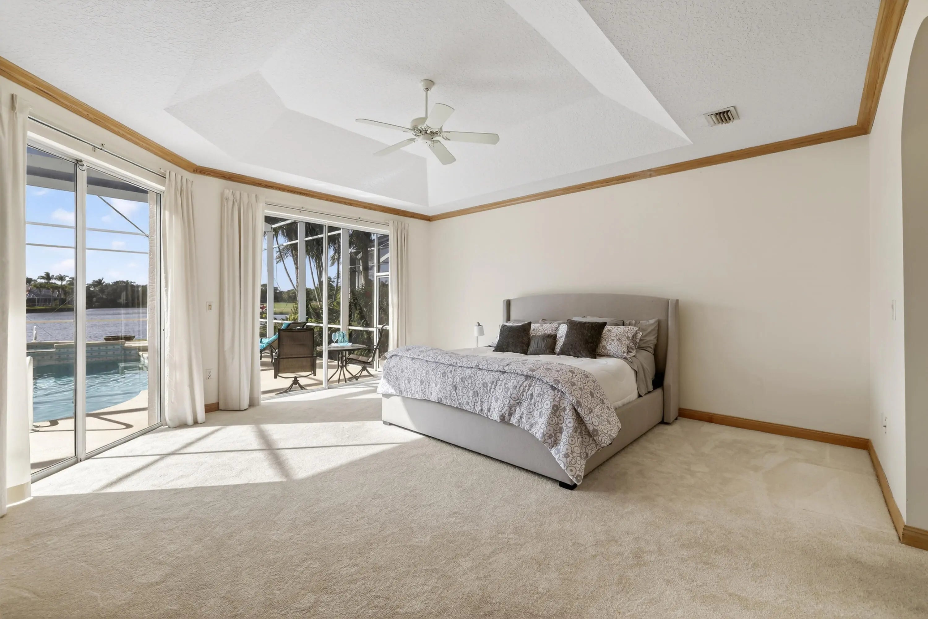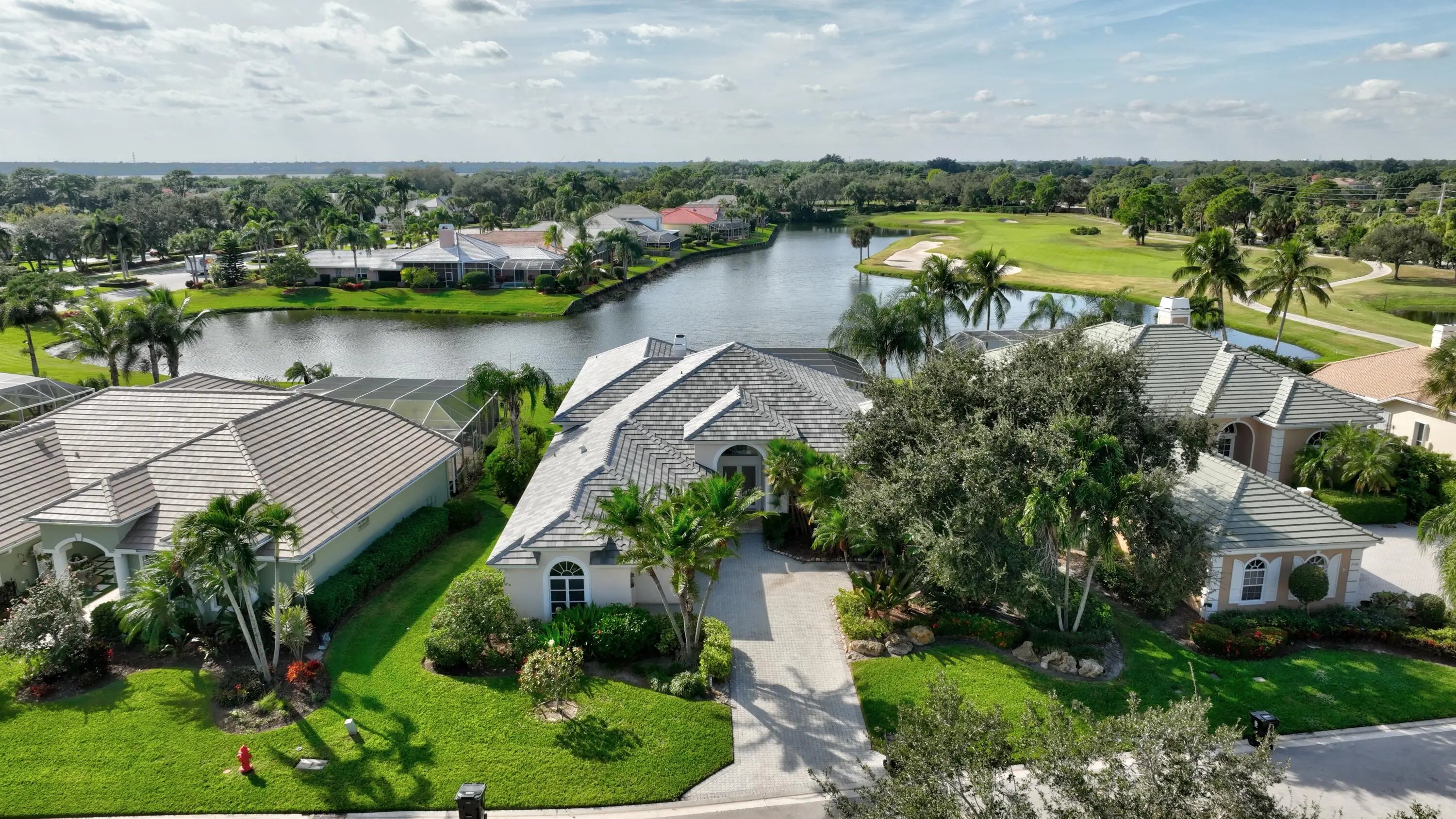 NEW PRICE! Water and golf course views with stunning sunsets and a 67-slip marina await in the prestigious, gated Ballantrae community. This spacious 3,350 sq ft pool home offers 3 bedrooms plus a dedicated office, 3 full and 2 half baths, a NEW ROOF, and two newer A/C units. Enjoy resort-style living along the St. Lucie River with access to a private golf course, yacht club, and numerous amenities. The open kitchen and living area flows to a screened pool and spa overlooking wide water views, while 12-foot ceilings, crown molding, and a fireplace add elegance throughout. The primary suite features two large walk-in closets and a luxurious jacuzzi tub, while each guest bedroom has its own ensuite bath. A dedicated office offers the perfect work-from-home space.