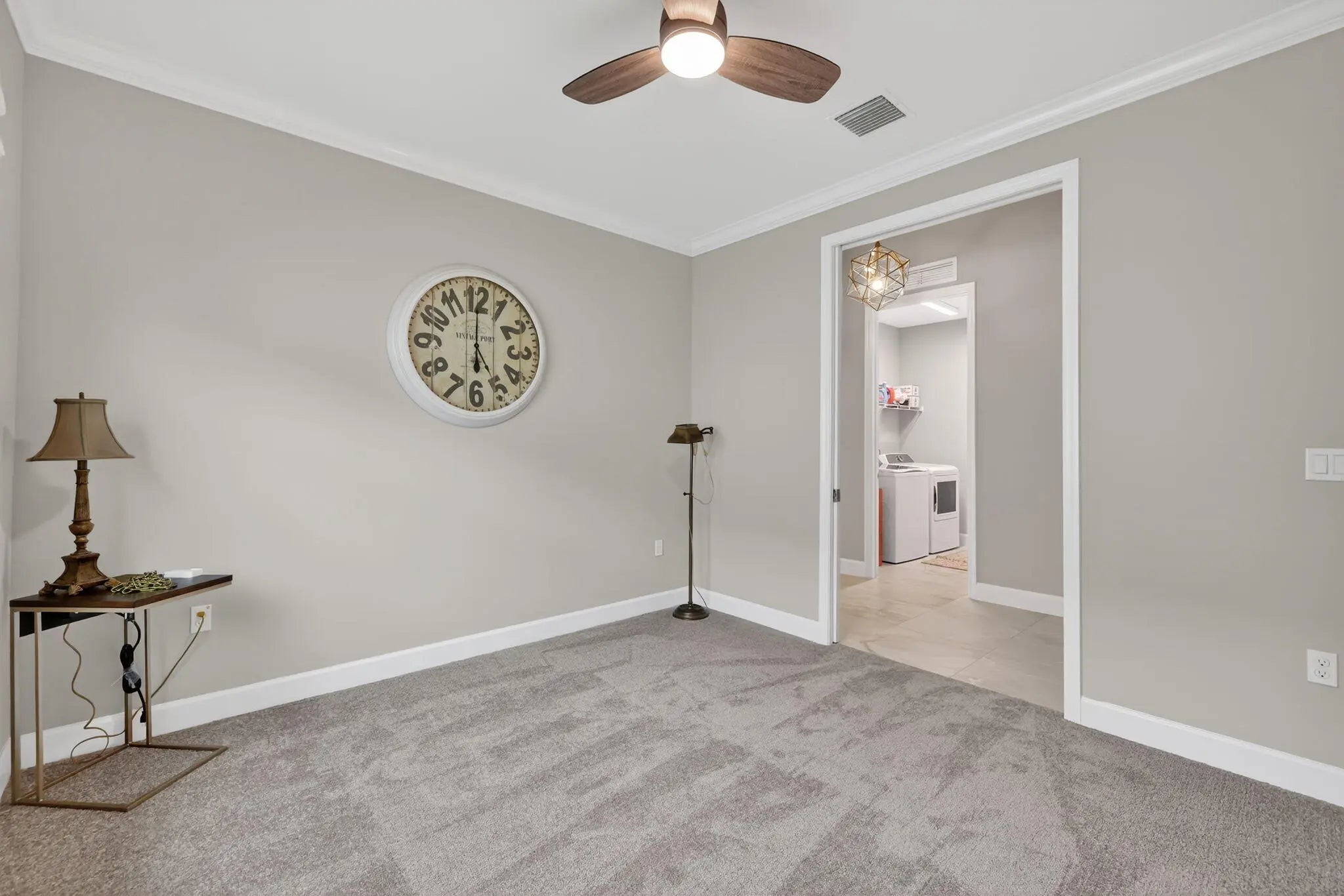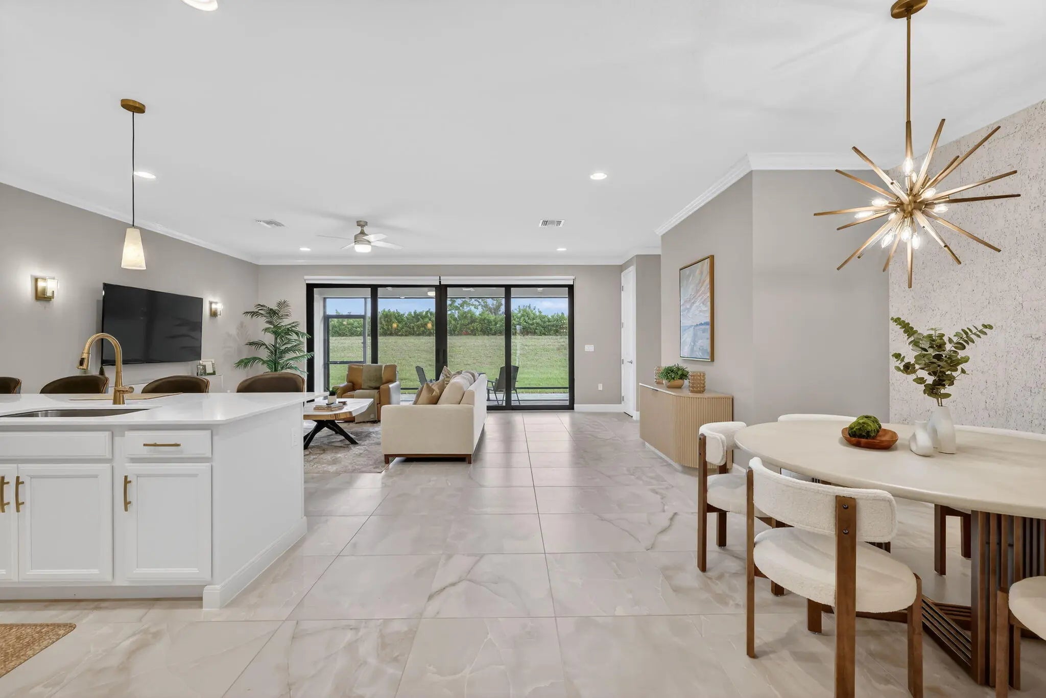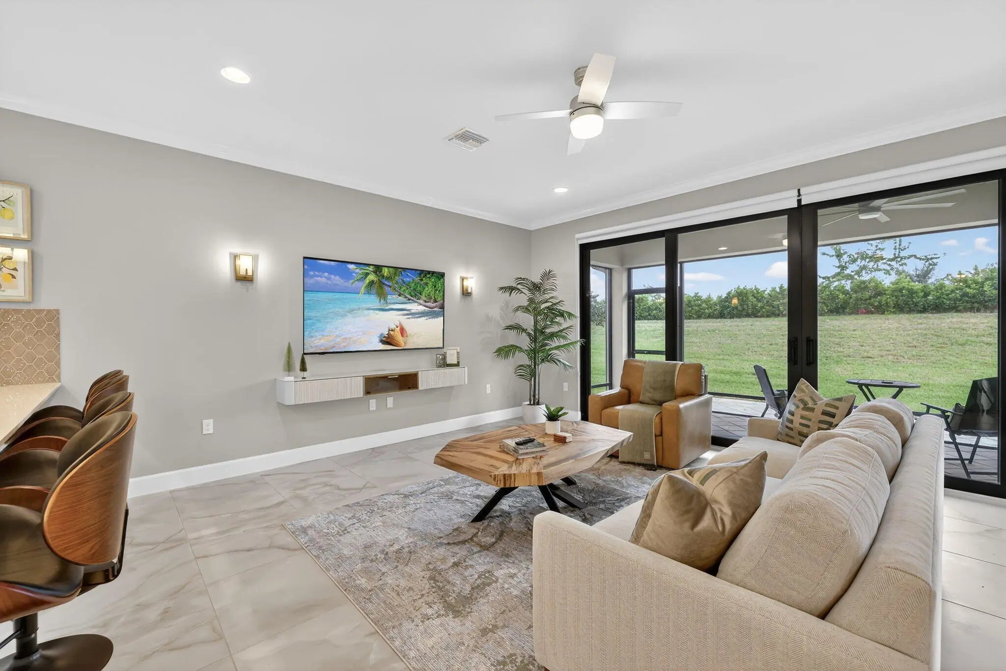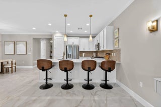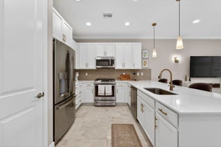 Furnished annual or multi-year rental available January 1, 2026 in the highly desirable 55+ community of Valencia Walk at Riverland. This one-year-old Sandpiper model offers 1,752 square feet under air with a bright, open floor plan and tasteful upgrades throughout. The east-facing patio backs to a tall landscaped berm, providing excellent privacy along with shaded, comfortable afternoons and evenings—perfect for relaxing or entertaining. This home features whole-house crown molding, white soft-close kitchen cabinetry, quartz countertops throughout, and upgraded kitchen appliances, including a gas range and vented microwave. Designer lighting, with ceiling fans in every room and on the patio, upgraded faucet and shower fixtures in both baths, and floor-to-ceiling mirrors in the primary bathroom enhance the home's modern appeal. Additional highlights include pocket doors to the den, extended and upgraded outdoor pavers, upgraded driveway pavers, along with a gas dryer and gas water heater. Residents enjoy access to Riverland's unparalleled lifestyle amenities, including world-class pickleball and tennis, a full-service restaurant with indoor and outdoor dining and outdoor bar, resort-style pools, fitness and wellness centers, arts and culture studios, and miles of walking paths. Conveniently located near Cleveland Clinic Hospital, Mets Spring Training, shopping, dining, and easy access to I-95, this furnished rental offers comfort, style, and an exceptional Florida lifestyle.