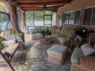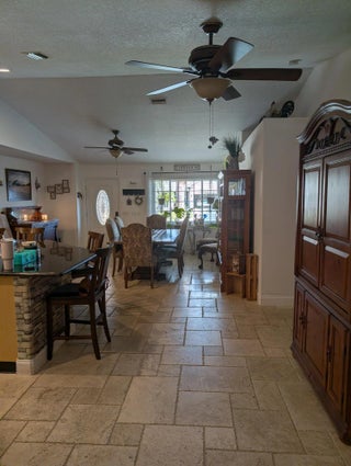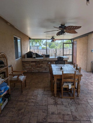 Backyard features pool oasis with waterfall and outdoor kitchen. Newer renovations include ROOF 2024/ A/C 2021/ WATER HEATER 2024.The kitchen and it's large granite island are a perfect area for family chats or kids homework space. This space is a definite must see. The family/movie entertainment room is spacious enough for all your guests. The primary bedroom is located separate from the other 3 bedrooms and bath. This home is move in ready so pack your bags and enjoy. Relax and listen to the soothing rock waterfall in your screened pool area. The covered porch area is made of cypress log and stone columns and cedar ceiling. Enjoy the area that has a wet bar and is perfect for an outdoor kitchen. There is a Cabana Bath located by the pool as well as two additional storage rooms.