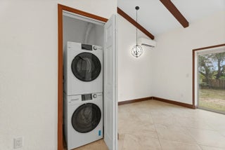 This charming former schoolhouse with original Dade Country pine flooring, now beautifully transformed into a unique residence with all the modern comforts. Situated on a double lot this home is nestled near the Indian River and the Savannahs, right next to a cul-de-sac. The home features a newly built efficiency private guest suite or flexible space used for visitors, extended stays or studio/office that was added in 2016, complete with ceramic tile flooring and impact glass sliders, and a breezeway connecting it to the main house. The kitchen boasts a 2021 custom renovation, including new appliances and a reverse osmosis water filtration system. Outside, you'll love the fenced side yard that's great for pets, and there's room to add a pool if you wish.