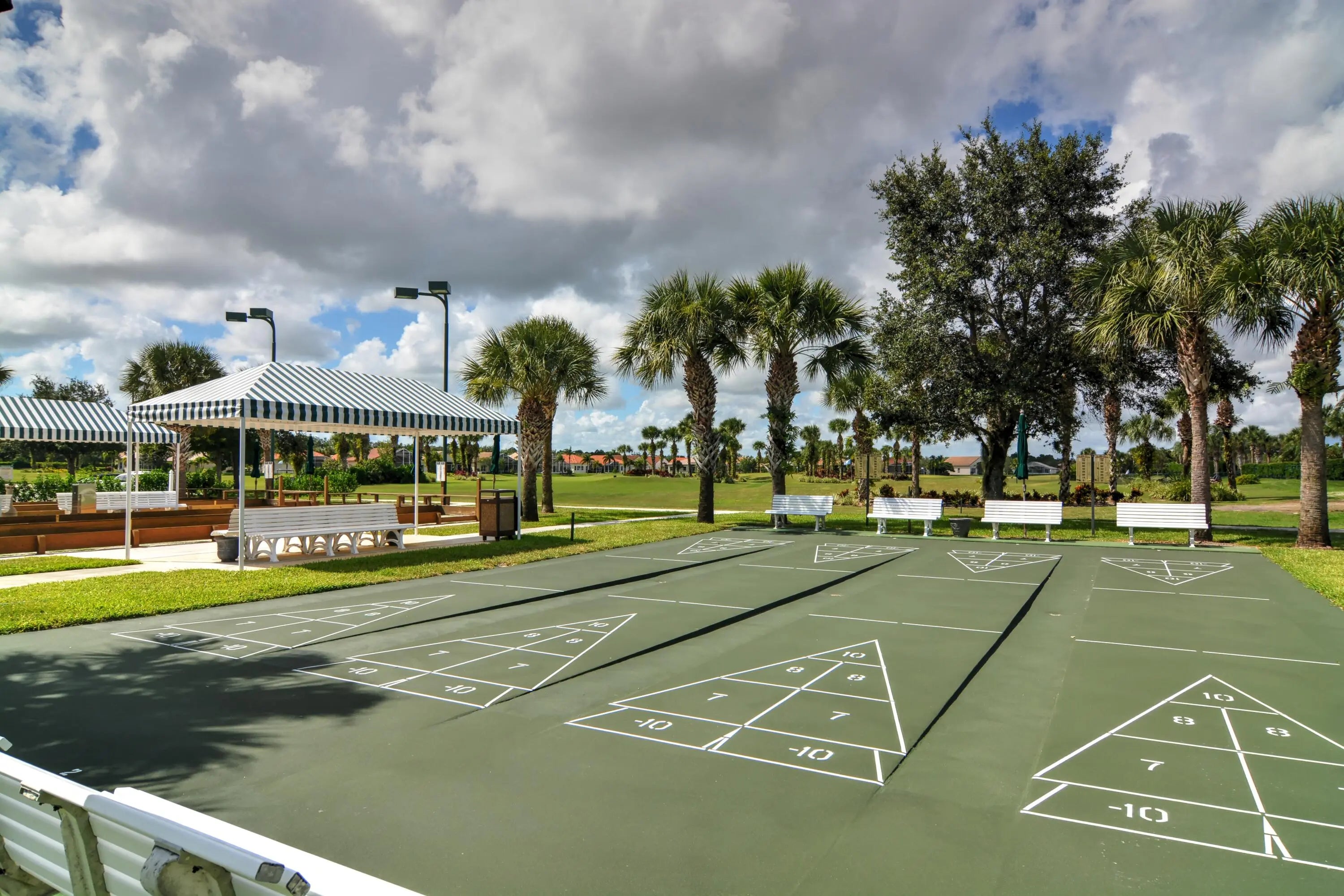 Billiard Room, Clubhouse, Fitness Center, Golf Course, Pool, Sauna, Shuffleboard Court, Spa/Hot Tub, Tennis Court(s), Bocce Ball, Community Room, Internet Included, Library, Pickleball Court(s), Putting Green, Street Lights