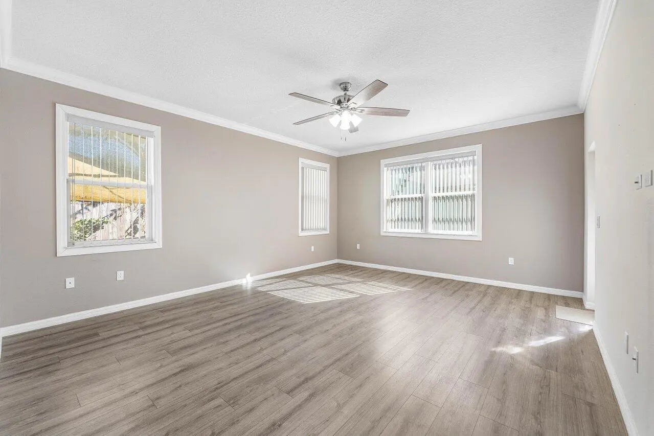 IDEAL MULTI-GENERATIONAL LIVING with 6 bedrooms and 5 full bathrooms, a large loft, and a three-car garage, the layout is both generous and flexible, including two private primary suites, one on each level. The heart of the home is the bright, open living area where the kitchen, dining space, and family room connect seamlessly to the screened pool and patio, creating a natural indoor-outdoor flow that's perfect for entertaining or enjoying Florida living year-round. The kitchen is well equipped with stainless steel appliances, including two refrigerators, a walk-in pantry and a dedicated laundry room. Upstairs, the oversized loft offers a versatile bonus space for a media room, playroom, or home office. The second primary suite features its own private bath and walk-in closet, while additional bedrooms are thoughtfully arranged with a mix of ensuite and Jack-and-Jill bathroom access. Recent improvements include a newer A/C system, fully paid solar panels with a backup battery for added efficiency and peace of mind. Outside, the fenced backyard feels like a private tropical garden with an extended screened patio, outdoor shower, storage shed, and a collection of fruit trees including mango, coconut, guava, soursop, sapodilla, Barbados cherry, Caribbean plum and star apple.