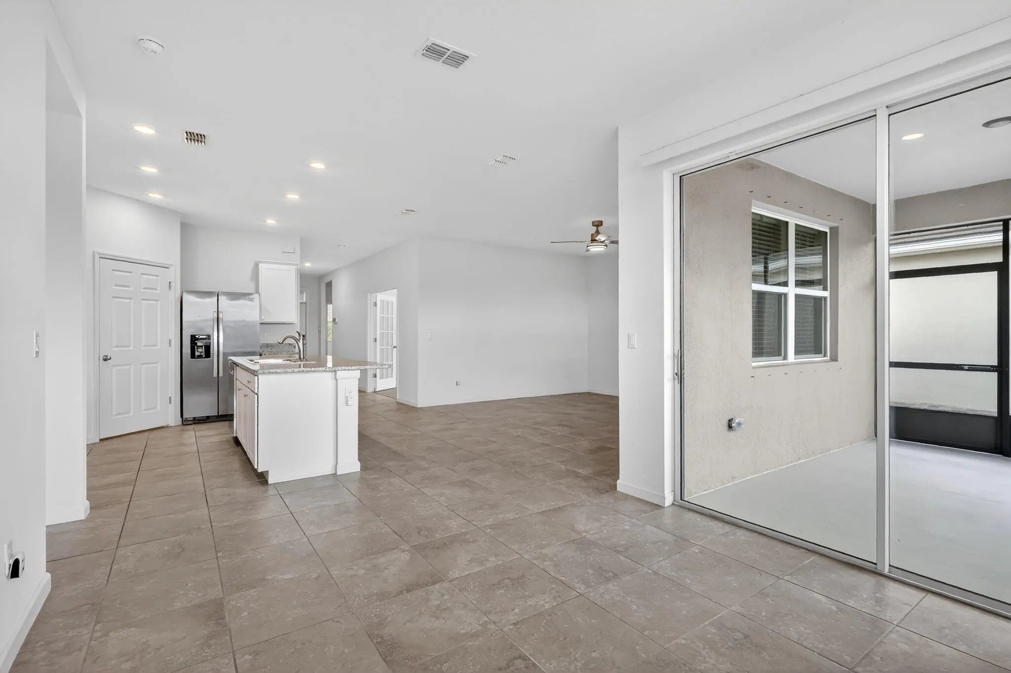 Newly build 3-bedroom, 2-bathroom home with durable concrete block construction, ensuring long-lasting quality and peace of mind. This Bristol model is a thoughtfully designed one-story floor plan with two car garage. The spacious kitchen is a standout feature, equipped with stainless-steel appliances, making cooking and entertaining a breeze. A large island with bar seating adds to the kitchen's functionality. The open concept layout seamlessly connects the kitchen to the dining and great rooms, offering views of the covered and screen lanai and allowing plenty of natural light through ample windows and sliding glass doors. The kitchen and common area features tiles throughout.The primary suite, located for privacy at the back of the home, includes an ensuite bathroom with double sinks and a large walk-in closet. Two additional guest bedrooms and a full bath are located at the front of the home. All bedrooms offer high quality scratch resistant laminate flooring.The house is equipped with the Home is Connected smart home technology package, allowing you to control various features of your home from anywhere using your smart device.The Estates at Tradition is a fully gated enclave within the master-planned Tradition neighborhood, where residents enjoy access to a clubhouse, pool, cabana & picnic areas. Tradition itself offers a small-town feel with walking trails, green spaces and parks. HOA fees include, Community Pool, Individual Lawn Care, Cable & Internet.