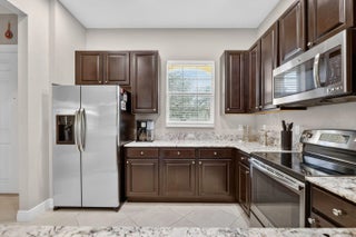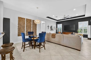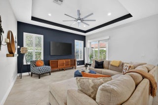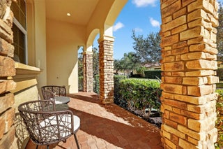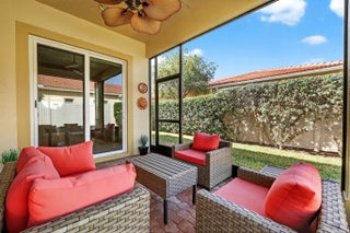 Welcome to 10160 SW Azzo Lane, a beautifully maintained end-unit villa located in the highly sought-after PGA Verano community in Port Saint Lucie. Built in 2013, this 2-bedroom, 2-bath residence offers 1,412 sq ft of thoughtfully designed living space with a desirable split-bedroom layout. The open-concept floor plan features a spacious great room with a coffered ceiling and freshly painted interior. The kitchen is appointed with granite countertops, espresso-tone cabinetry, stainless steel appliances, and ample storage. Tile flooring laid on the diagonal enhances the main living areas, while the private bedroom layout provides comfort and privacy. Additional highlights include a garage bump-out, ideal for a golf cart or extra storage, a covered front patio, and a screened rear patio surrounded by lush landscaping perfect for relaxing or entertaining. Residents enjoy guard-gated security and access to resort-style amenities, including Club Talavera, a 40,000-sq-ft clubhouse with fitness center, indoor and outdoor pools, spa, tennis, pickleball, bocce, and an active social calendar. An exceptional opportunity for full-time living or a seasonal retreat in one of Port Saint Lucie's premier communities.