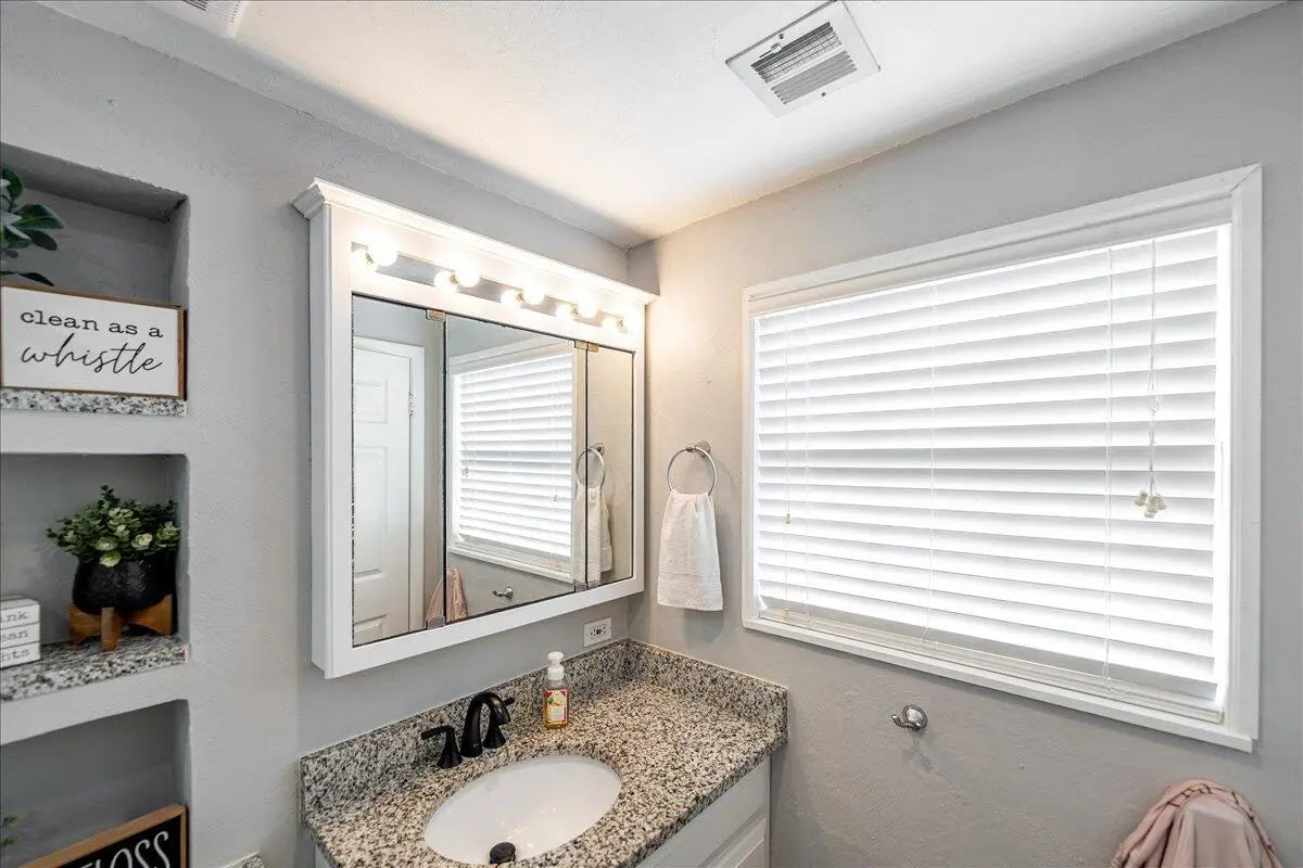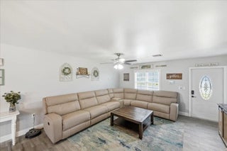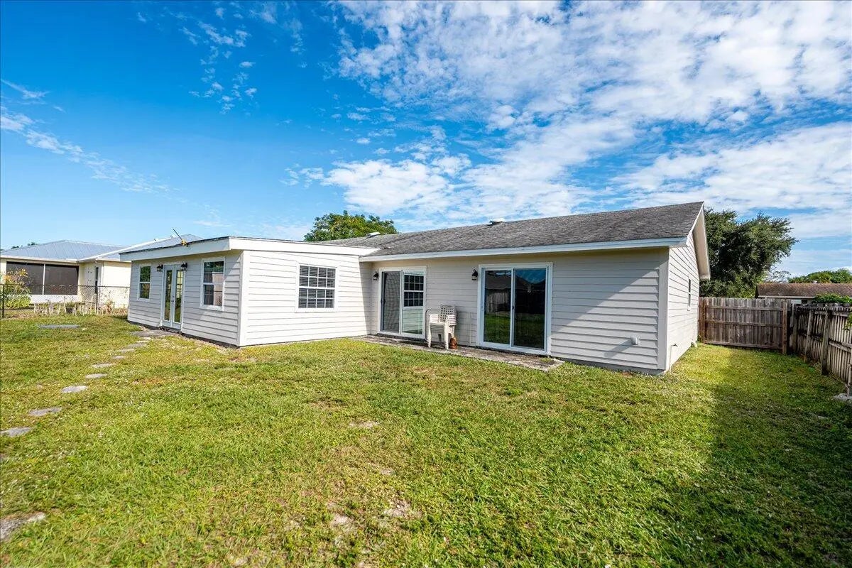 Check out this 3 BED, 2 BATH home with a huge den in Port St. Lucie! Spacious granite kitchen with buffet counter, tile backsplash, deep stainless steel sink, large pantry, brand-new refrigerator and microwave. Wood-look tile and knockdown ceilings throughout. Key West-style den under A/C with a beautiful open-beam ceiling. Fully fenced backyard with gated access. New impact sliders! A/C 2021, water heater 2022. Brand new Hardie siding, soffits, fascia, and trim. New exterior lighting and paint. City water and sewer, with hookup fees paid off. Spacious master bedroom. Master bath with granite vanities, shelving, and rain shower. Plenty of storage and closet space. FPL fiber. Offering 1,902 sq ft of living space (tax rolls incorrect). Schedule your private tour today!