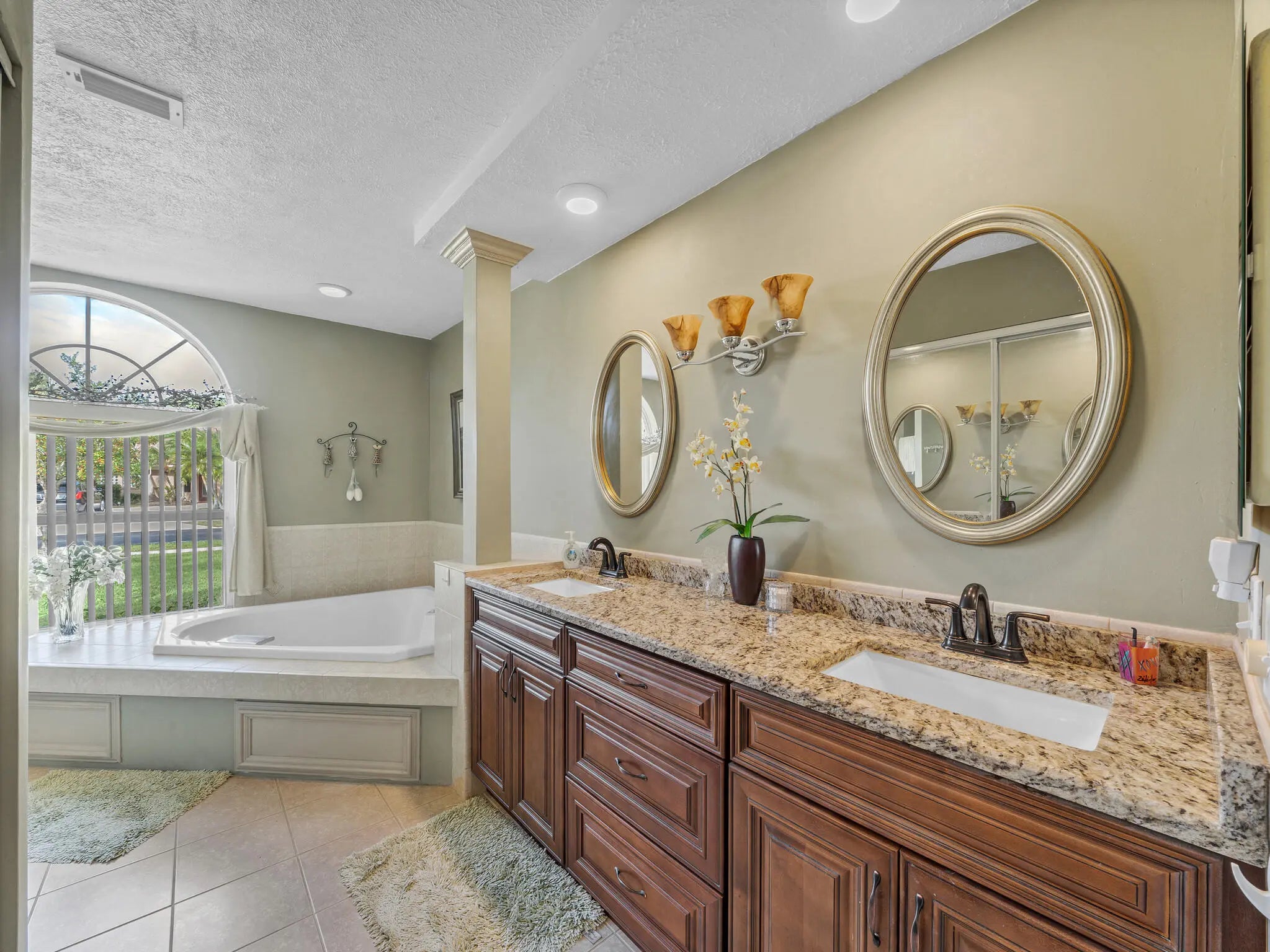 Cathedral Ceiling(s), High Ceilings, Pantry, Vaulted Ceiling(s), Walk-In Closet(s), Bedroom Layout - Split, Custom Mirrors, Pull Down Stairs, Roman Tub