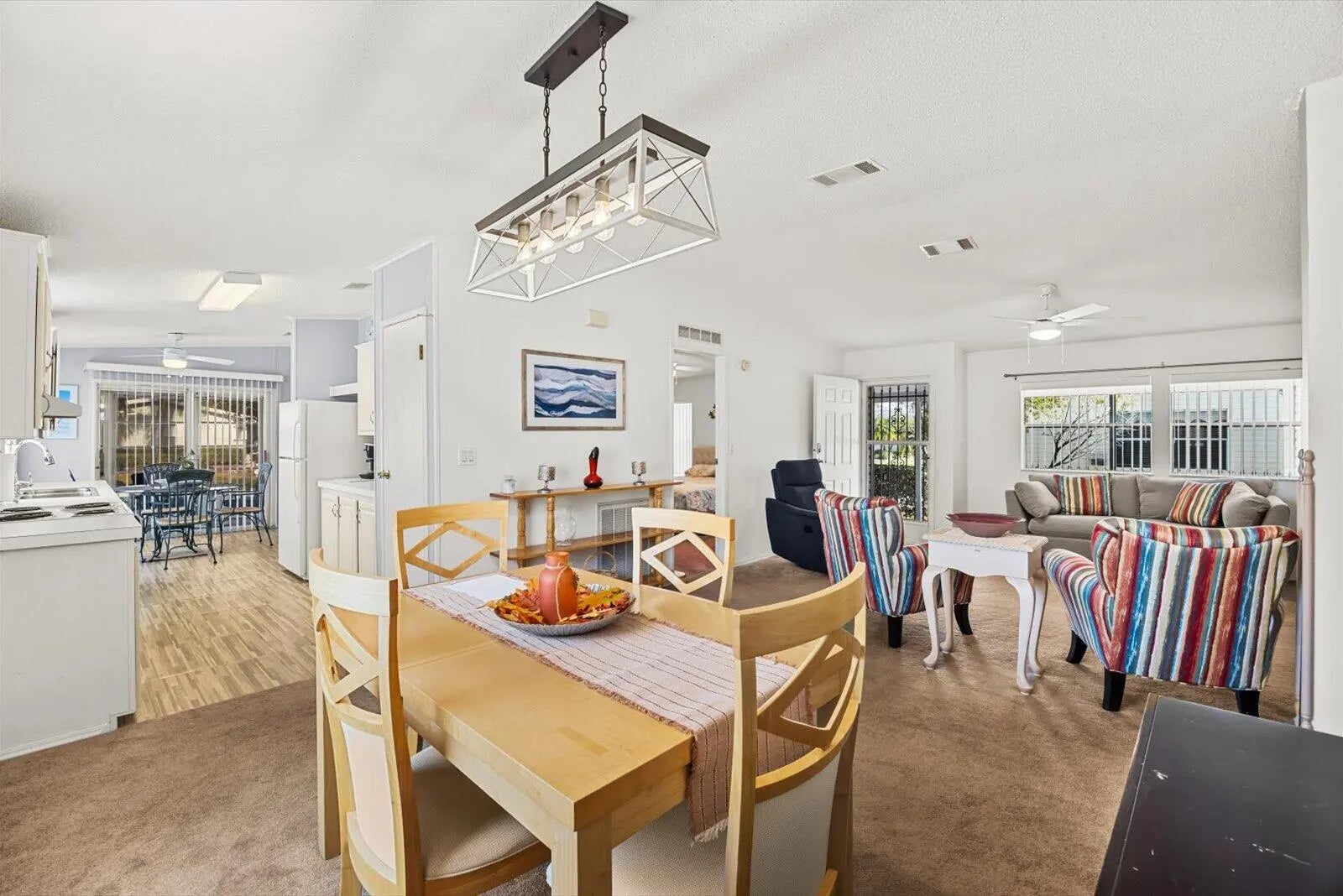 Welcome to your happy place in the fun-filled Savanna Club 55+ community! Tucked away on a quiet cul-de-sac, this partially furnished 3 BR, 2BA home offers the perfect blend of comfort and carefree Florida living. Enjoy a split floor plan with eat-in kitchen, formal DR, enclosed lanai, 2019 roof and 2017 A/C. You're just a minute's walk to the action—2 clubhouses, restaurant, 3 sparkling pools, 3 fitness centers, and endless activities are practically at your doorstep. Whether you're looking for a full-time retreat or a sunny seasonal escape, this home delivers sunshine, convenience, and the vibrant lifestyle Savanna Club is famous for. Come for the weather—stay for the fun! All measurements approximate, buyer to verify. Land Lease