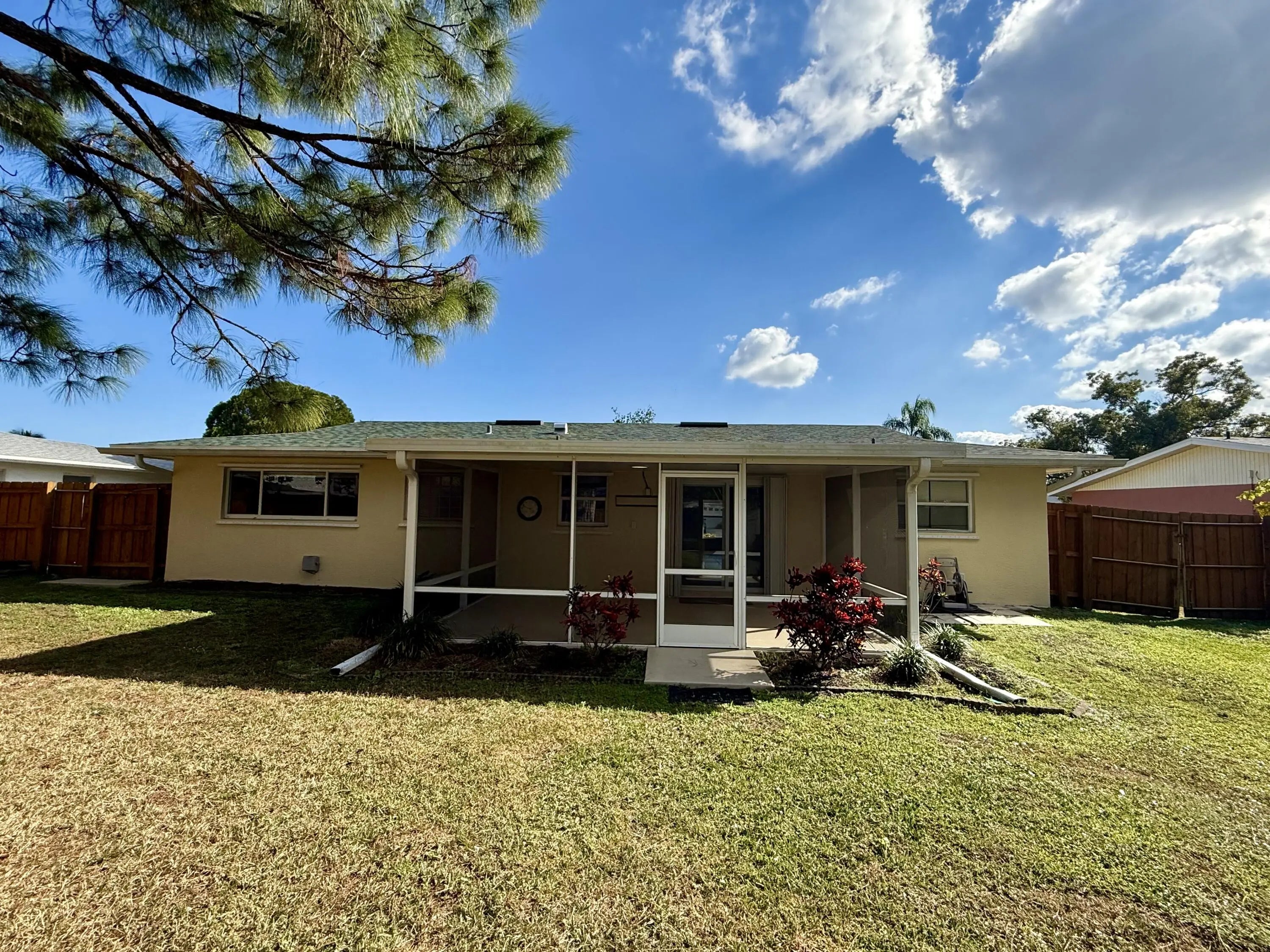Welcome to this CBS 3-bedroom, 2-bath home with a versatile extra room ideal for a home office, playroom, or additional living area. NO home owners association. Located in the quiet and desirable River Park neighborhood. The home includes a washer and dryer and all kitchen appliances, making move-in simple and convenient. The kitchen offers a pantry for extra storage and is finished with elegant quartz countertops. Enjoy durable all-tile flooring throughout and year-round comfort with a newer A/C system & roof installed in 2022. Hurricane shutters provide added peace of mind. Step outside to a screened-in back porch overlooking a fully fenced yard with a double-wide gate, perfect for boat or trailer access in the back yard. A storage shed adds even more storage space .Call today