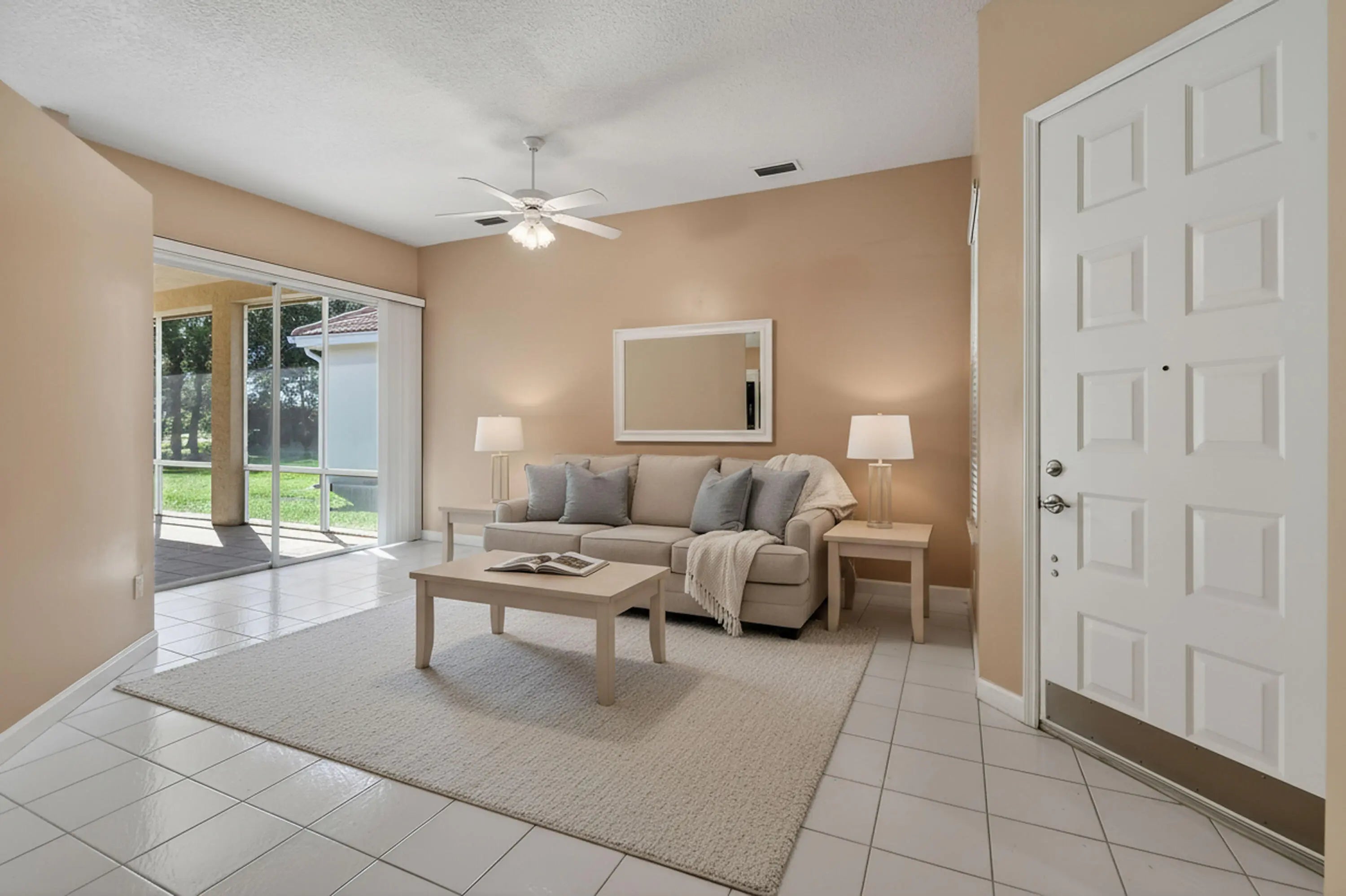 One level single family 3/2/2 CBS home in the much sought after Lake Charles manned gated community. The floor plan offers several decorating options, with kitchen open to great room + dining. Enjoy peaceful views from the screened lanai. *All new AC ductwork & vents ($11K upgrade), no carpet.* Amenities include Clubhouse with pool & spa, library, media center, lighted tennis/pickleball, basketball, shuffleboard & bocce courts, playground, preserves and connecting lakes for canoes or paddle boats. Association fees also include landscape care, basic cable and internet. Conveniently located off I-95 and just minutes from the NY Mets Spring Training facility, shopping, dining, golf and more. Low HOA fees Dont miss out on this opportunity. Move-in ready. Available for Lease @ $2500/month.