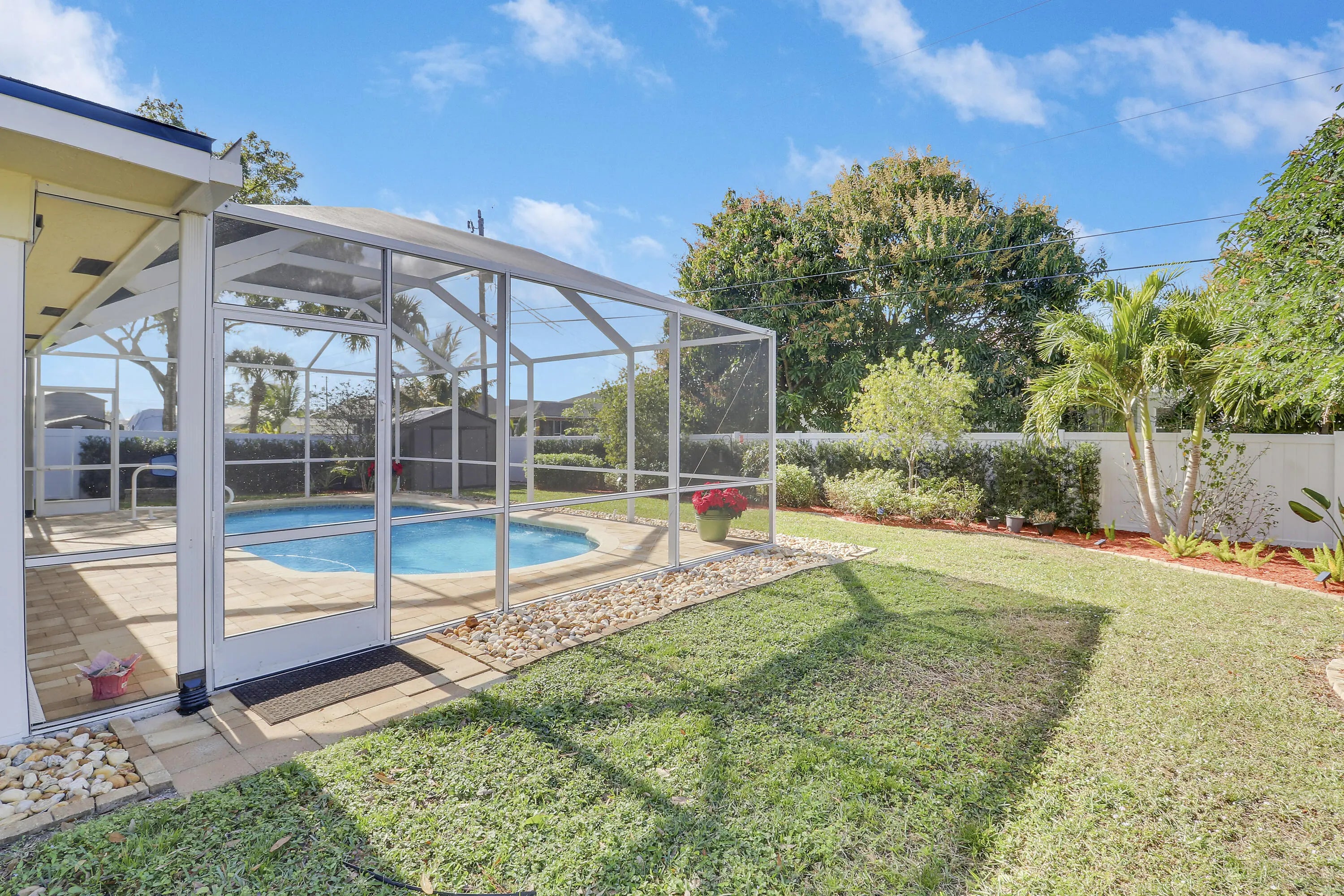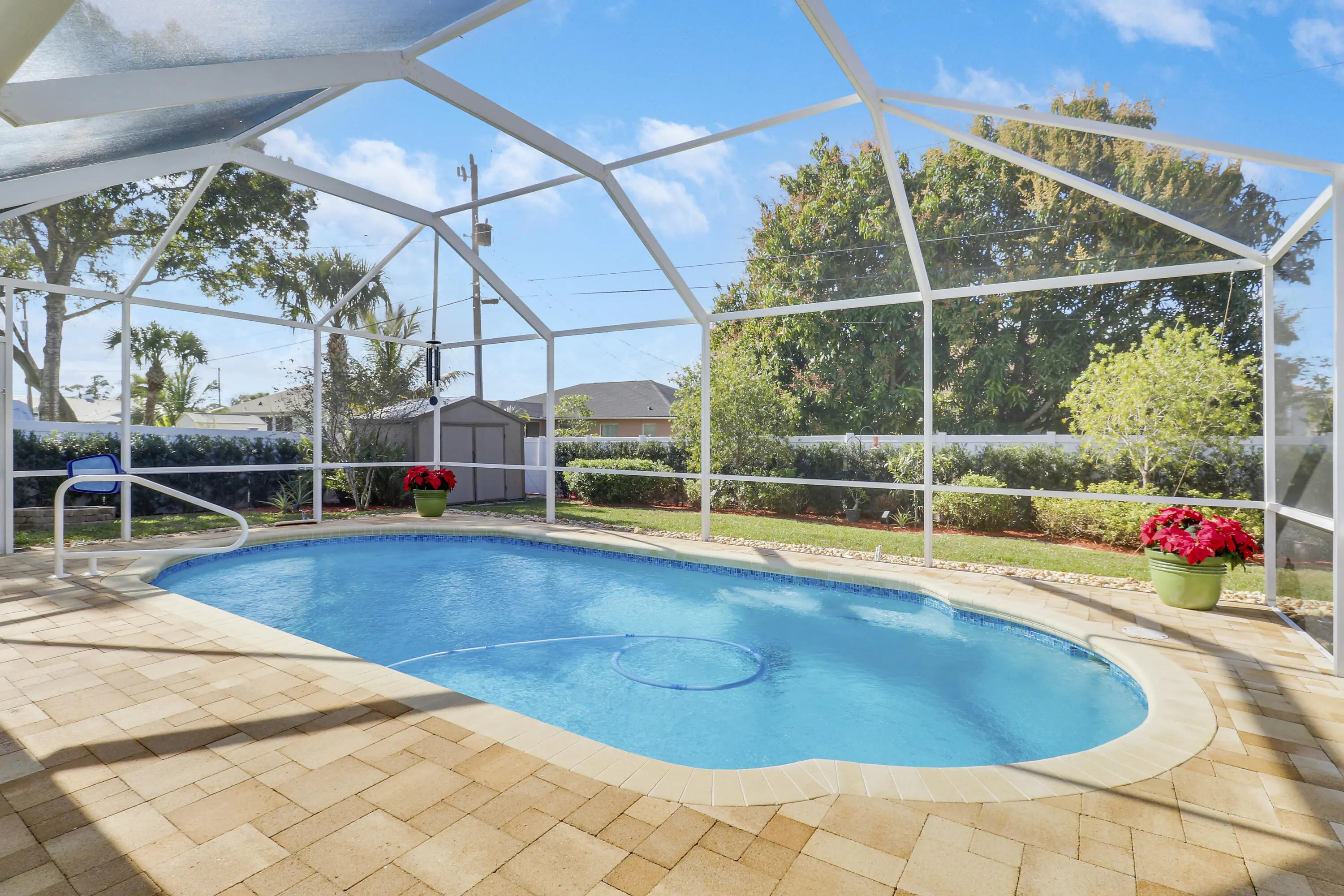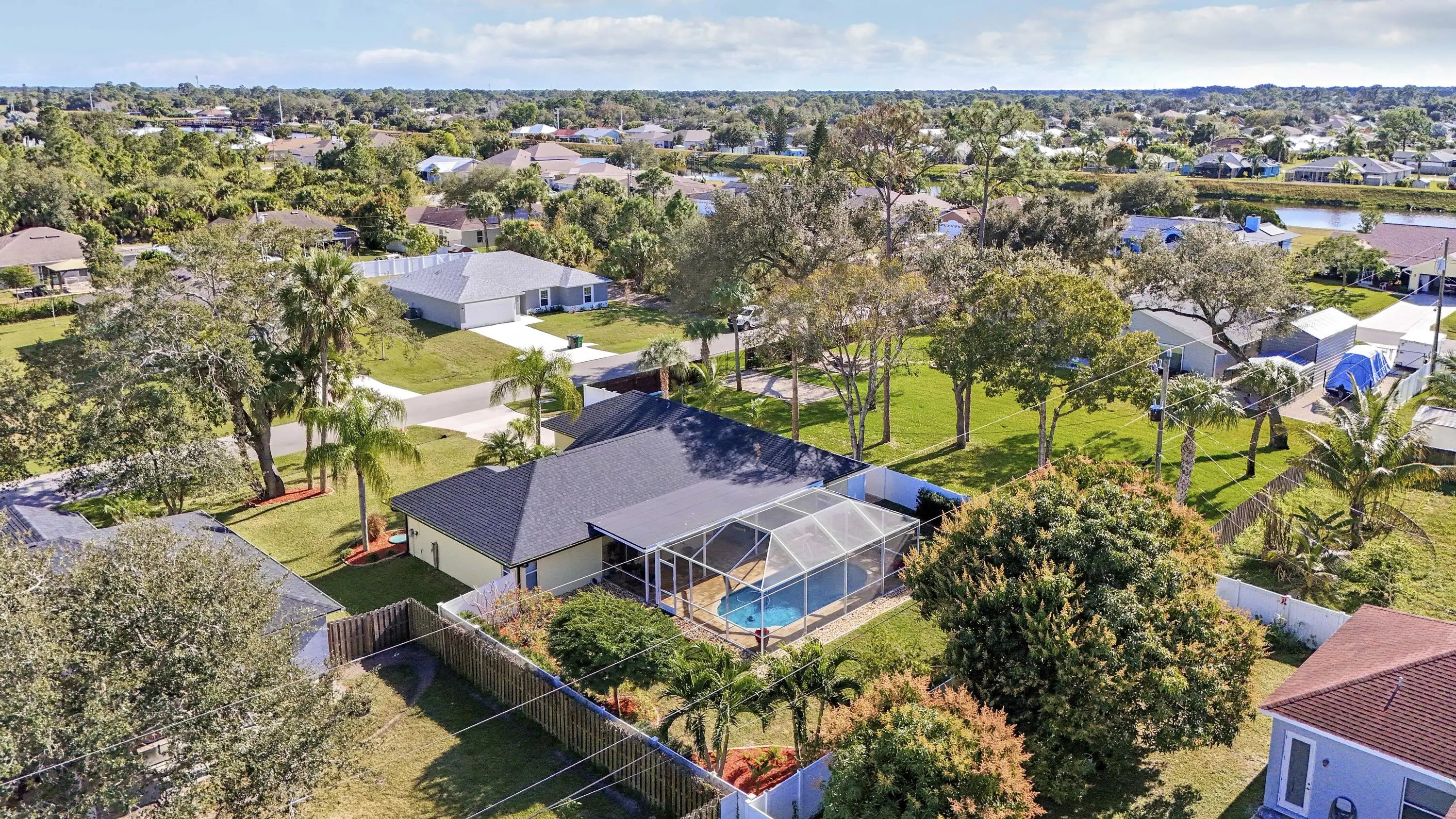 Must see to Believe!! Upgraded 3/2/2 with screened in pool, 2025 roof and gutters, freshly painted, mature landscaping, vinyl fence around rear and side yards, 10x10 shed. Interior with vaulted ceilings, central vac, custom master closet, updated bathrooms, oak hard woods in bedrooms, porcelain tile throughout main areas and baths, 6'' baseboards. Granite countertops, LG and Bosch appliances, tankless water heater and much more. Close to dining, shopping, Tradition and I95, Don't wait, call today for an appointment.