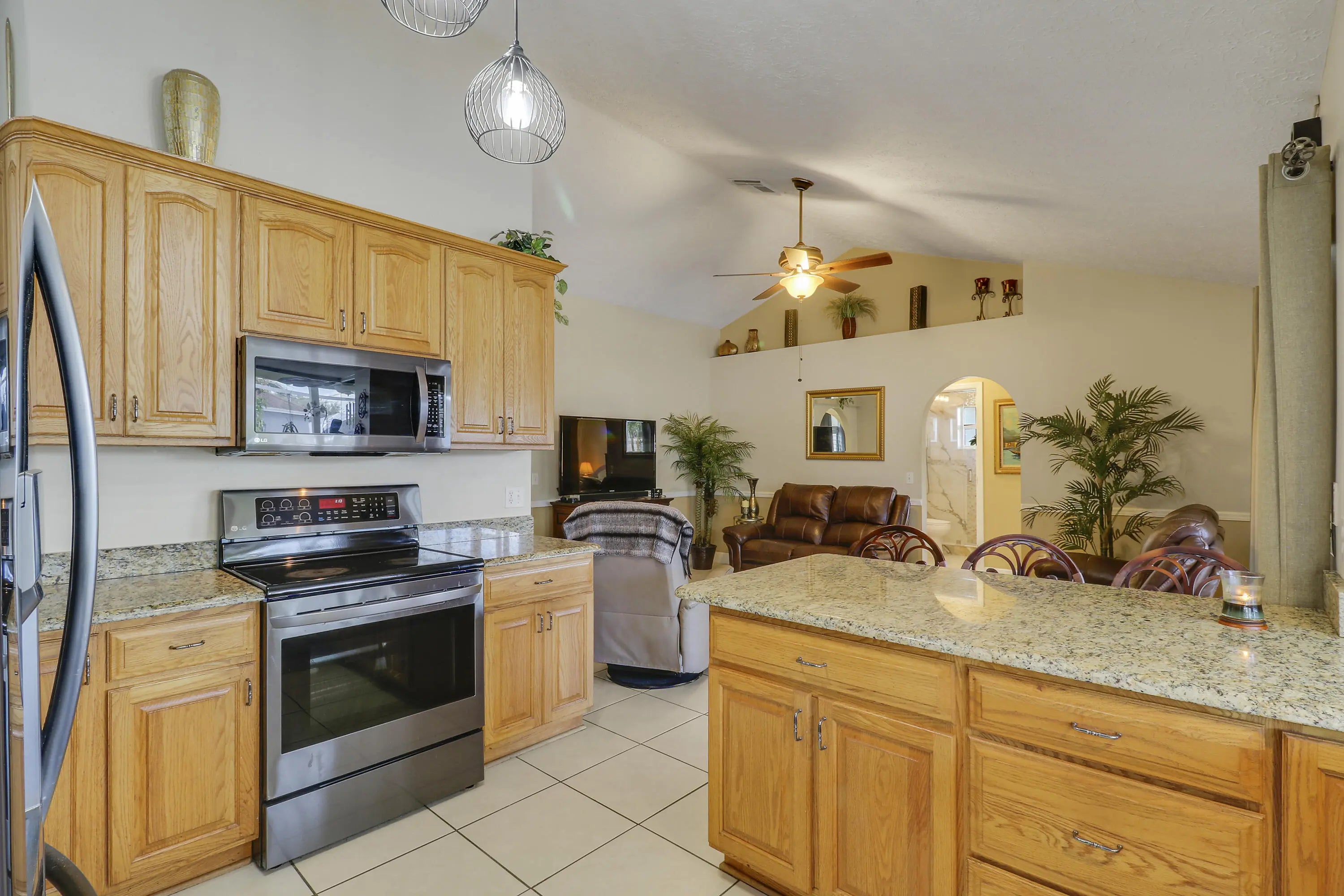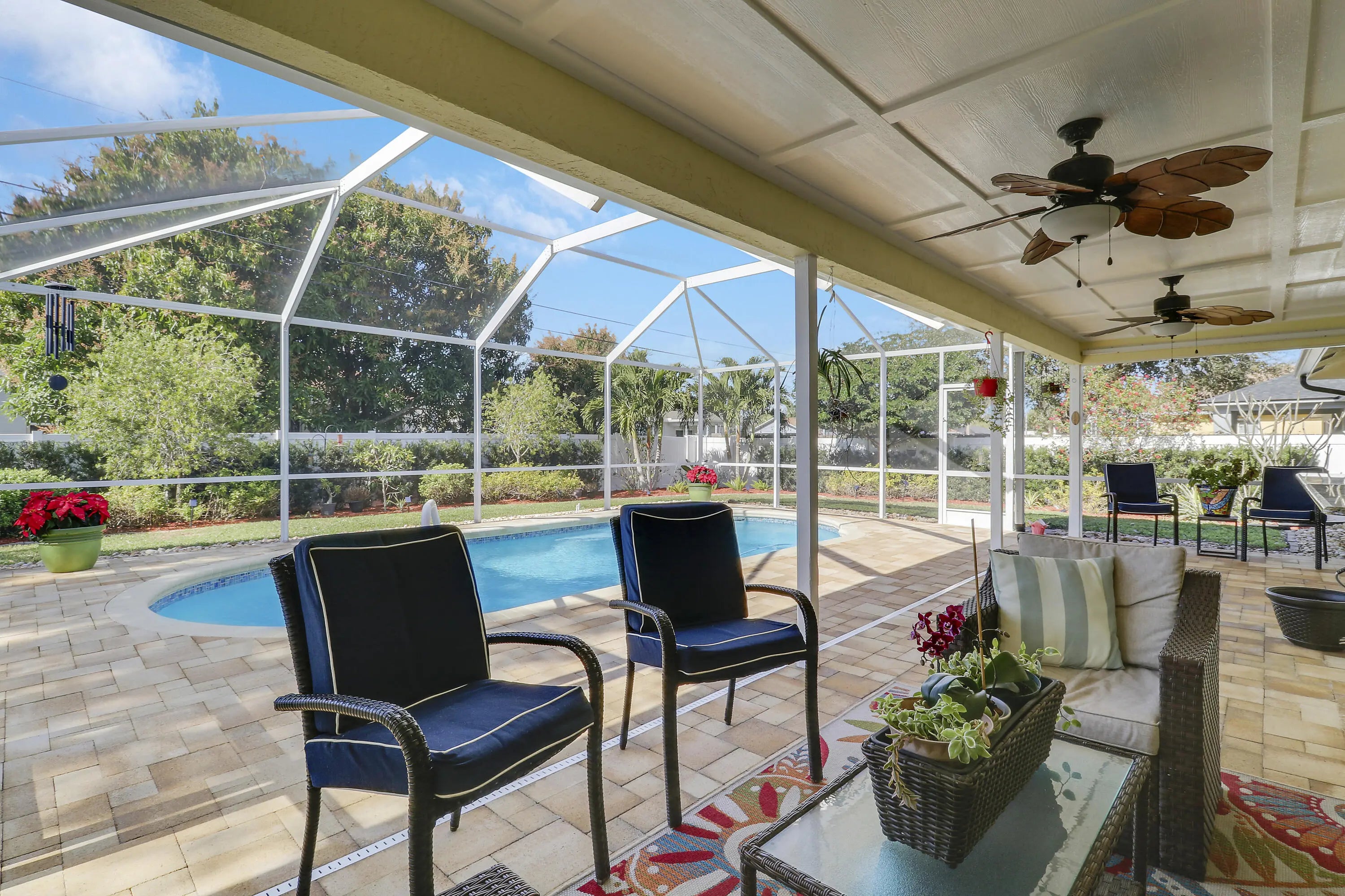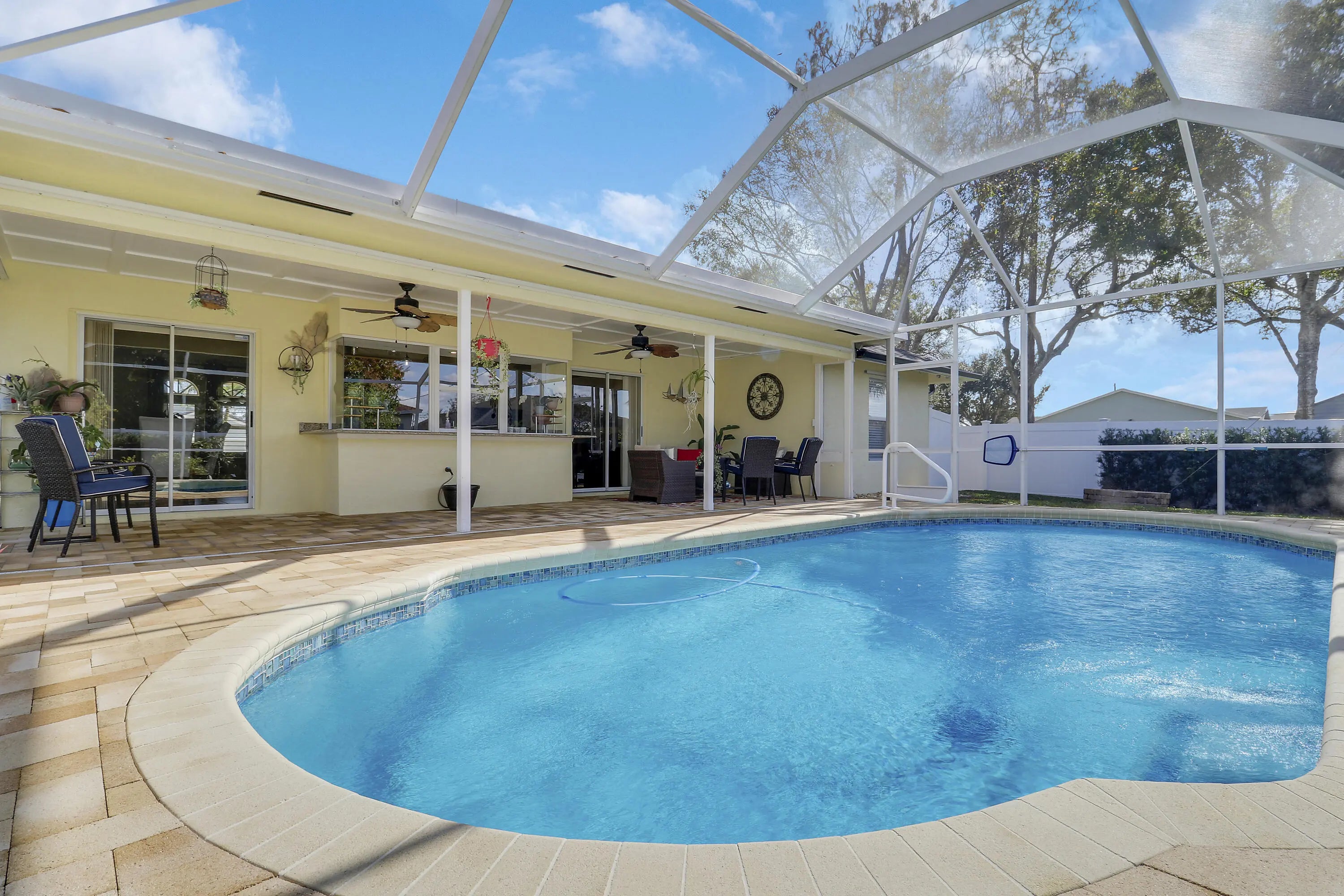 Must see to Believe!! Upgraded 3/2/2 with screened in pool, 2025 roof and gutters, freshly painted, mature landscaping, vinyl fence around rear and side yards, 10x10 shed. Interior with vaulted ceilings, central vac, custom master closet, updated bathrooms, oak hard woods in bedrooms, porcelain tile throughout main areas and baths, 6'' baseboards. Granite countertops, LG and Bosch appliances, tankless water heater and much more. Close to dining, shopping, Tradition and I95, Don't wait, call today for an appointment.