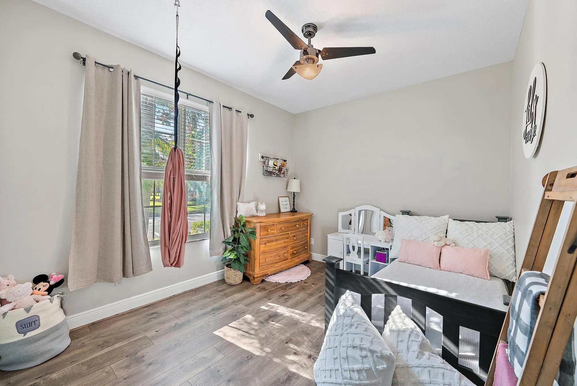 Leased until May 31, 2026. This 3-bedroom home, with flexible den or fourth bedroom, along with 2 full bathrooms comes complete with a plethora of upgrades: Solar powered saltwater pool with water fountains, a sun shelf, and solar heated. Newly installed turf for a maintenance-free lawn and perfect for pets. A covered patio with a custom-built gas fire pit and stone seating. This expansive backyard has space for a potential summer kitchen, cabana bathroom, or tiki bar complete with a gas hookup. Features include complete impact windows, luxury vinyl plank (LVP) flooring with 5'' baseboards, Stainless appliances, with gas cooktop, wall ovens, alkaline water filtration system, and LG Thinq front-loading washer and dryer with utility sink. The primary suite offers a cozy nook perfect for an office, nursery, or reading area. The ensuite features dual sinks, his-and-hers walk-in closets with organizers, and a large tiled walk-in shower. The three car garage features a built out attic for ample storage and an additional 3 feet added to driveway pavers on each side for larger vehicles, trucks and toys. This home and community has precedence with Primrose private school that is a short walk or golf cart ride around the corner. Located just a short walk to Tradition Square, you'll enjoy a vibrant lifestyle with excellent dining, shopping, and recreation options. With easy access to I-95 and the Cleveland Clinic, this home offers unmatched convenience. The HOA fee at Bedford Park includes community pool, landscaping, pest control, lawn maintenance, cable, high-speed internet. Tradition's cheerful Town Center reimagines small town living with fresh, modern amenities and experiences without sacrificing nostalgic charm and close-knit community - where residents can start a new life chapter filled with opportunities to learn, grow, and create new memories. This area creates a natural community hub for residents to meet and socialize, where events like a weekly farmers market invite one and all to gather. An adjacent amphitheater brings an entertainment venue to Tradition for year-round community enjoyment of performances such as concerts, theater, dance, comedy, and more.
