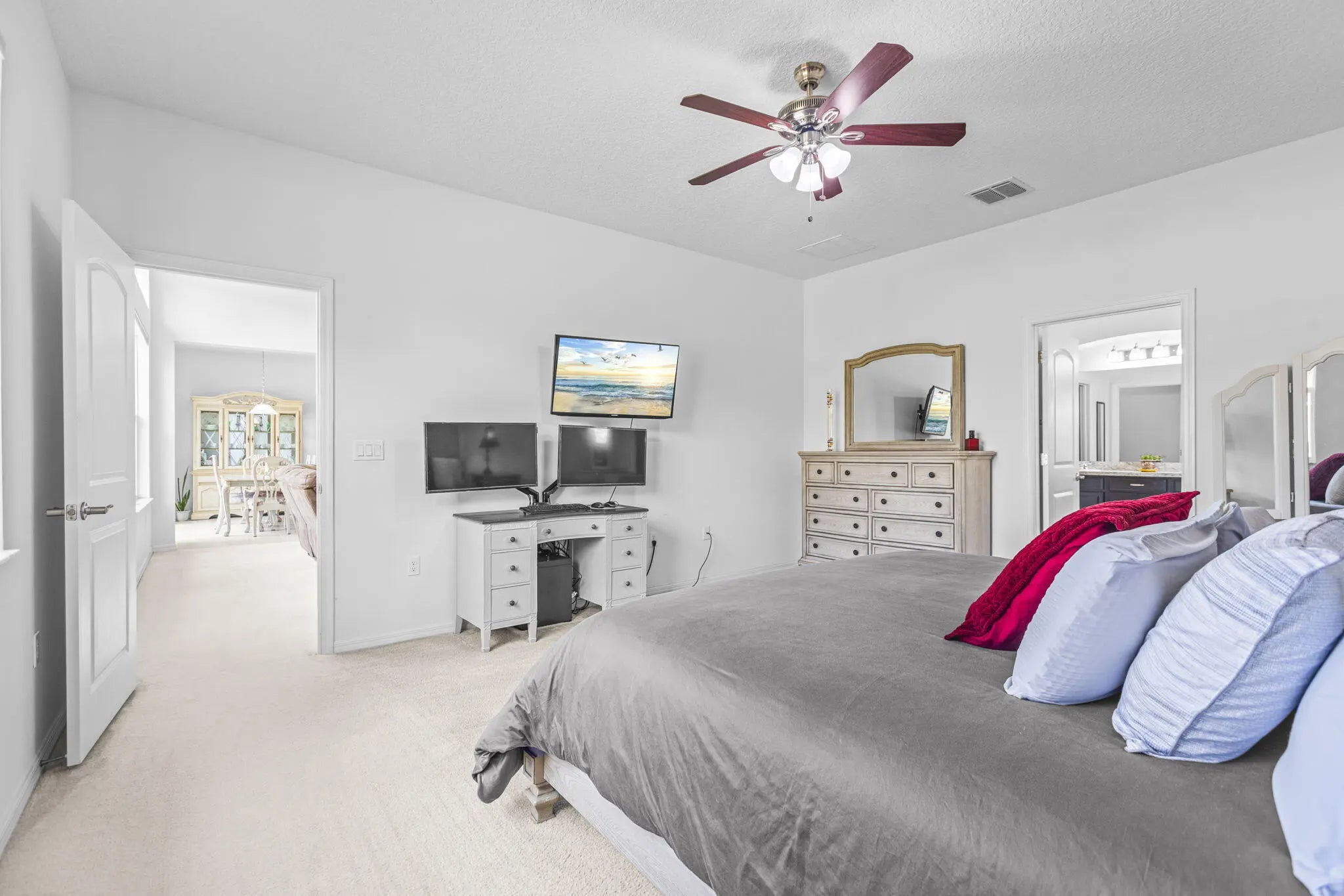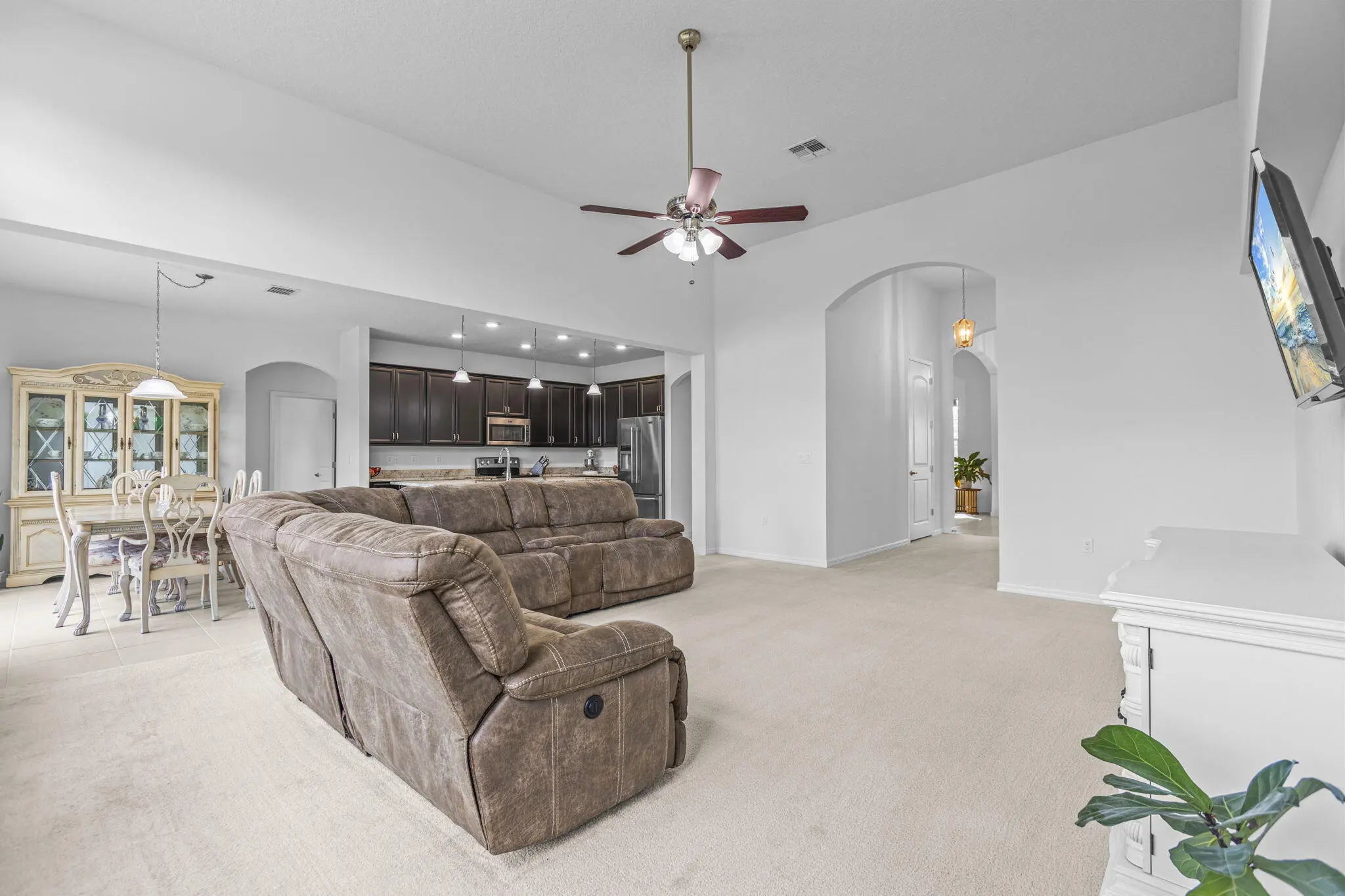 Spacious, bright, and designed for today's family living. This newer-build home offers 9-12 ft ceilings, abundant natural light, and a desirable split floorplan. Featuring 4 bedrooms, 3 baths, plus a flex room with a closet—perfect for a home office, playroom, or 5th bedroom. A private wing includes a bedroom and full bath, offering ideal separation for guests or multigenerational living. Enjoy a large kitchen with granite, SS appliances, and an island giving an open concept layout. This home has freshly painted interiors, an oversized 2 car garage (4ft more), wider driveway fits many cars & toys (RV Boat), and a generous backyard. Solar panels keep the power bill around $45/month. Close to shopping and dining options in St. Lucie West. Short drive to Fort Pierce beach. Ideal location!