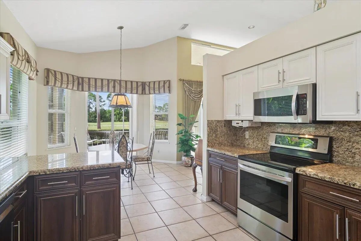 NEW TILE ROOF 2025! Golfer's Paradise in PGA Village - Stunning Views of the Legacy Golf Club! Welcome to your dream home in the heart of PGA Village, where every day feels like a vacation! Perfectly positioned with breathtaking views of the Legacy Golf Club, this beautifully maintained 3-bedroom, 2-bath home is truly a golfer's delight. Spacious 2-car garage PLUS golf cart parking - ideal for life on the greens, Original owners - pride of ownership shines throughout. Great room concept - open, airy layout, perfect for entertaining Updated kitchen (approx. 3 years ago) - sleek 2-tone cabinetry, granite countertops, and a snack bar seating area for casual dining or morning coffee. A/C replaced in 2024, washer & dryer approx. 6 years old. Inc. in the HOA is lawn, cable, internet as well as access to the ISLAND CLUB, which houses an outdoor resort style pool, ball room, fitness center, art room, library and many clubs and activities including brand new pickleball courts, tennis & basketball.