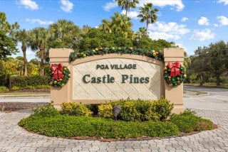 Move-in ready luxury 3BR/2.5BA townhome offering a low-maintenance lifestyle in the gated Castle Pines community of PGA Village, one of Florida's most prestigious golf destinations. Ideally located steps from the community pool, this beautifully updated home features fresh interior paint, new ceiling fans, upgraded flooring, and brand-new kitchen appliances. Carpeted bedrooms provide comfort, while tile and laminate enhance the main living areas. All bedrooms offer tranquil pond views, highlighted by a screened ground-level patio and a balcony off the primary bedroom and upstairs living areaâ''perfect for enjoying evening sunsets over the water. HOA fee includes cable, extremely high-speed internet, ground maintenance, landscaping, and common areas, helping provide meaningful annual cost