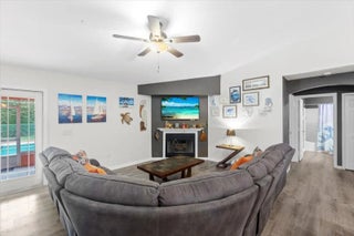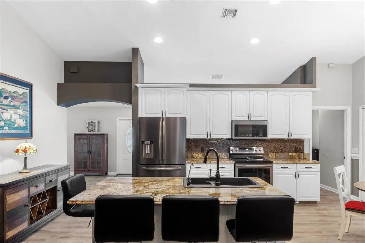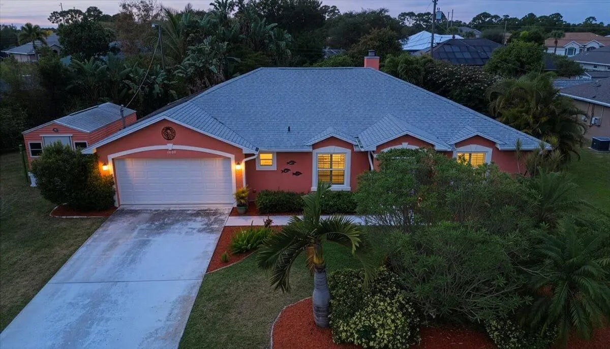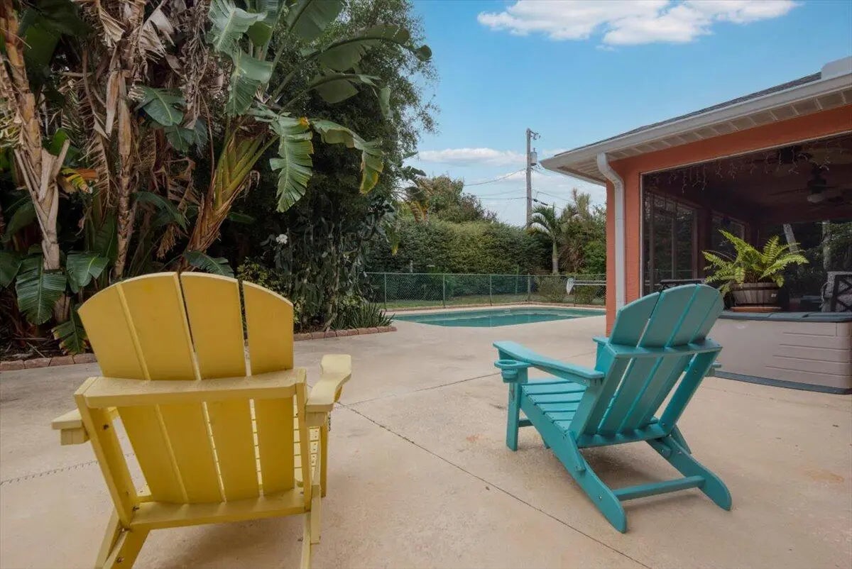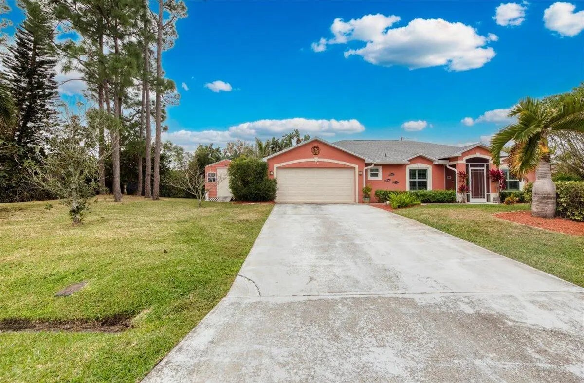 SELLER MOTIVATED- Seller is offering a $5,000 concession to buyer towards buyers closing costs, prepaids and rate buy down Beautiful three bedrooms, two baths CBS split floor plan POOL home in desirable Oak Hammock. Quiet neighborhood situated on .34 acres with mature, lush landscaping. Private fenced-in backyard. Spacious screened-in lanai with elegant French doors installed in 2019. New roof July, 2024! Large shed for storing tools or can be renovated into a mancave or she shed with minimal effort. Concrete saltwater separately fenced-in pool is lovingly maintained with brand new brickwork all around. Solar heating for the pool makes swimming a reality all year round. Comes with new robo pool cleaner. No HOA! Vinyl flooring installed 2018. Must see! White plantation shutters inthe master bathroom and bedroom and front rooms. Samsung appliancesBronze refrigerator, oven, dishwasher, microwave. Black large-capacity washer and dryer were bought in 2023. Master bedroom is larger than usual with a generous-sized bathroom and linen closet. Walk-in closet in the master. Other two bedrooms with ample closetspace are across the house with a bathroom and linen closet in betweencould be a separate suite! Each bedroom is a good size. Huge family roomeasily fits a large sectionalwith a fireplace and mantel to place your family treasures. Perfect space against the wall for a dining room table or even a grand piano!Kitchen has white cabinets and granite counters. Large island to have intimate breakfasts under a vaulted ceiling. Plenty of room for a small table and four chairs too. Large pantry and lots of cabinet space.Dining room and living room in the front of the house are very versatile; can be used as an office, gaming room, or even for guests. Two-car garage has rubberized flooring and air conditioning. Driveway easily fits four cars/vehicles. Private septic system has been serviced yearly, pumped and cleaned regularly as well as consistent enzyme additives used. Must see to truly appreciate ; beautiful home to live in!